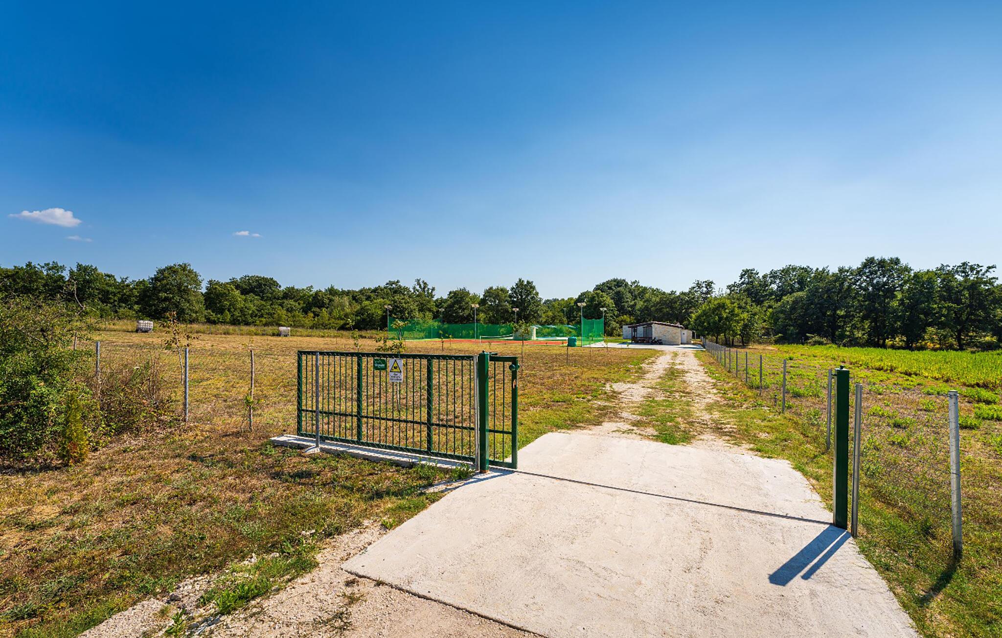 Nyd fred og privatliv i et moderne feriekompleks med tennisbane og pool.