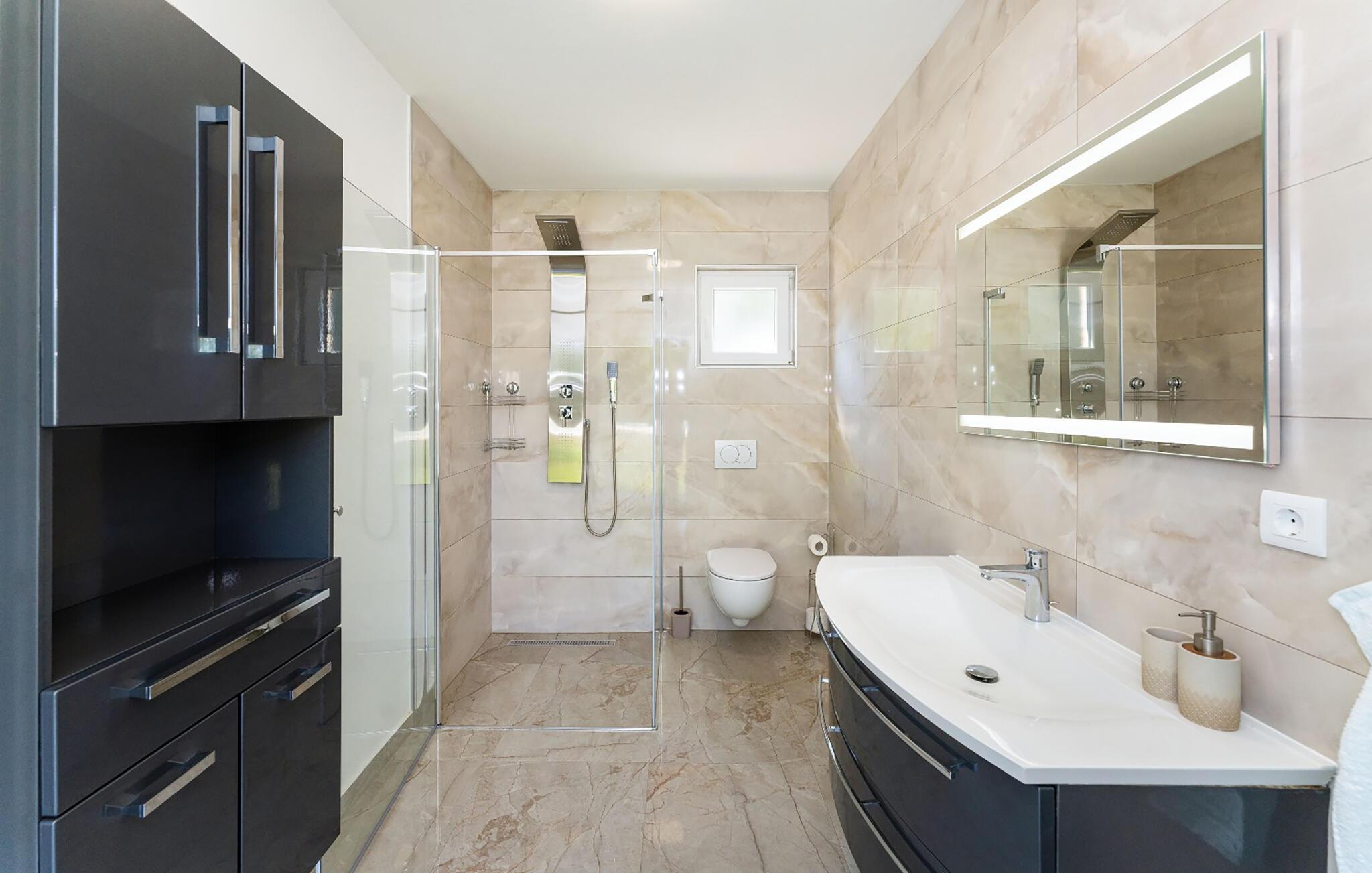 Dette individuelle feriehus i Posedarje består af tre separate bygninger og tilbyder jer derfor perfekt overnatning til familier eller par, der rejser sammen, men som også sætter pris på retreater. Det attraktivt møblerede interiør tilbyder jer alt hvad I behøver for et afslappende ophold. Højdepunkter er den rummelige pool og den moderne oplyste tennisbane, som er ideelle til både sportsaktiviteter og afslappende timer.