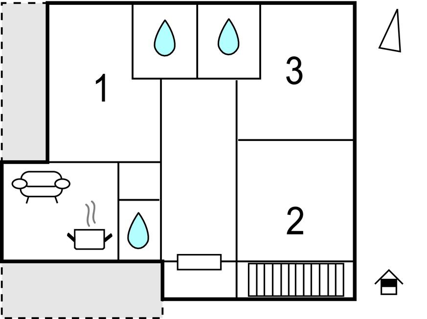 Soveværelse (nr. 1) - 1 Soveplads. (Enkeltseng(e)). 2 Sovepladser. (Dobbeltseng(e)).