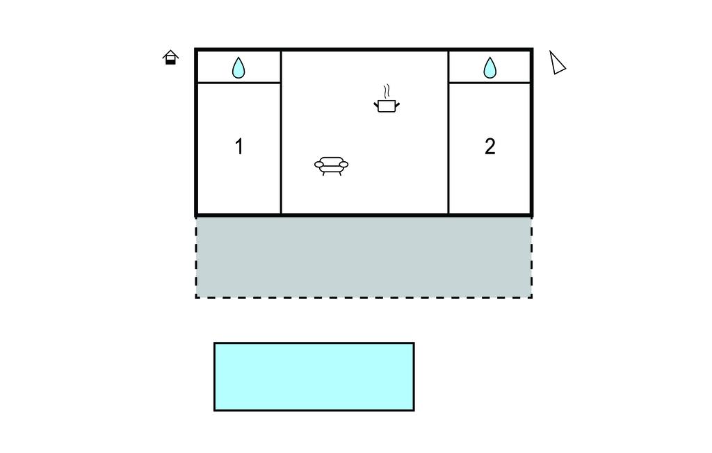 Opholdsstue/køkken 20m2 - 2 Sovepladser. (Sofa, madras eller lignende).