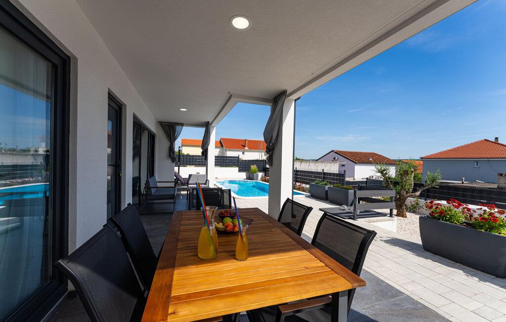 Det solrige udendørsområde er perfekt til at nyde middelhavsklimaet fuldt ud. snup en frisk dukkert i den smukke pool, lad batterierne op på de behagelige liggestole og nyd jeres tid sammen med stemningsfulde grillaftener med vin og stearinlys.