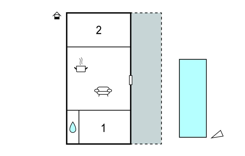 Opholdsstue/køkken 20m2 - 2 Sovepladser. (Sofa, madras eller lignende).