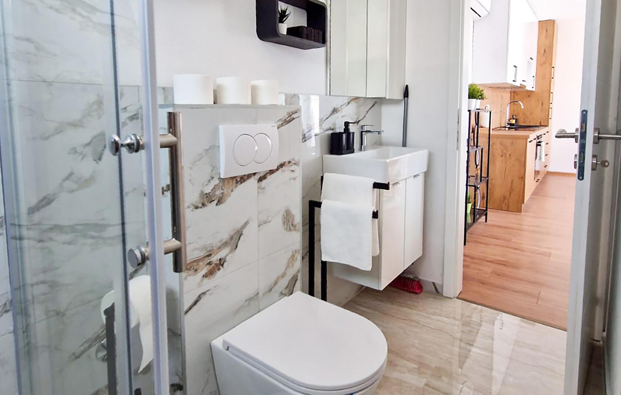 Badeværelse 3m2 (nr. 1) - WC. Varmt og koldt vand. Bruser