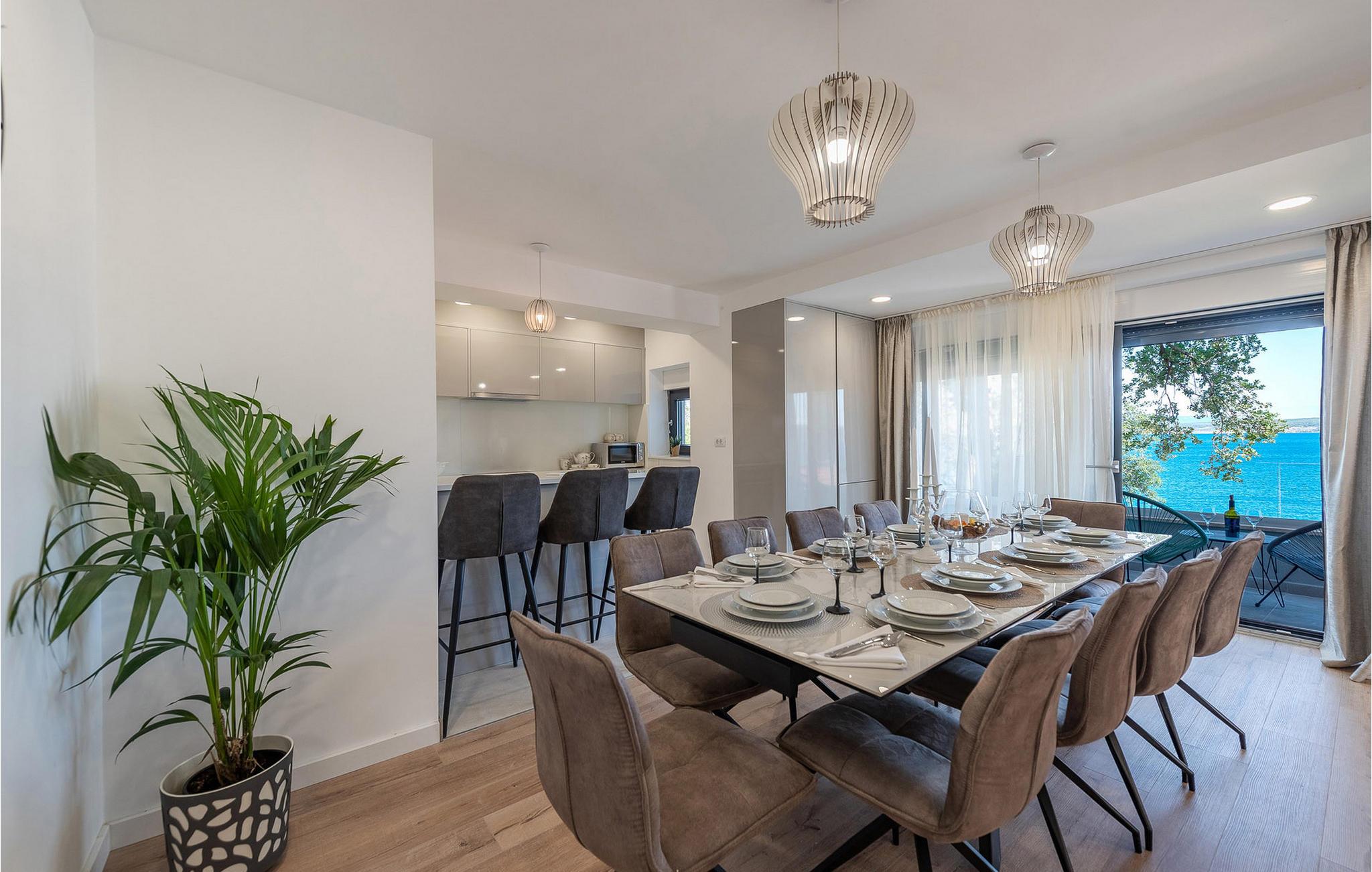 Nyd en ferie i denne stilfulde villa, beliggende i en malerisk bugt ved Posedarje med direkte udsigt over det turkisblå Adriaterhav. Den moderne Villa Ruby tilbyder den ypperste komfort og er et tilflugtssted for både afslapning og aktivitet. Den rummelige opholdsstue på første sal fører til det lyse, veludstyrede køkken - perfekt til at tilberede middelhavsretter. På balkonen kan I nyde havudsigten, mens videospil, dart og billard sørger for underholdning. Slap af i stueetagen i saunaen eller spabadet, mens sportsentusiaster kan benytte stedets fitnesscenter. For familier er der en legeplads i haven og et sommerkøkken med grill, som kan bruges uanset vejret. Mens børnene boltrer sig i haven, kan I svømme baner i infinity-poolen eller tage et par skridt ned i det krystalklare hav. Posedarje og omegn byder på mange muligheder for opdagelser. Besøg Kornati Nationalpark eller udforsk de imponerende Velebit-bjerge på en jeepsafari. Historieinteresserede vil elske Zadar, hvor I kan opleve romerske monumenter og 2.000 års historie. Uanset om I leder efter eventyr eller afslapning, er Villa Ruby det ideelle sted til jeres drømmeferie.