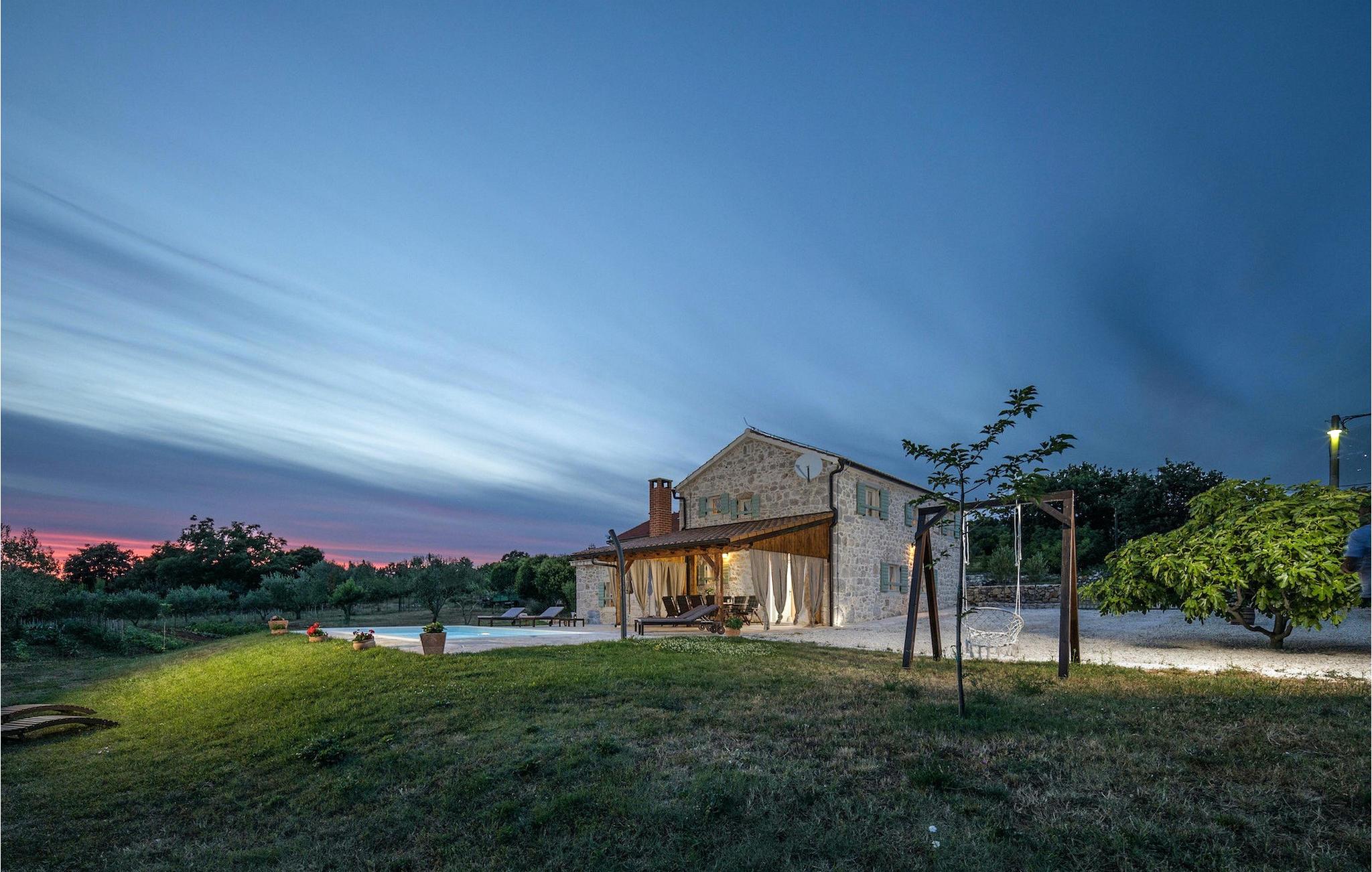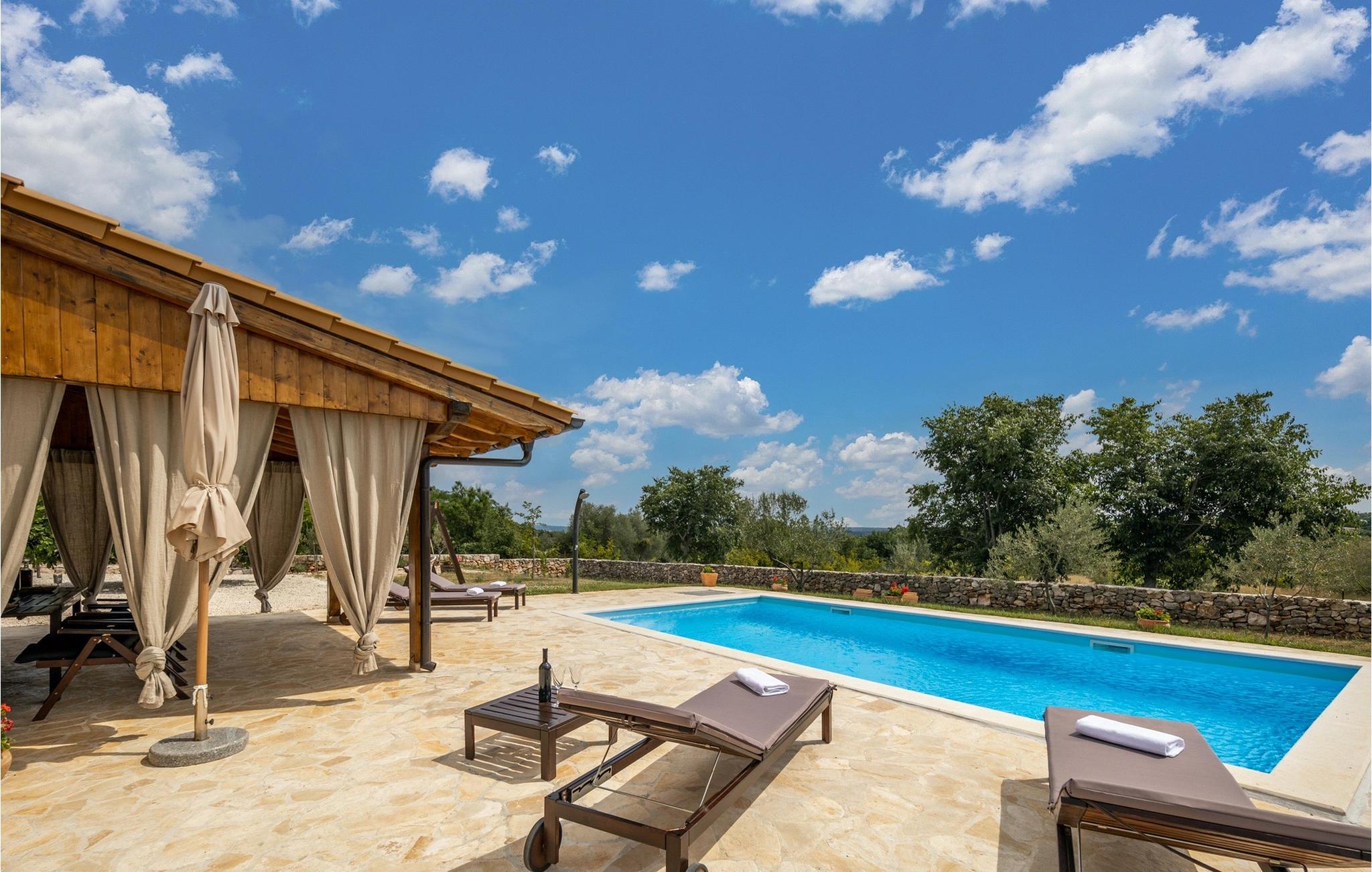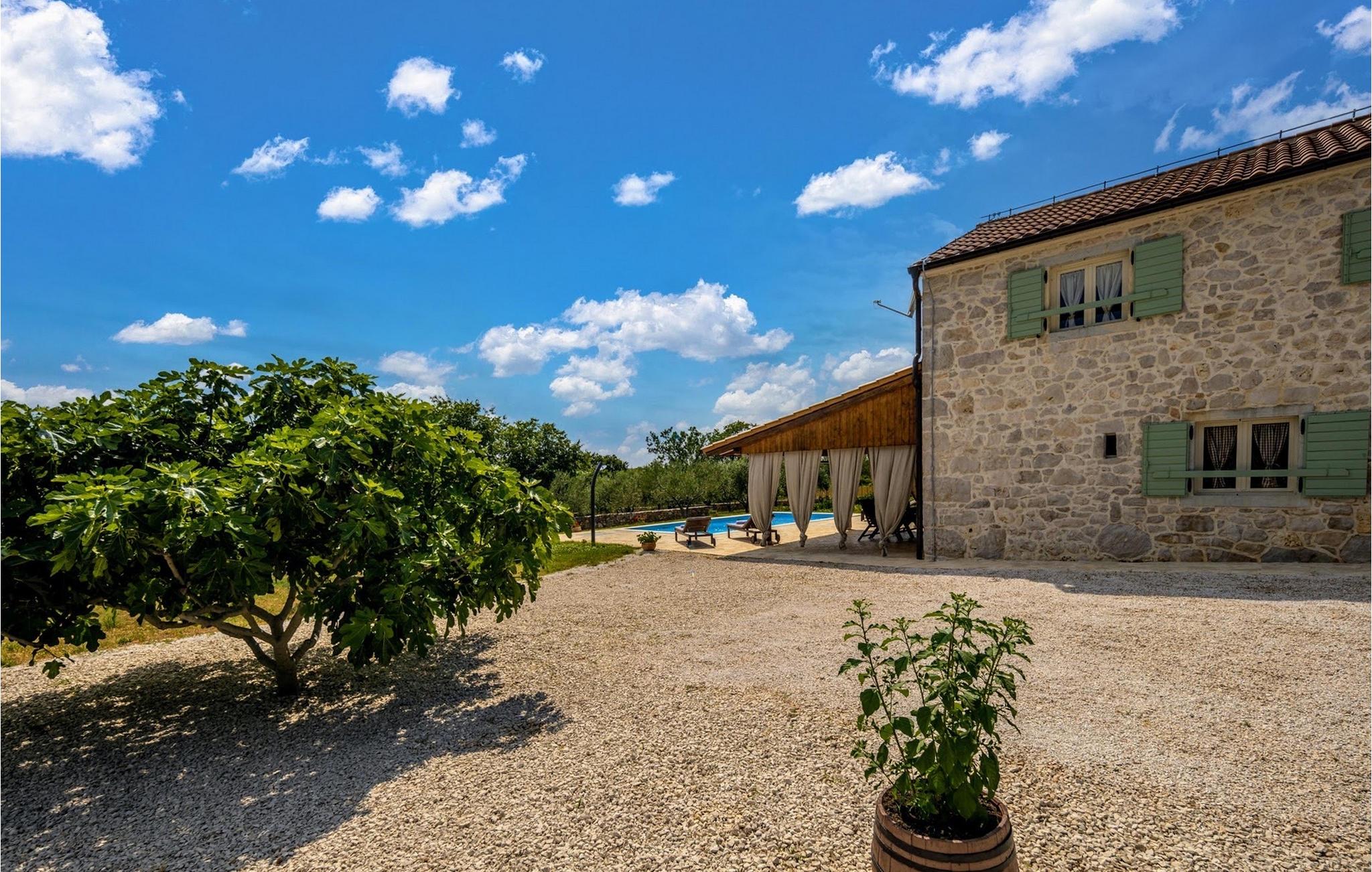 Villaen er beliggende på en 2000 m2 stor grund med privat pool og hyggelige liggestole, dejlig græsplæne med oliventræer og udendørs spiseplads, hvor du kan nyde dine måltider tilberedt på grillen. Der er også et traditionelt fællesrum (konoba) med et lille køkken, en stor pejs og spiseplads, der vil gøre din ferie komplet.Villa Jerolim ligger i et fredeligt område i Slivnica, nær Posedarje. Det er et roligt område, ikke overfyldt og ikke særlig beboet - perfekt til en afslappende ferie. Stedet er takket være den specifikke geografiske beliggenhed stille usædvanligt i forhold til de fleste steder på Adriaterhavskysten; du kan få adgang til kysten, uanset om du tager mod øst, vest eller syd. Den nærmeste bar, restaurant og butik ligger i landsbyen Slivnica. Et supermarked og andre faciliteter er i Posedarje, cirka 5 km fra villaen. Mindre end 3 km væk kan du nyde de smukke stenstrande i Slivnica. Hvis du foretrækker sand, er stedet at tage hen til strandene i Posedarje, 5 km fra villaen væk. Du bør benytte lejligheden og udforske villaens bredere omgivelser. Gå heller ikke glip af at besøge den lille historiske by Nin eller "hovedstaden" i regionen, Zadar.