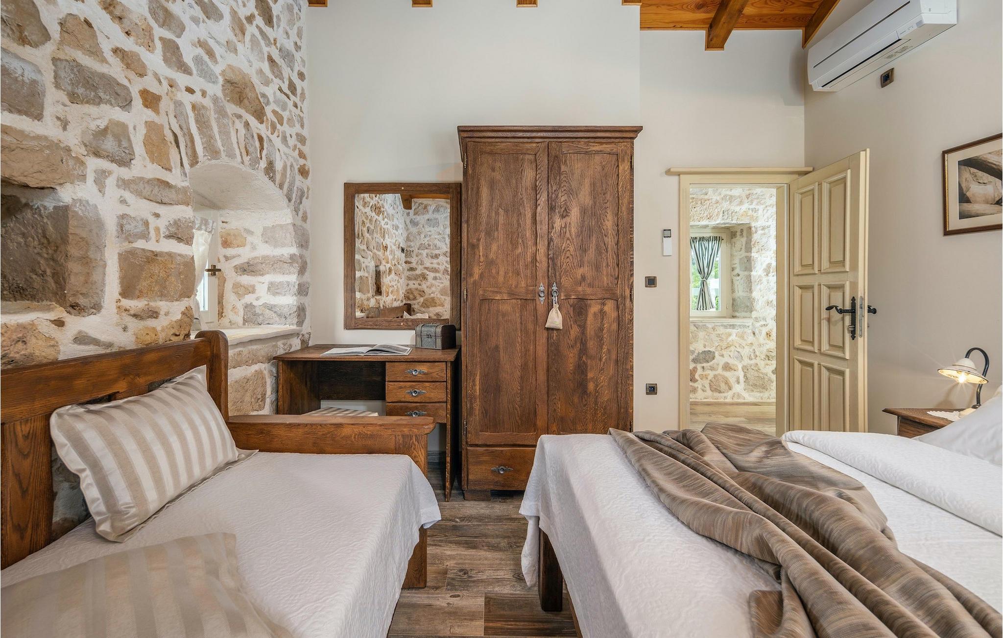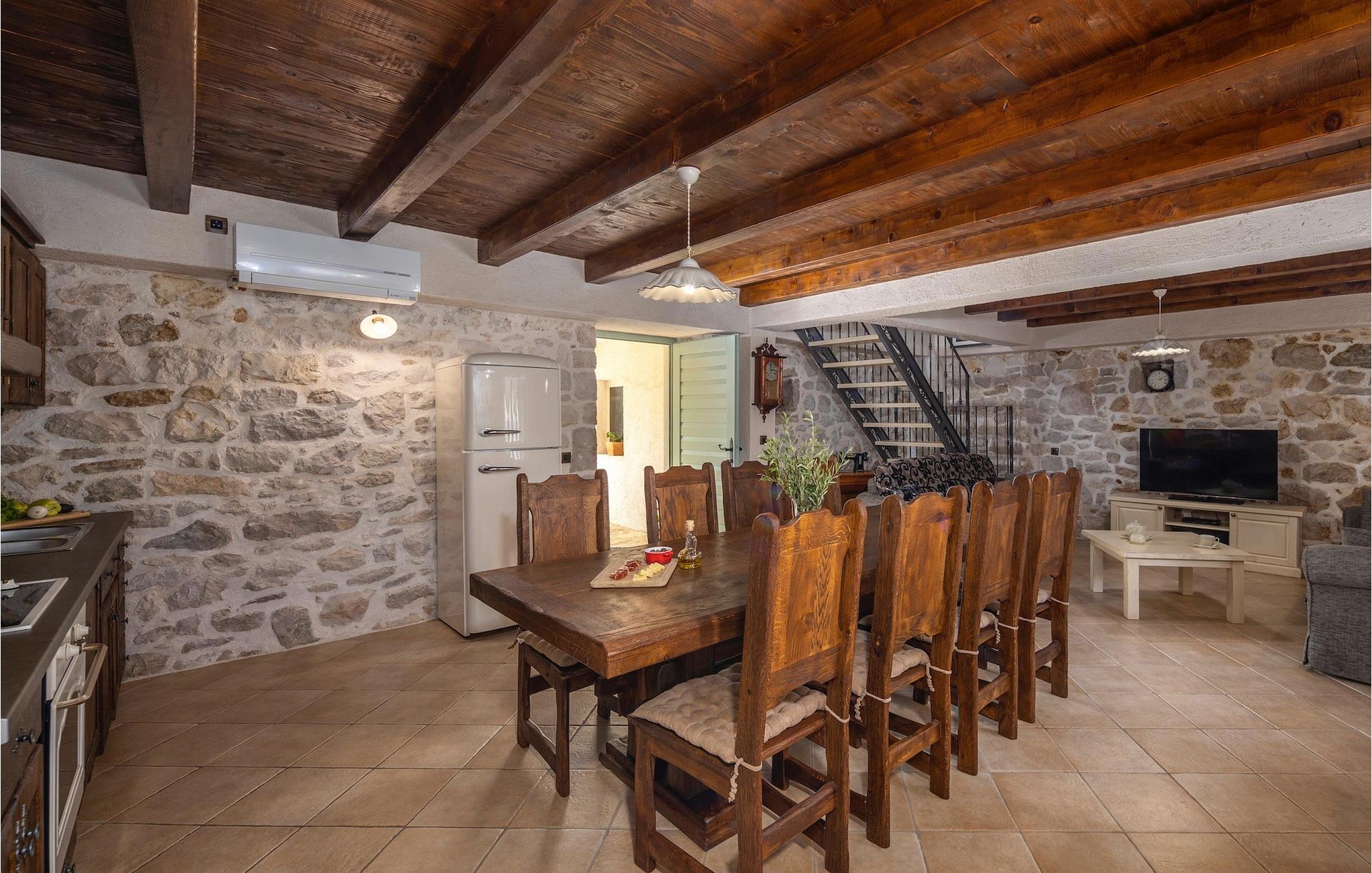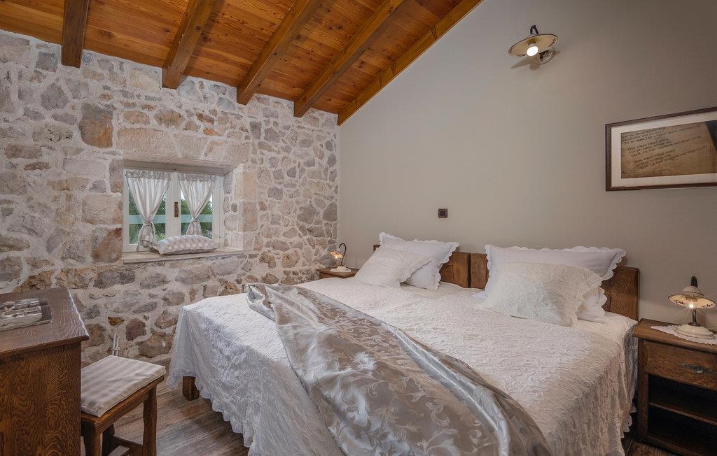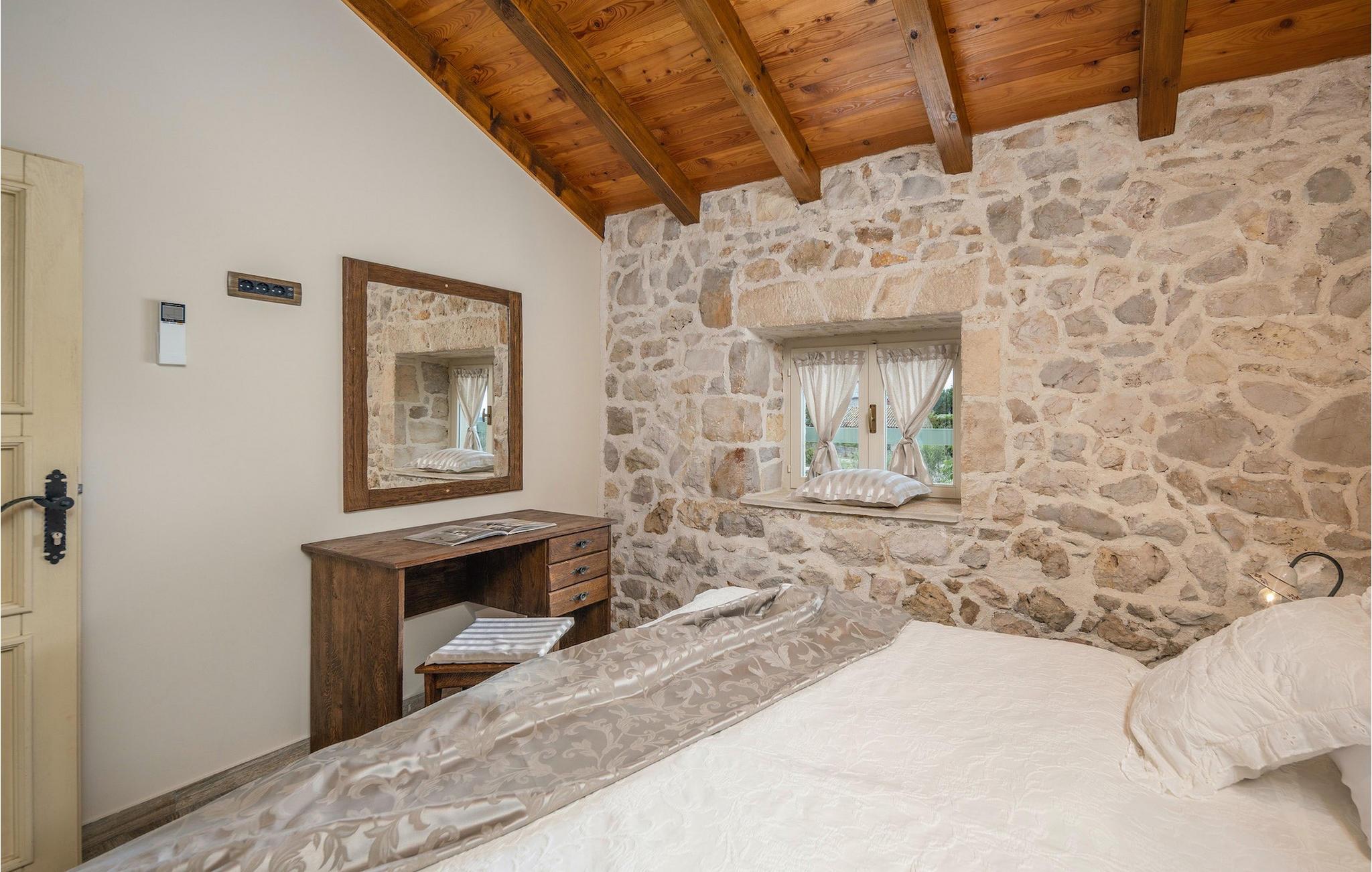 Denne smukke villa stammer fra 1821 og er et dejligt restaureret traditionelt dalmatisk hus. Beliggende i et fredeligt område, er denne villa ideel til en afslappende ferie. Villa Jerolim vil begejstre dig med sit lyse interiør indrettet i rustik stil. Det kan rumme op til 8 gæster og består af tre soveværelser placeret på øverste etage, hver med en dobbeltseng og aircondition. To af soveværelserne har også en ekstra seng til én person. Der er to interessant indrettede badeværelser, det ene med bruser og det andet med badekar. Der er et fuldt udstyret køkken til din rådighed i stueetagen, med en spiseplads til otte gæster, der åbner op til stuen.