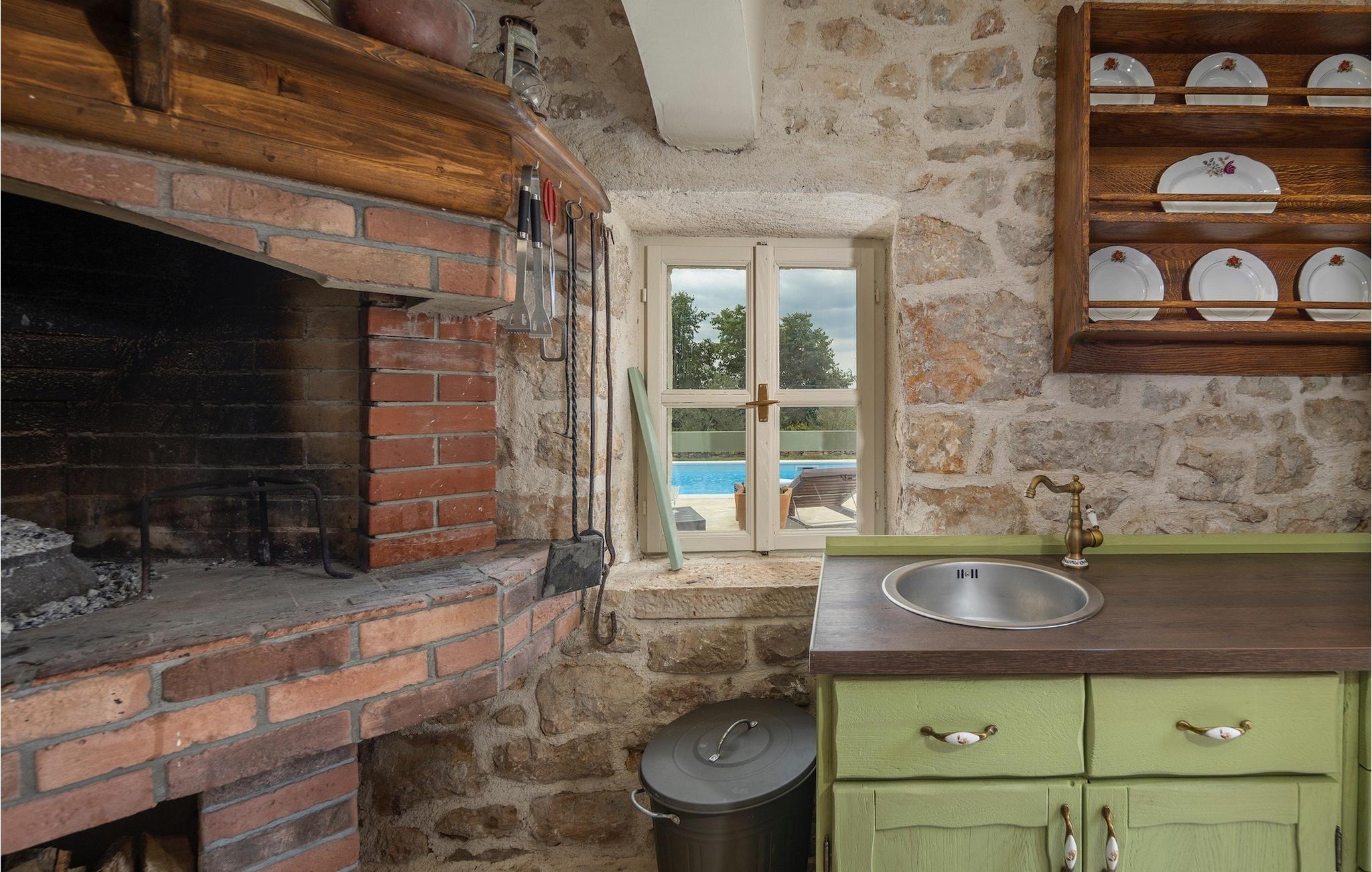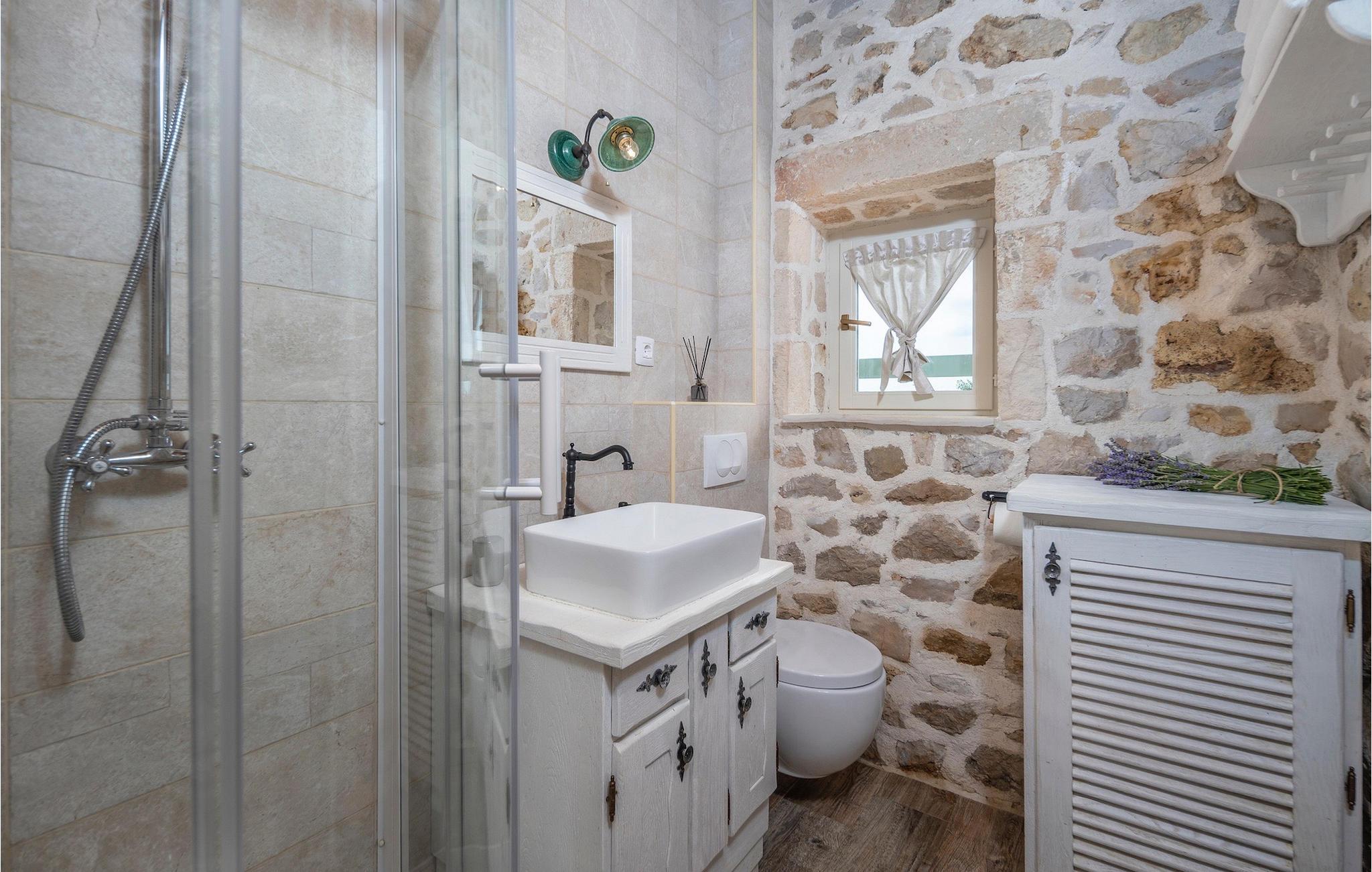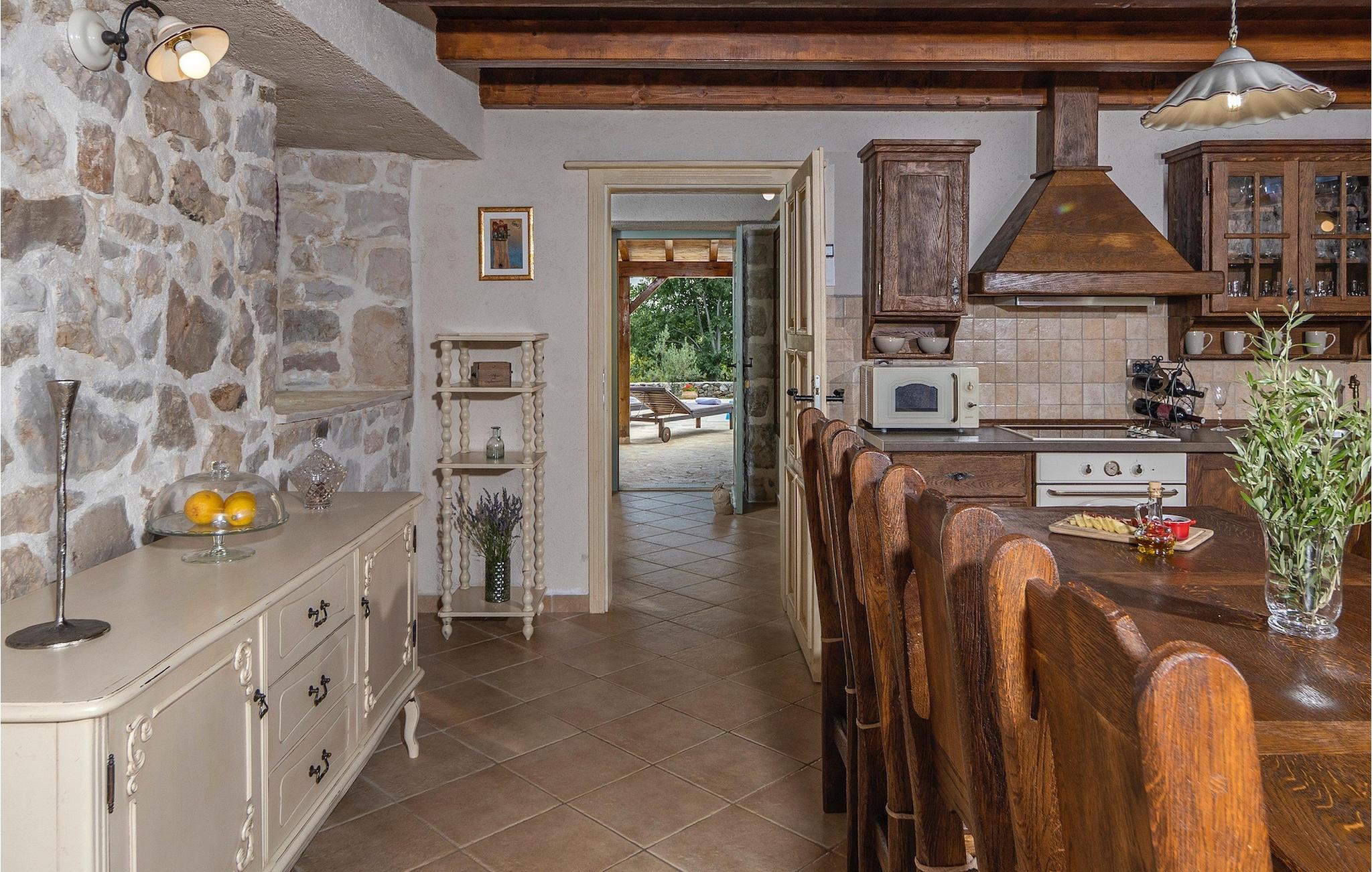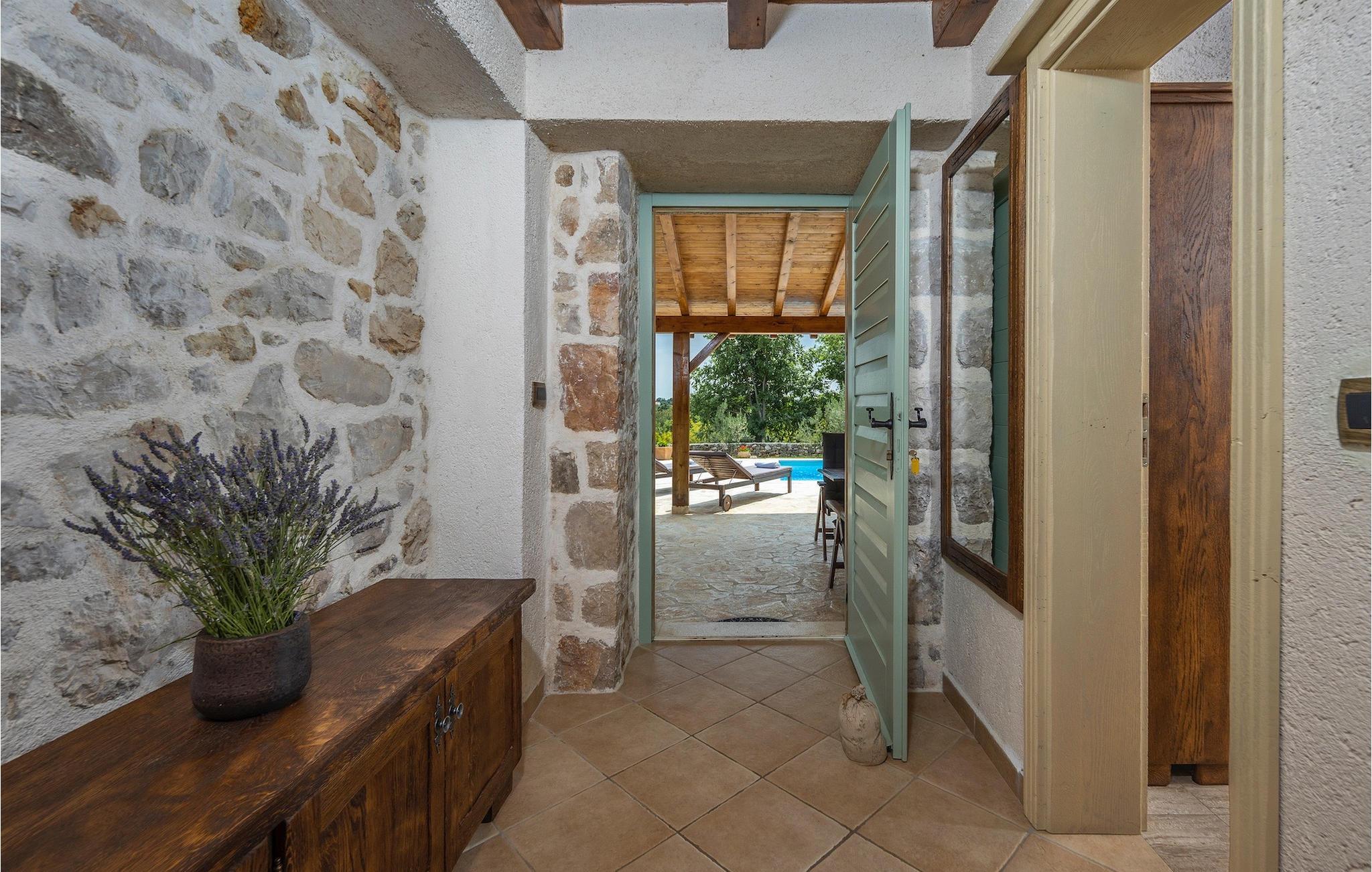 Denne smukke villa stammer fra 1821 og er et dejligt restaureret traditionelt dalmatisk hus. Beliggende i et fredeligt område, er denne villa ideel til en afslappende ferie. Villa Jerolim vil begejstre dig med sit lyse interiør indrettet i rustik stil. Det kan rumme op til 8 gæster og består af tre soveværelser placeret på øverste etage, hver med en dobbeltseng og aircondition. To af soveværelserne har også en ekstra seng til én person. Der er to interessant indrettede badeværelser, det ene med bruser og det andet med badekar. Der er et fuldt udstyret køkken til din rådighed i stueetagen, med en spiseplads til otte gæster, der åbner op til stuen.