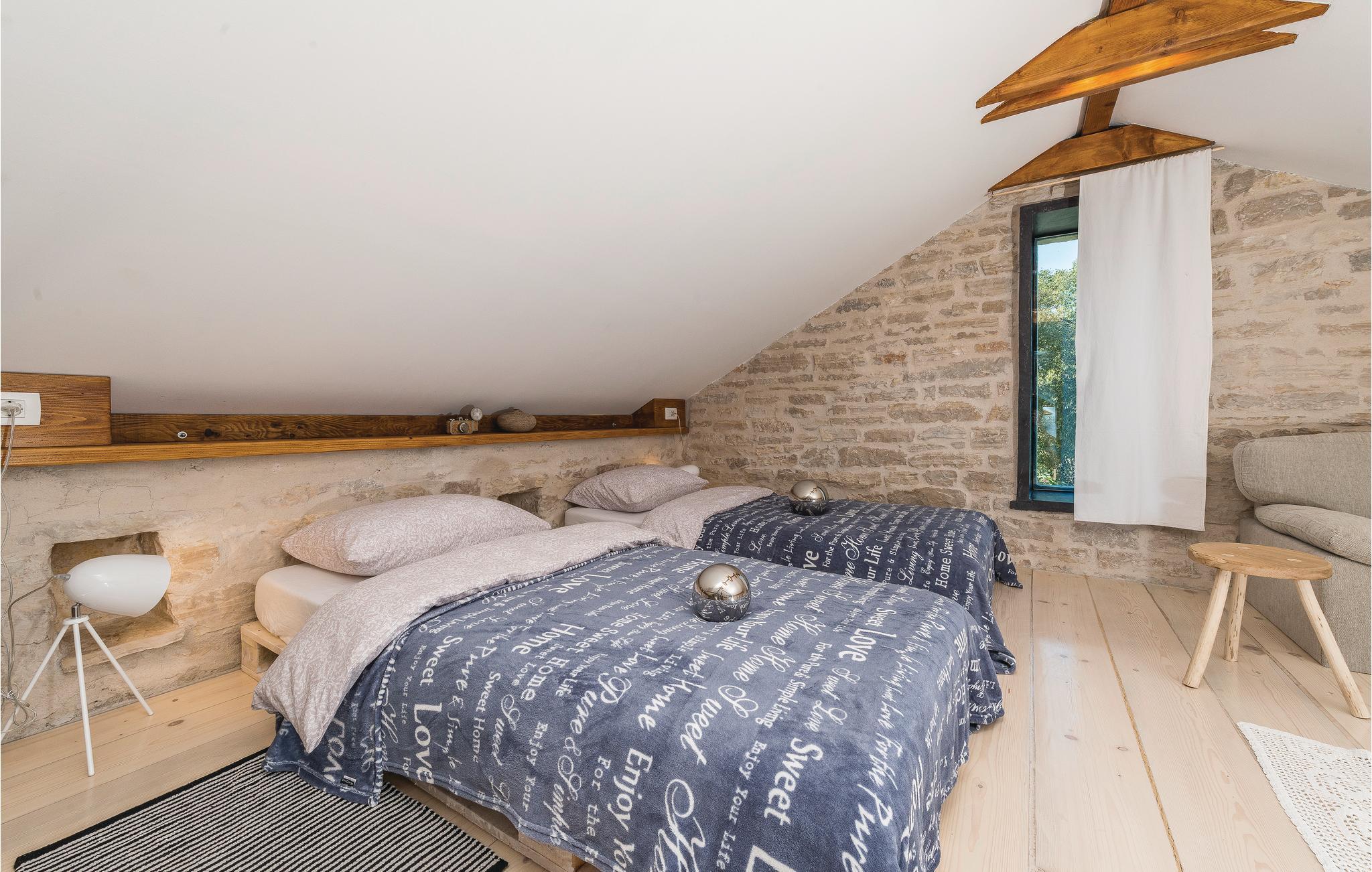 Dette skønne feriehus i traditionel og moderne stil ligger i kystsbyen Pridraga i Baturi Donjikvarteret. Det består af to huse af sten, der fordeler sig på stueplan og en hems, hvis loftshøjde i siden er ca. 120 cm, begge er komfortabelt og stilfuldt indrettet. Den indhegnede og smukt anlagte grund rummer en udendørs pool, som I vil sætte pris på, på de varme sommerdage. Her er også et hyggehjørne, hvor I kan sidde i brisen, eller i den lune aften, og hygge jer sammen med en cocktail eller et glas vin. Det er oplagt at besøge Zardars gamle bydel, hvis smalle, traditionsrige gader og pladser med maleriske kirker, kultur og historie vil fortrylle jer. Glem heller ikke at smage regionens dejlige lokale køkken. I kan tage på tur til Obrovac og til Zrmanjaflodens slugt, hvor I kan rafte og sejle i kajak.