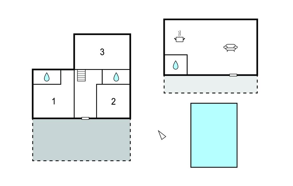 Badeværelse 4m2 (nr. 1) - WC. Varmt og koldt vand. Bruser