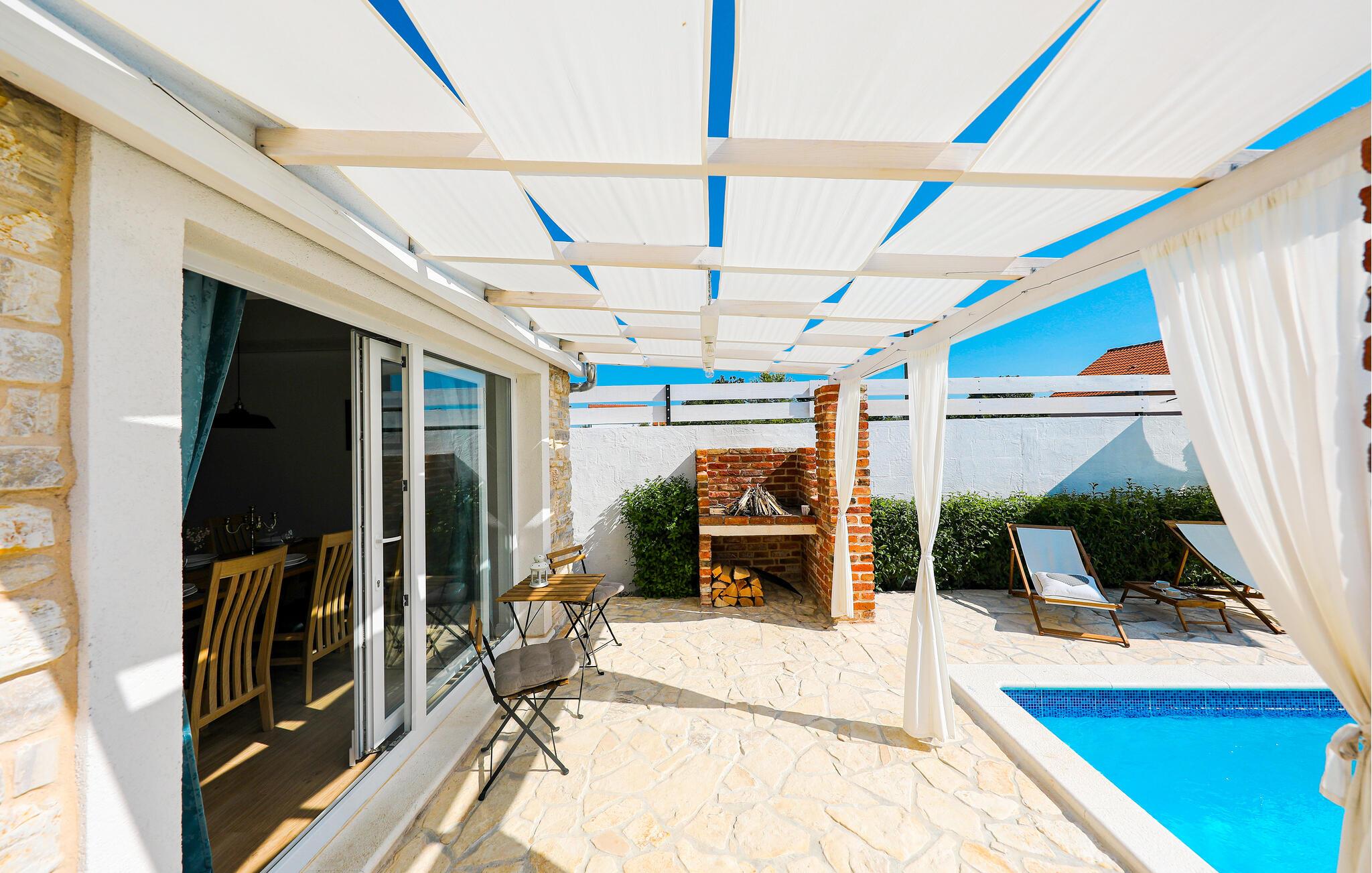 Tag en kort gåtur til stranden, som ligger kun få minutters gang væk. Dyk ned i det krystalklare vand i den rolige bugt, som er perfekt til svømning og snorkling. Dagsture til den historiske gamle bydel i Zadar med dens seværdigheder, samt nationalparkerne Paklenica og Krka er ideelle.