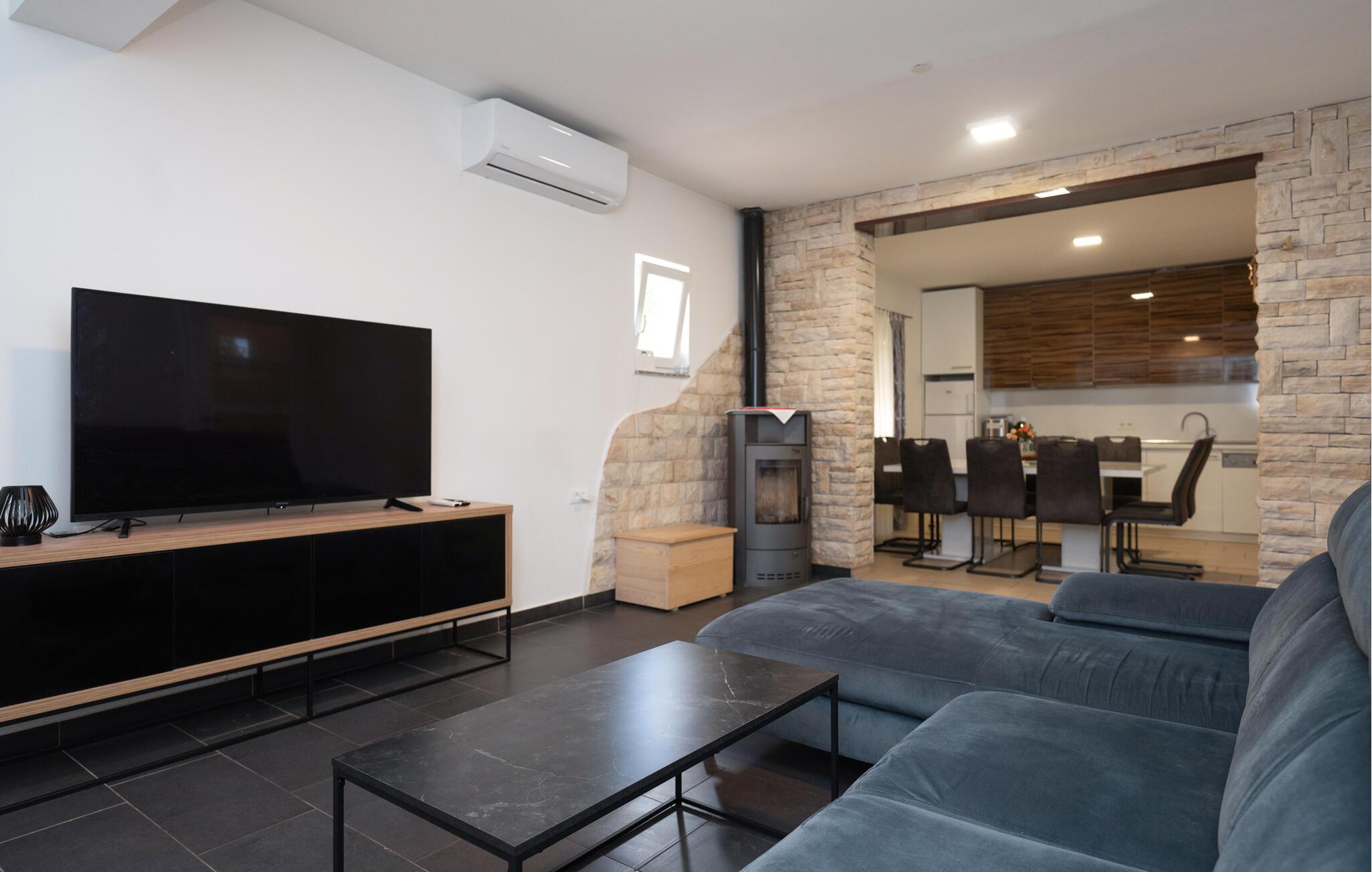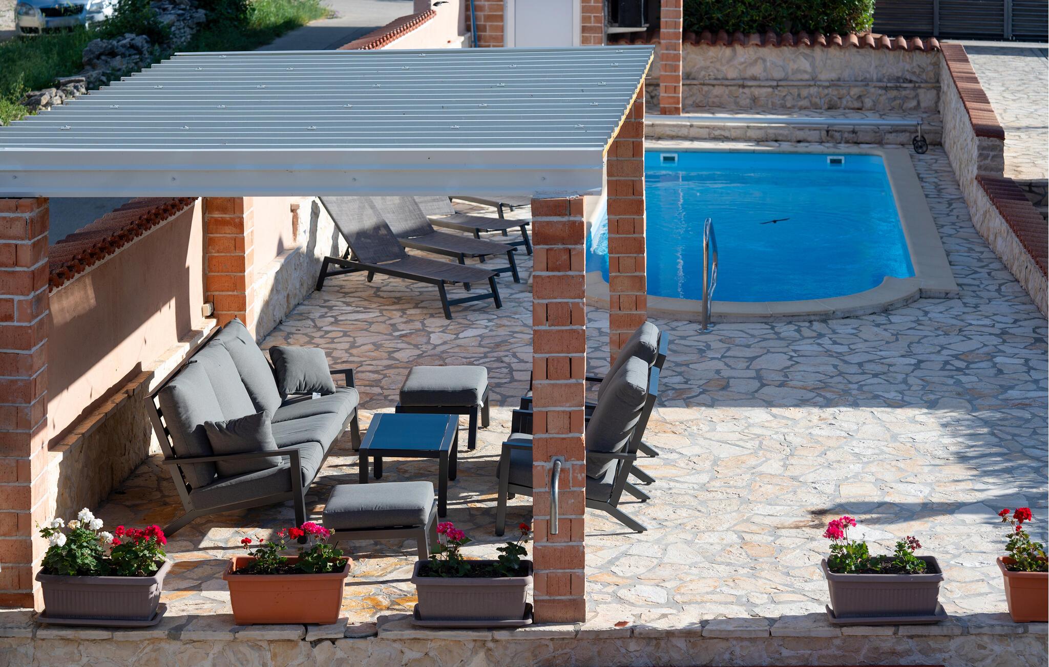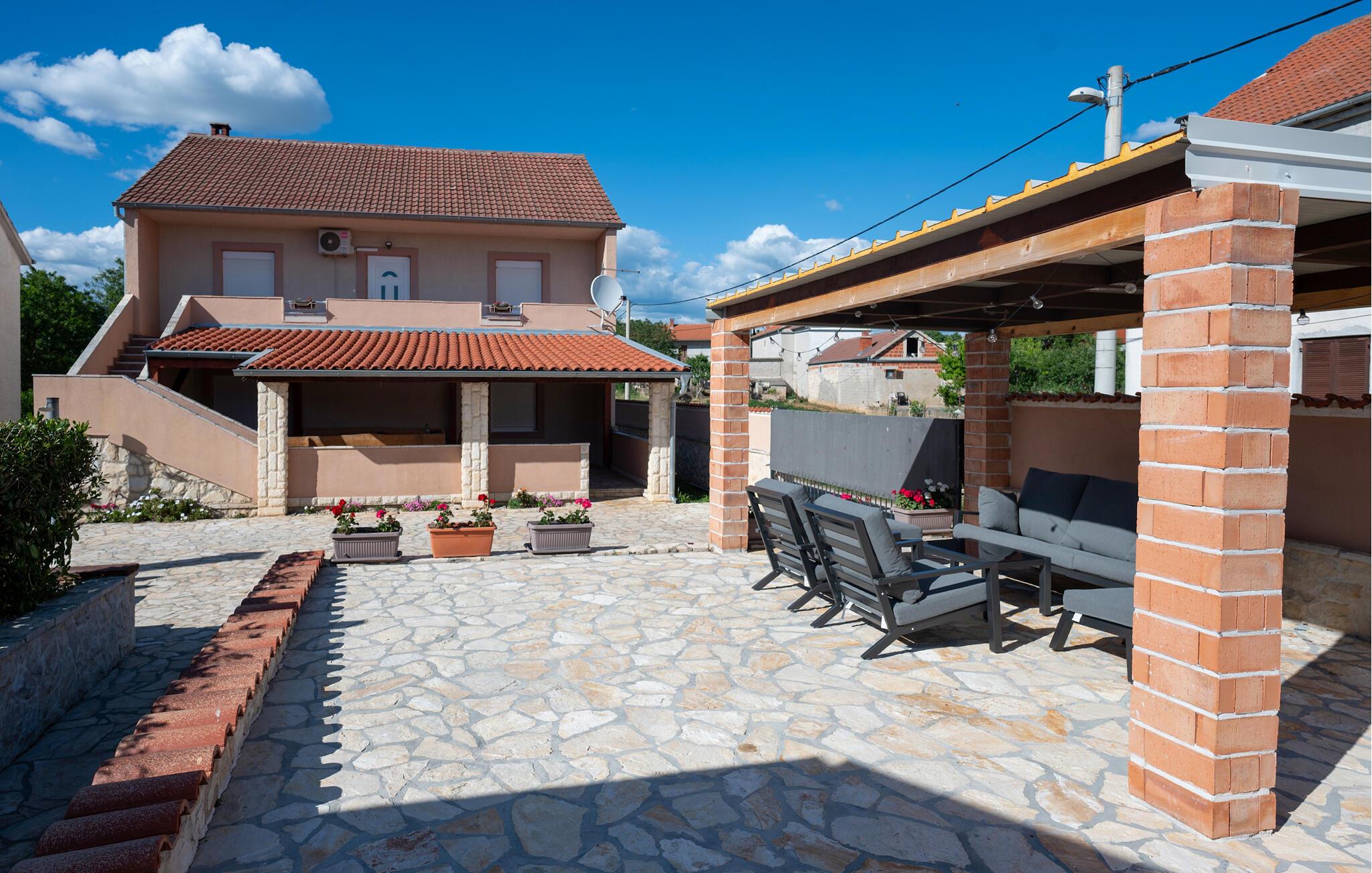 Tilbring en dejlig ferie i dette moderne feriehus med pool. Huset er perfekt, hvis I rejser med en stor familie eller en gruppe venner. Den lyse og indbydende atmosfære indbyder til afslappende timer med at spille kort, se tv eller nyde et hyggeligt måltid sammen. Tilbered lækre måltider i det moderne køkken, mens jeres yndlingsmusik spiller sagte i baggrunden. Spis morgenmad udenfor og nyd den fredelige atmosfære, mens I nyder jeres første kop kaffe. Tag en forfriskende dukkert i poolen og spil en omgang vandpolo. Mens børnene leger frit, kan I fordybe jer i jeres ferielæsning. Om aftenen inviterer den afslappede atmosfære jer til at afslutte dagen med en lækker grillfest og en flaske vin. I Pridraga kan I nyde de rolige strande, hvor I kan svømme i det azurblå Adriaterhav, solbade eller blot nyde atmosfæren. Udforsk det omkringliggende område med kyststier, afsondrede bugter og fantastiske udsigtspunkter på afslappende gåture. Tag desuden en tur til Zadar, hvor den historiske gamle bydel, lyden af Havorglet og middelhavsstemningen på promenaden skaber en vidunderlig feriestemning.