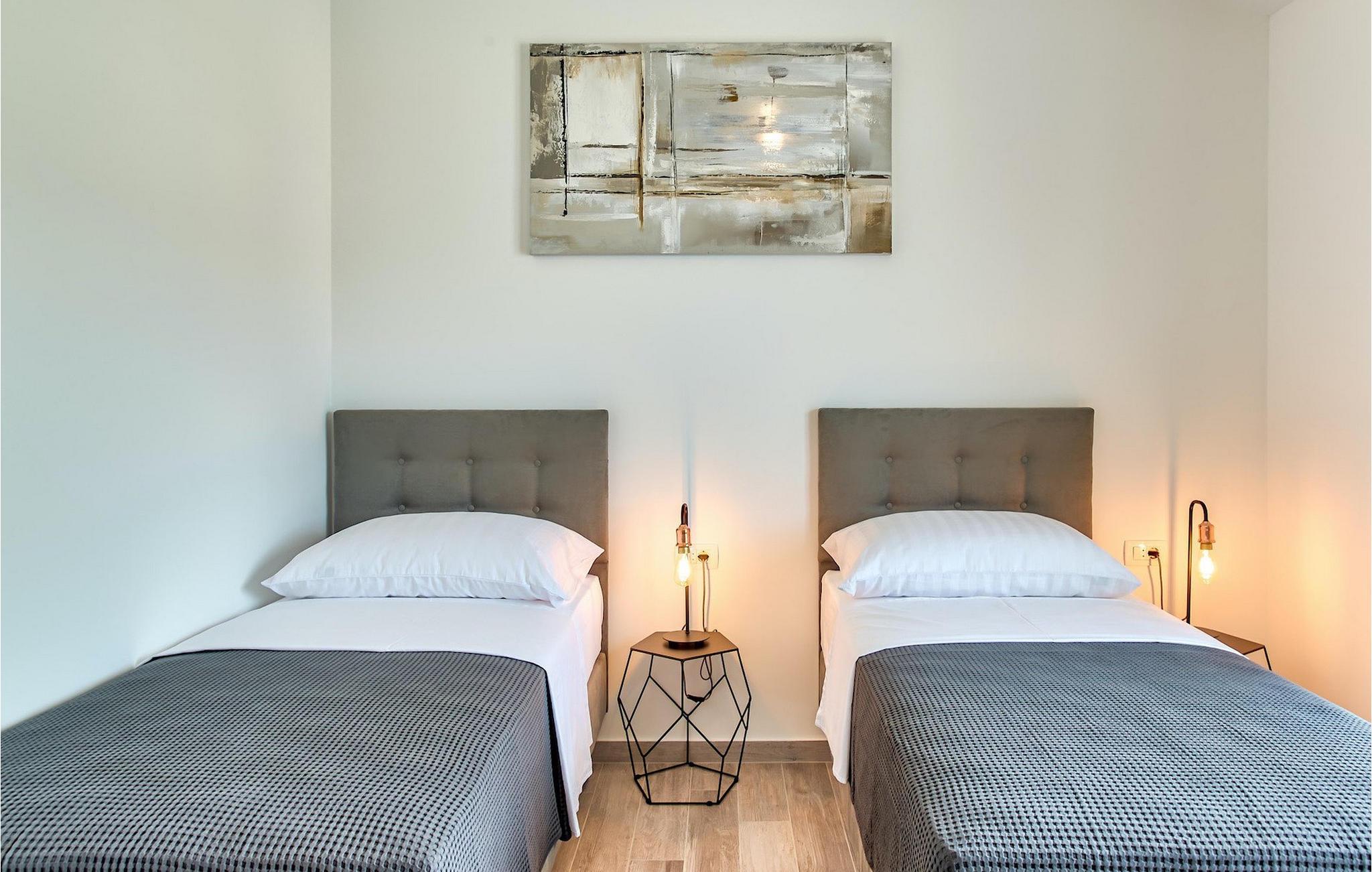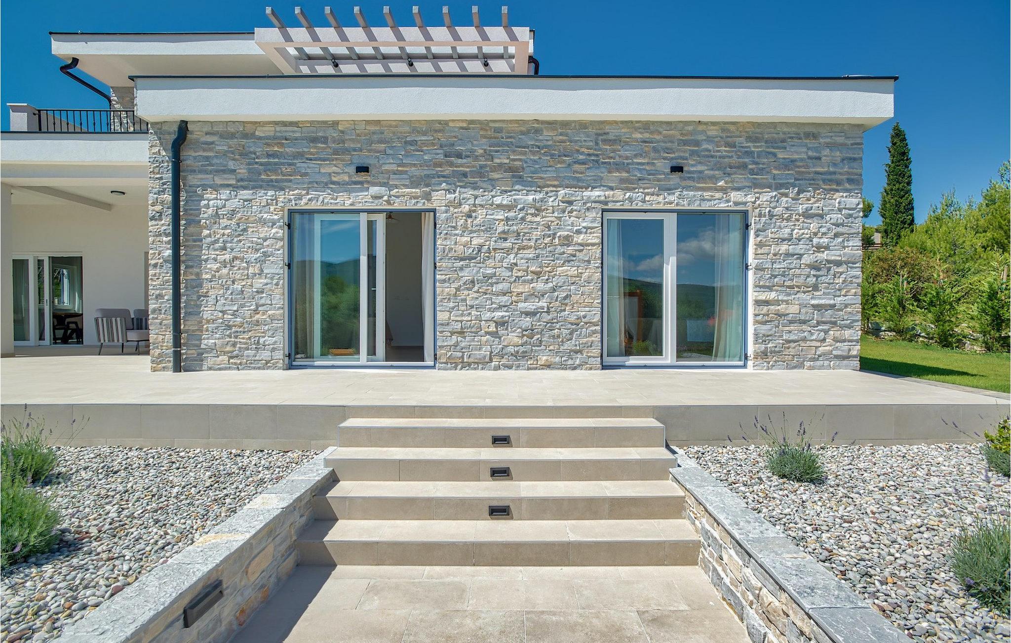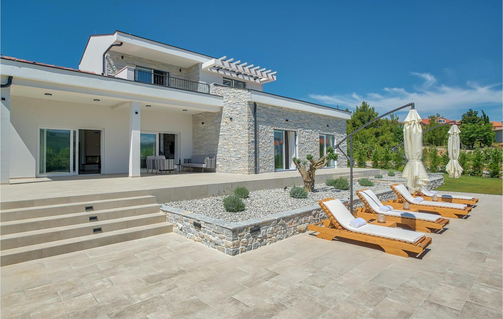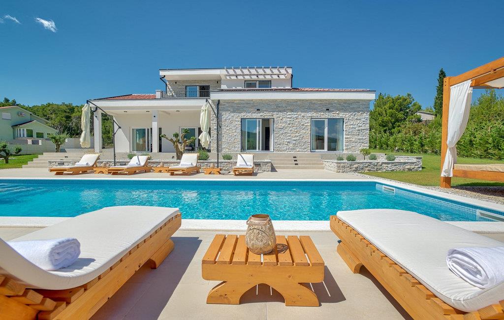 Denne magiske villa i Pridraga, nær byen Zadar, vil glæde dig med sit elegante design og komfort. En smuk have med komfortable liggestole og en privat pool på 40 kvadratmeter står til gæsternes rådighed, mens havet kun ligger 50 m væk. To soveværelser med eget badeværelse og adgang til poolen er placeret i stueetagen, mens de to øvrige soveværelser ligger på første sal og har udgang til altan, hvorfra man kan nyde den smukke havudsigt. Alle værelser har aircondition, indrettet i lyse pastelfarver og har eget badeværelse og tv for ekstra komfort.