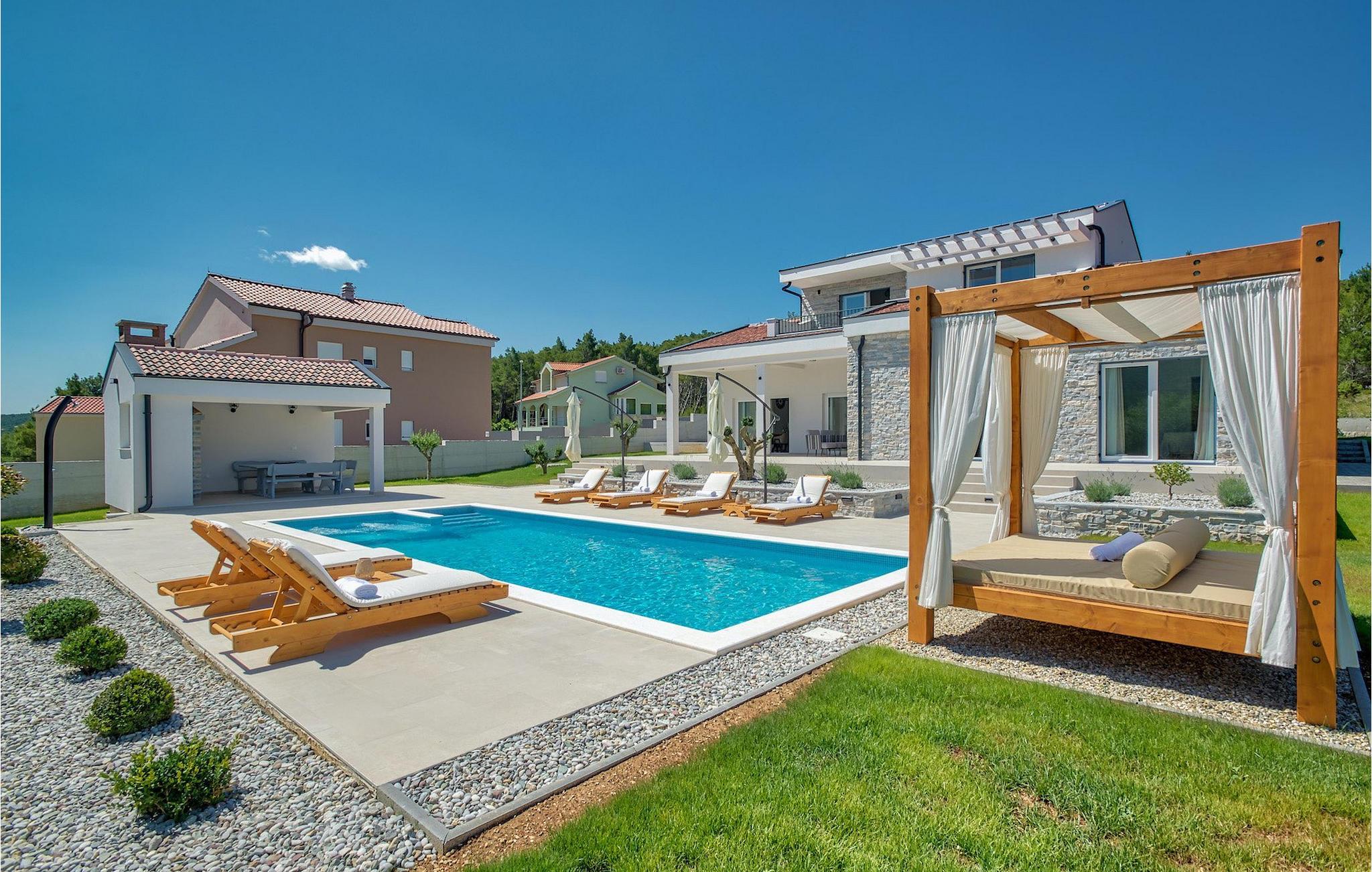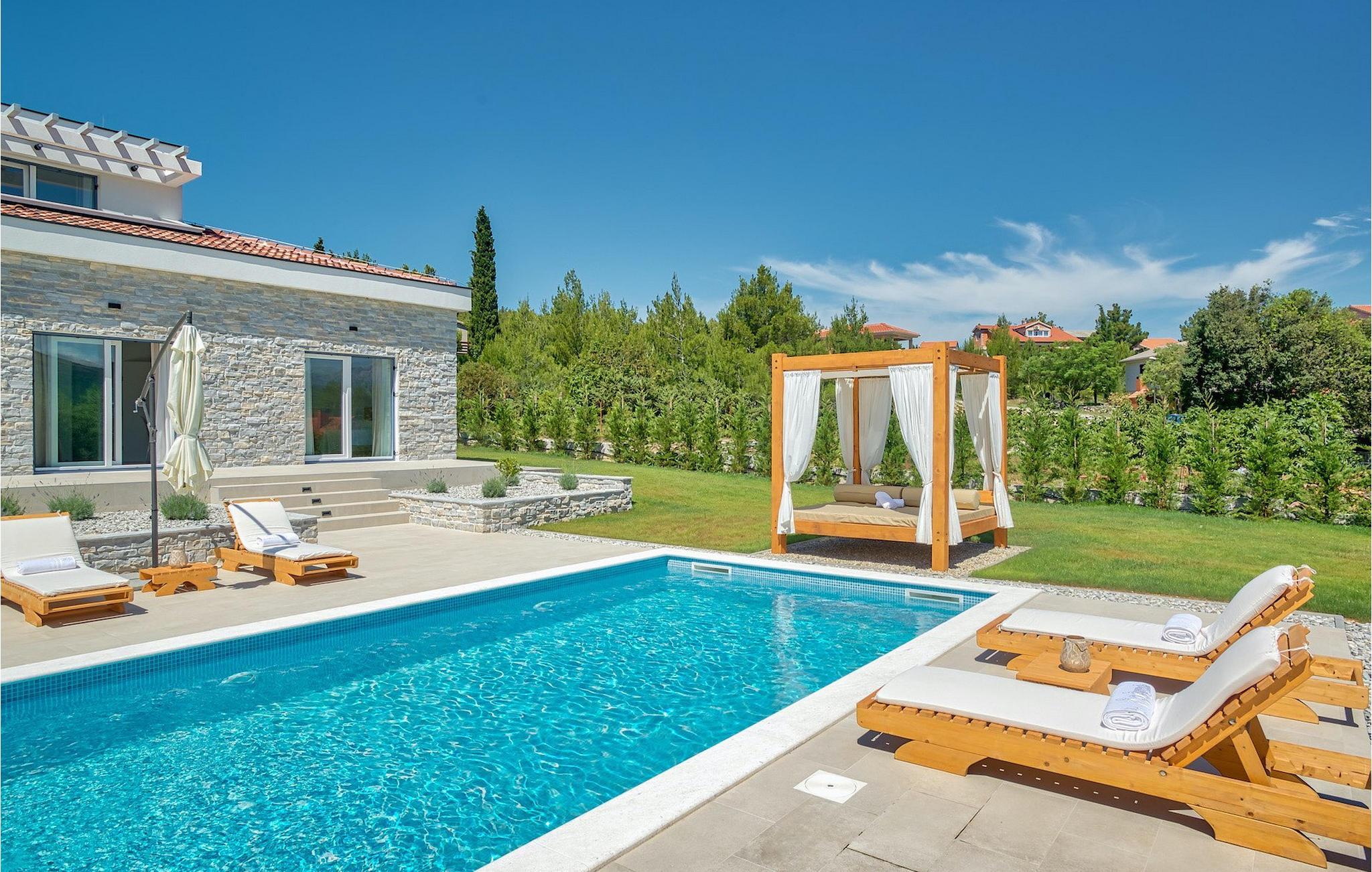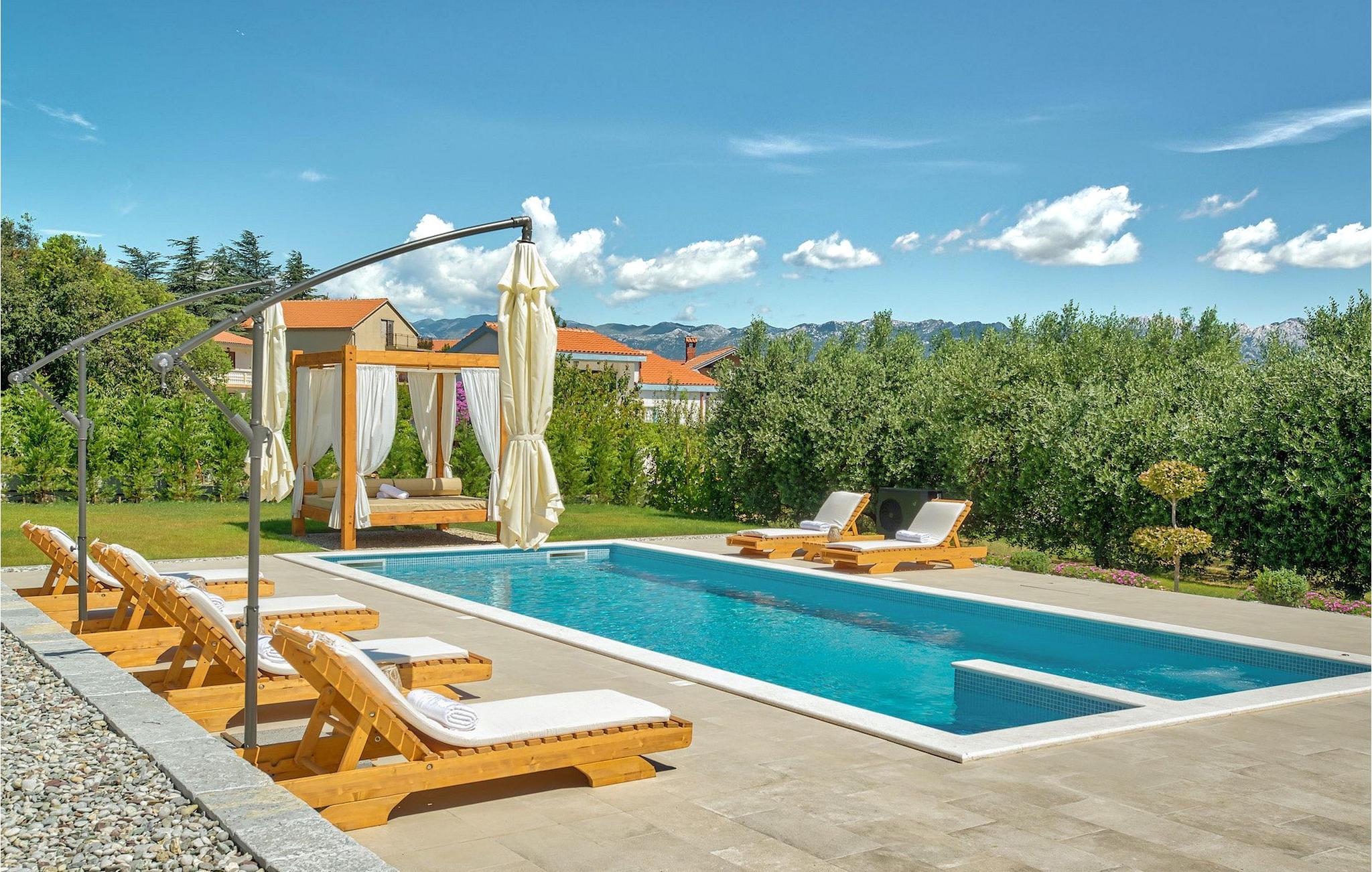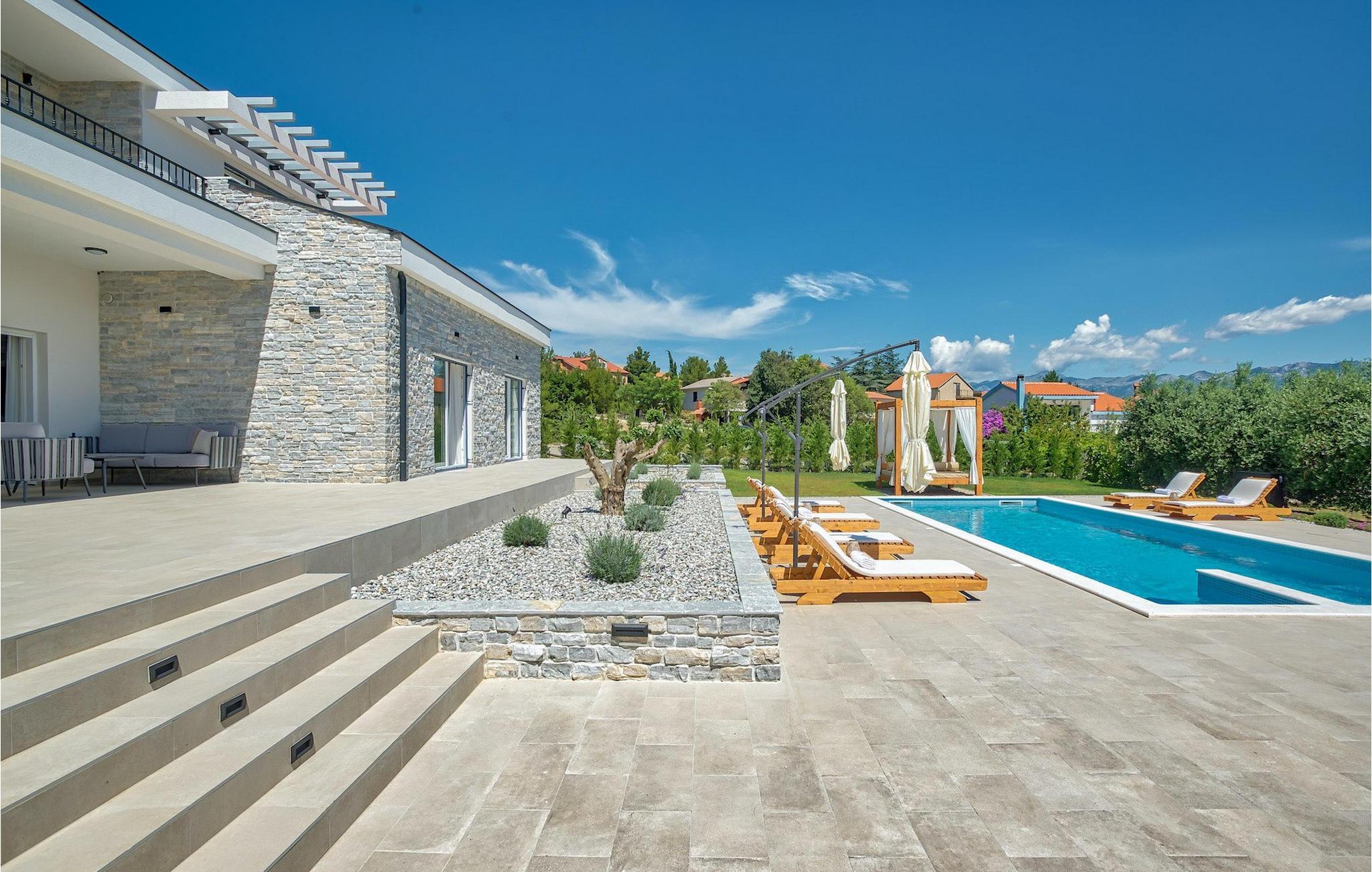 Pak badetøjet og solbrillerne og slap af på de komfortable liggestole ved poolen i denne smagfuldt indrettede villa med en fantastisk beliggenhed. :)Dette søde og luksuriøse feriehus ligger i Pridraga, et lille sted kun en kort køretur fra byen Zadar - en gammel by med en historisk og kulturel arv værd at se og gå tilbage til oldtiden, middelalderen og renæssancetiden. I dag er den berømt for symfonien om Havorgelet og lysinstallationen "Pozdrav Suncu" (Hilsen solen). Udover kulturelle og historiske skønheder byder Dalmatien på en unik gastrooplevelse, velkendt i denne del af Europa. Hjemmelavet dalmatisk prosciutto (pršut) og blå blåmuslinger fra Middelhavet er blot nogle få af de mange lækre gastro-fornøjelser, som denne del af Dalmatien kan byde på for en ægte oplevelse af hjemmelavet middelhavskøkken. Denne del af Dalmatien er også hjemsted for et par af de smukkeste national- og naturparker i denne del af Europa. Her er 3 naturparker - Telašcica, Nordlige Velebit og Vransko-søen samt 5 nationalparker - Paklenica, Plitvice, Kornati, Krka og Velebit, der rangerer Zadar og dens omgivelser på toppen af det kroatiske turisttilbud.