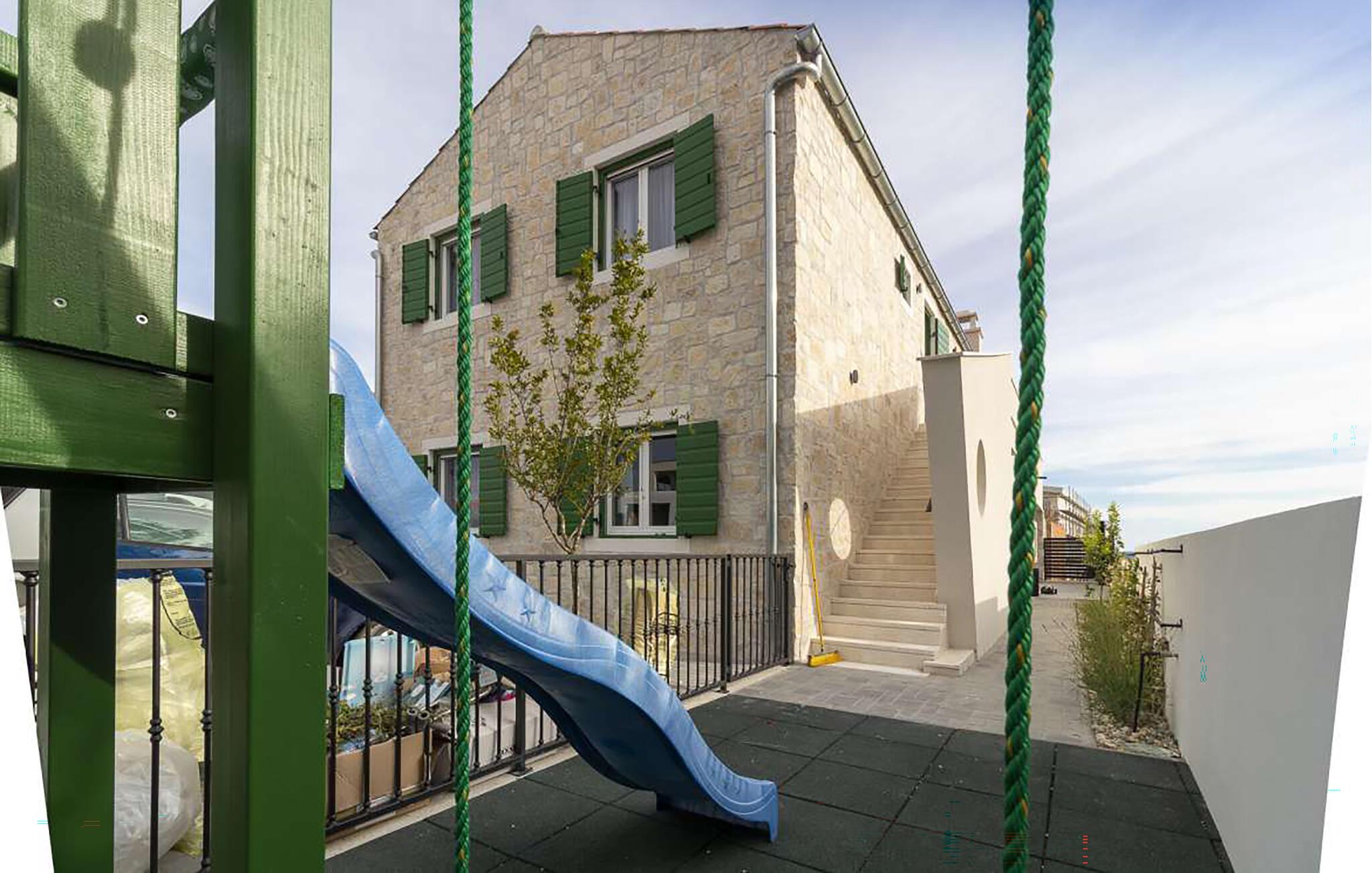 Træd udenfor ved det første solskin og tag en forfriskende dukkert i poolen. Læn jer tilbage i en af ??liggestolene og læn jer tilbage med jeres ferielæsning. Børnene kan klatre og rutsje efter hjertens lyst, mens de voksne lægger planer for den næste dag. Om aftenen, når solen går ned, forvandles poolområdet til det perfekte sted til afslappende sommeraftener.