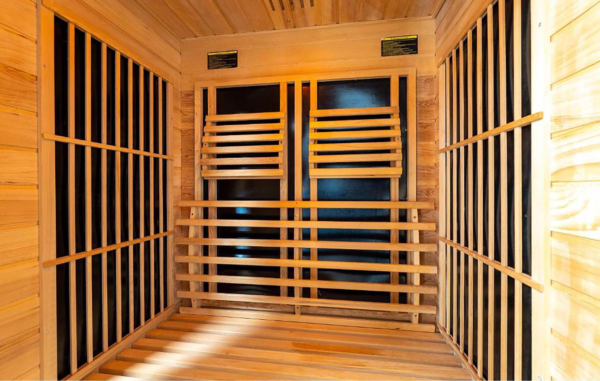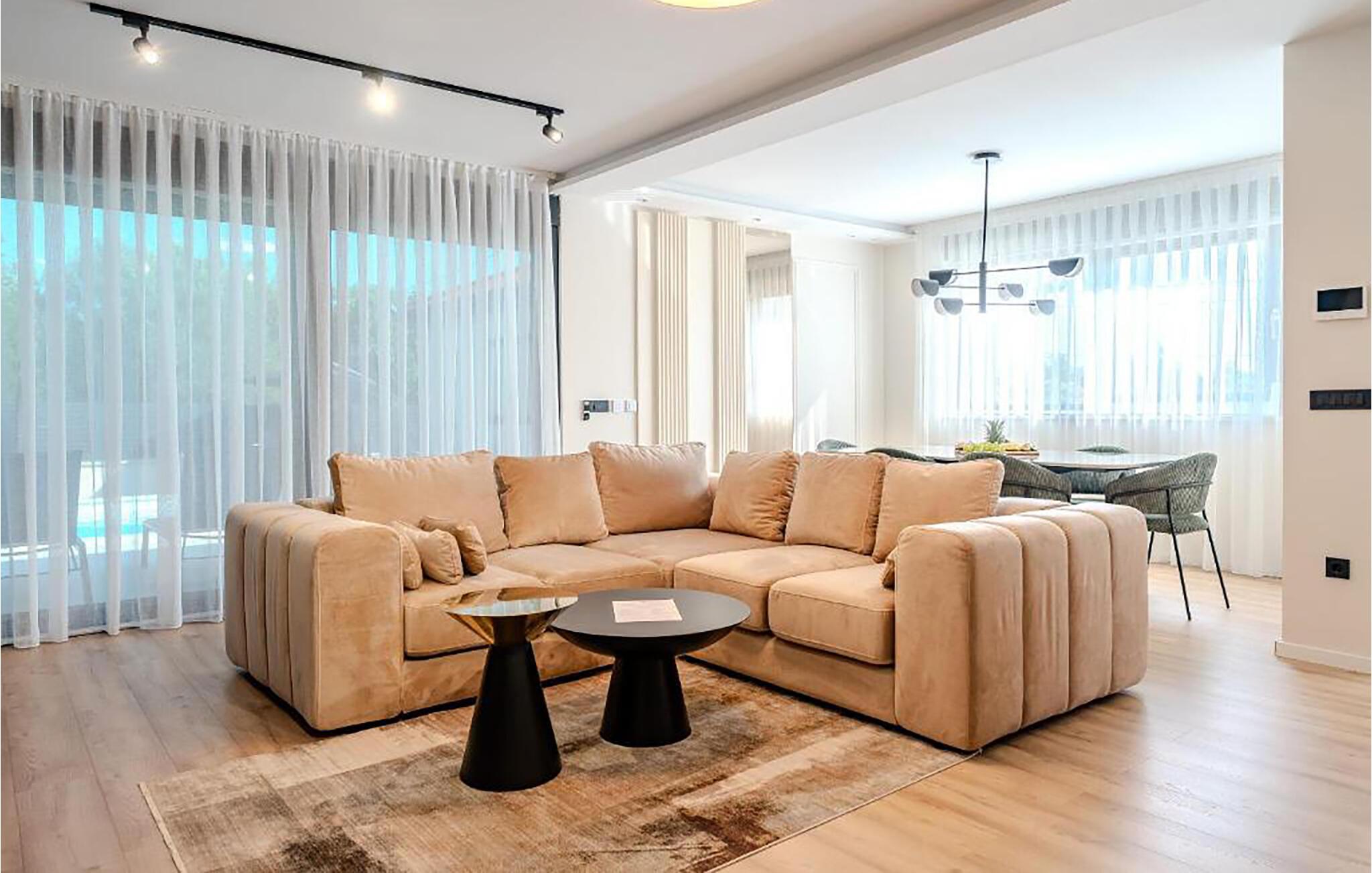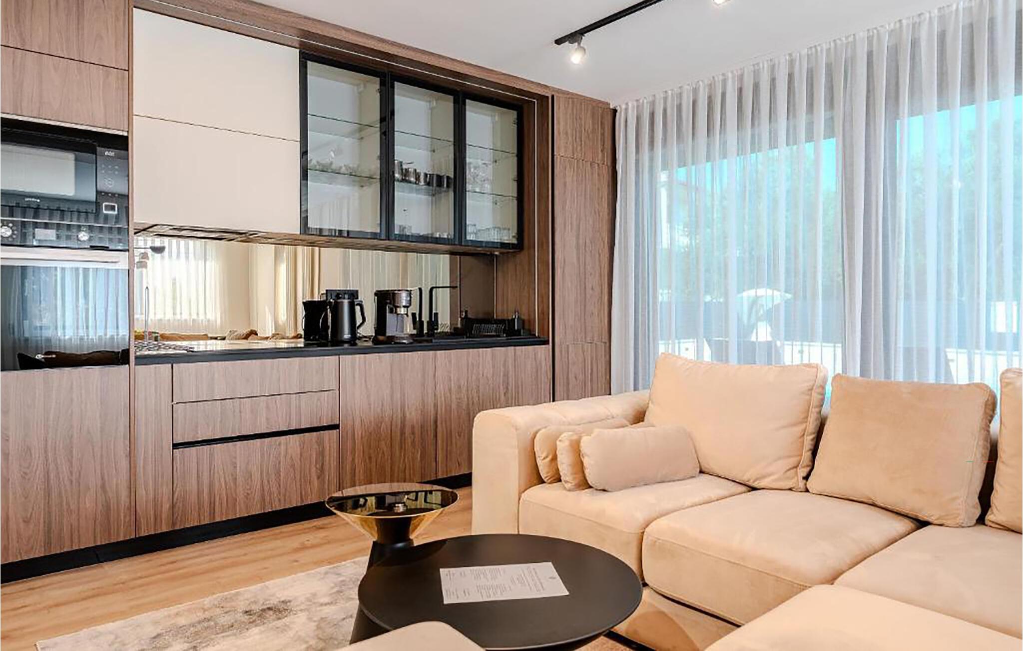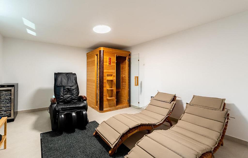 Jeres attraktivt designede feriehus kan prale af møbler af høj kvalitet og en indbydende atmosfære. Takket være saunaen, fitnessrummet og det rummelige udendørsområde kan I skræddersy jeres ophold til jeres præcise præferencer. Den store, komfortable sofa lægger op til at slappe af. Nyd den moderne indretning med varme farver og gennemtænkte detaljer. Tilbered jeres måltider i det elegant integrerede tekøkken og nyd dem ved det stilfulde spisebord. Hold jer aktiv i det veludstyrede fitnessrum. Bagefter kan I forkæle jer selv med lidt afslapning i wellness-oasen med sauna, massagestol og to liggestole.