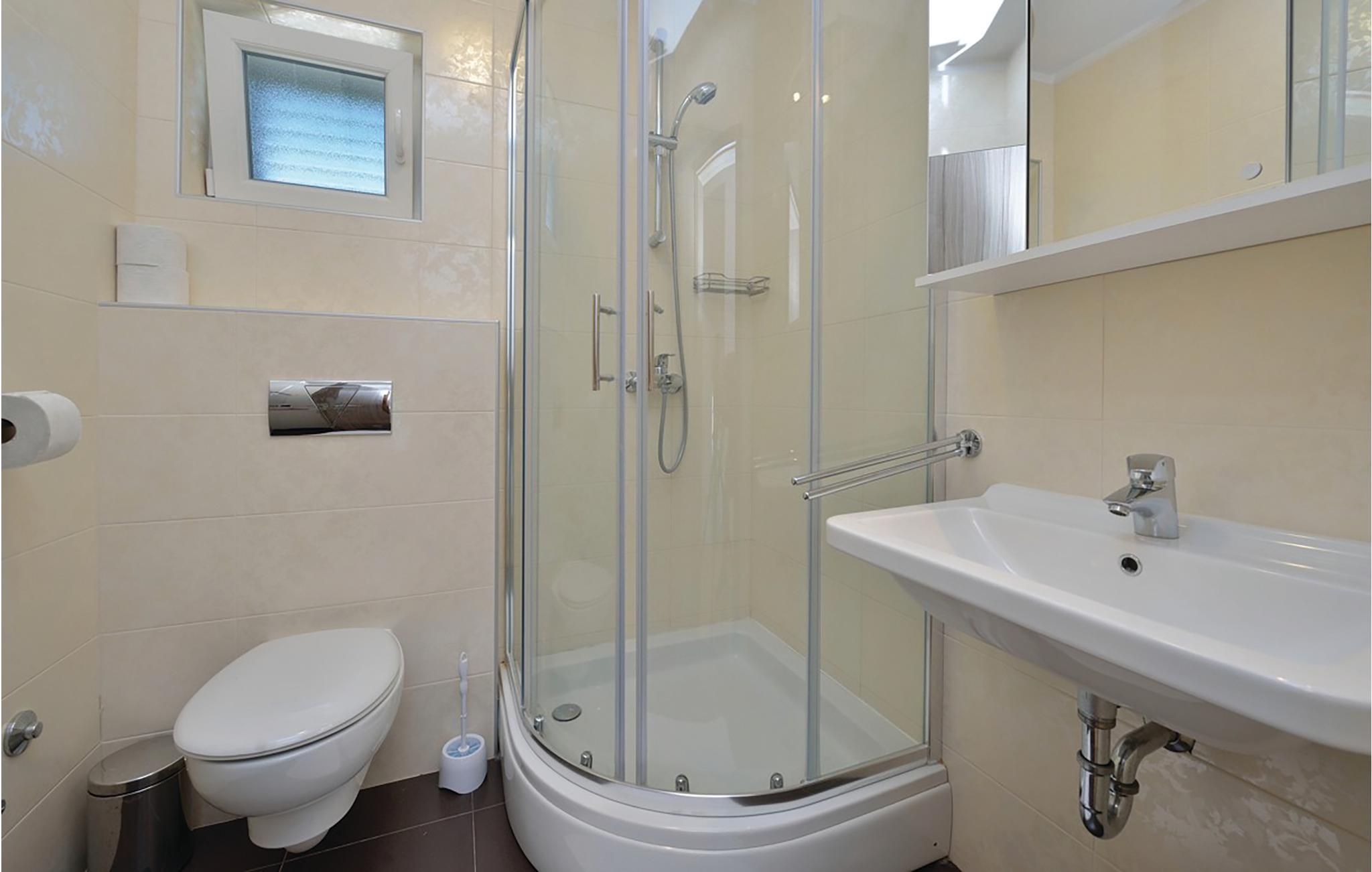 Badeværelse (nr. 1) - WC. Varmt og koldt vand. Bruser