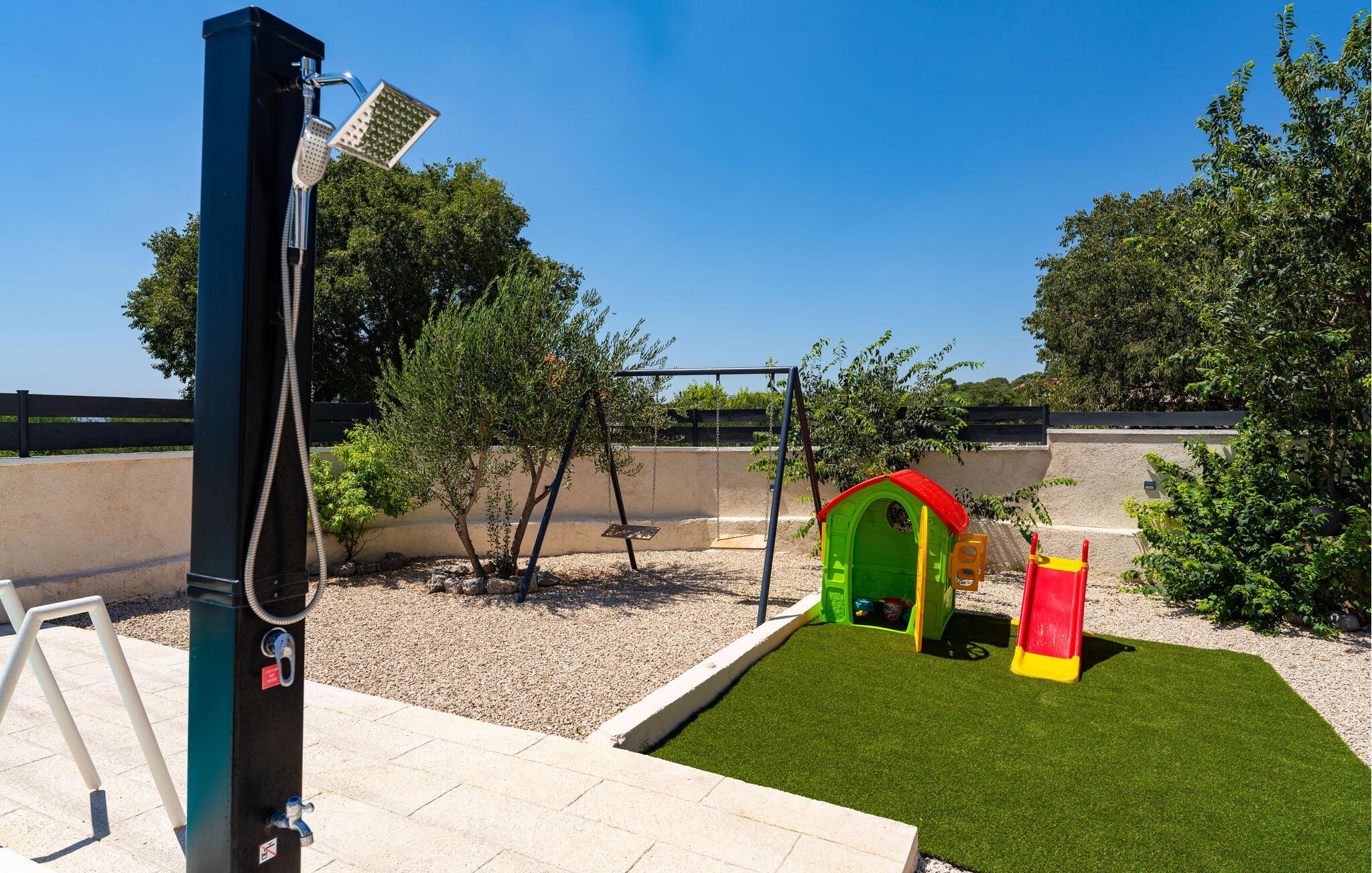 Velkommen til dette familievenlige feriehus! Her kan I se frem til smagfulde indretningsløsninger, der giver jer maksimal komfort og gør jeres ophold ekstra behageligt. Nyd de lyse rum med farverige accenter, der straks giver jer følelsen af at være hjemme. De moderne, attraktive møbler skaber en stilfuld atmosfære, mens den hyggelige veranda giver jer det perfekte sted til afslappende stunder. Nyd haven med pool, solterrasse, bordtennis og legeplads - helt optimalt til familier. Den overdækkede terrasse lægger op til hyggelige grillaftener udendørs, hvor I kan planlægge jeres næste aktiviteter og udflugter.