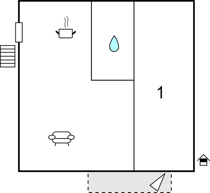 Komb. spisestue/køkken 25m2 - 2 Sovepladser. (Sofa, madras eller lignende).