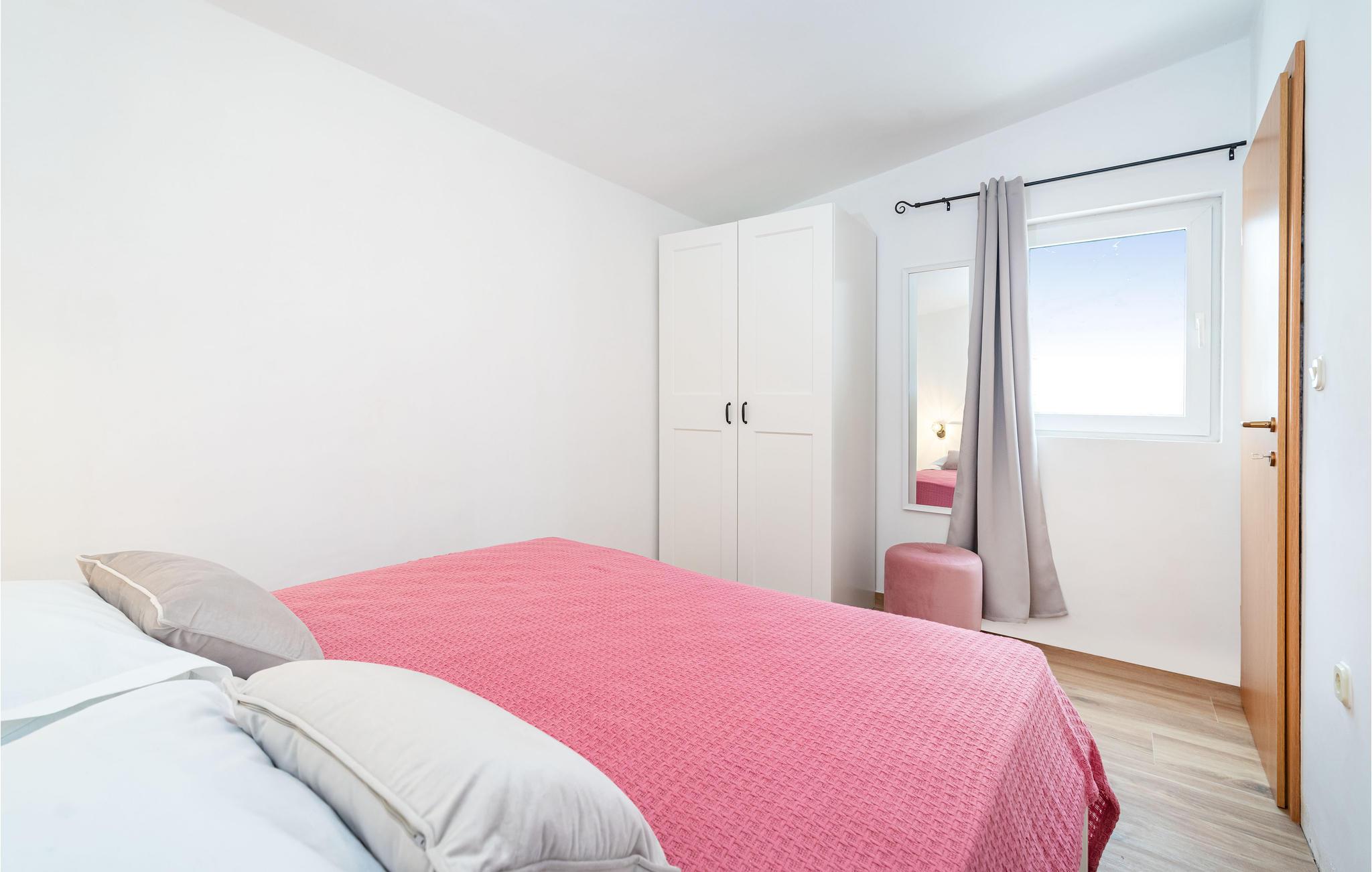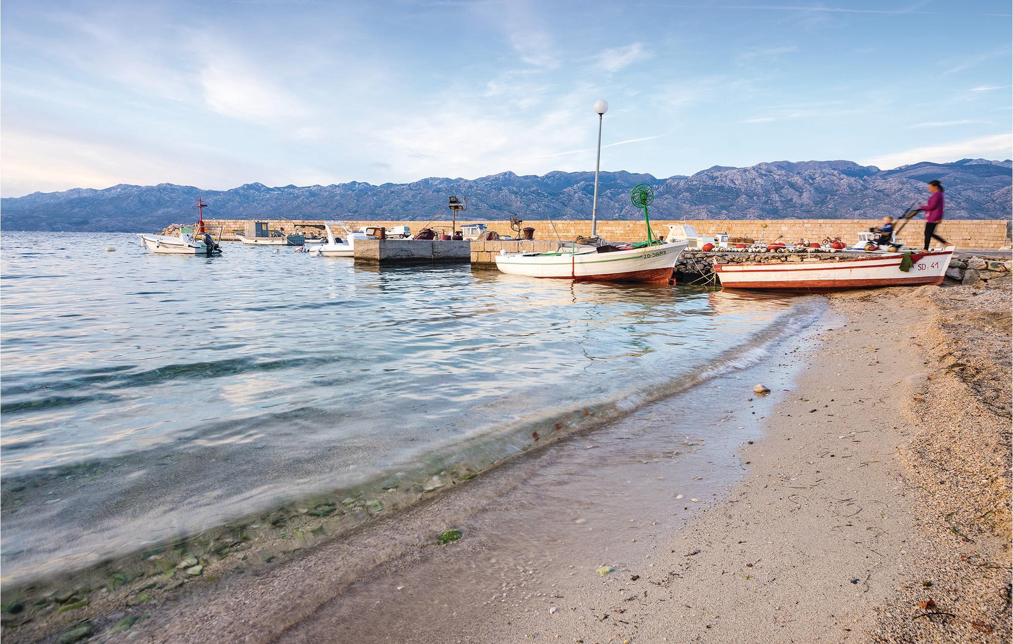 Denne bolig i den maleriske landsby Razanac er beliggende i en beboelsesejendom, kun en kort gåtur fra børnevenlige stenstrande og rolige bugter. Her finder I den ideelle kombination af rolig afslapning og skønne naturoplevelser. Start dagen på den hyggelige, overdækkede terrasse, hvor et træ giver skygge og behagelig kølighed. Nyd morgenmaden udendørs og lad jeres blik vandre over de rolige omgivelser. Den moderne lejlighed er praktisk og stilfuldt indrettet. Stuen har et spisebord og et lille køkkenområde. Den hyggelige indretning skaber en atmosfære, hvor I straks føler jer hjemme. Der er en grill i gården, som I kan dele med andre gæster. En god mulighed for at tilberede lokale fiskeretter og måske stifte nye bekendtskaber. I kan også udforske de idylliske bugter i området, hvor I vil føle jer som en moderne Robinson Crusoe. For naturelskere tilbyder udsigten fra stranden af de majestætiske Velebit-bjerge et uforglemmeligt panorama.