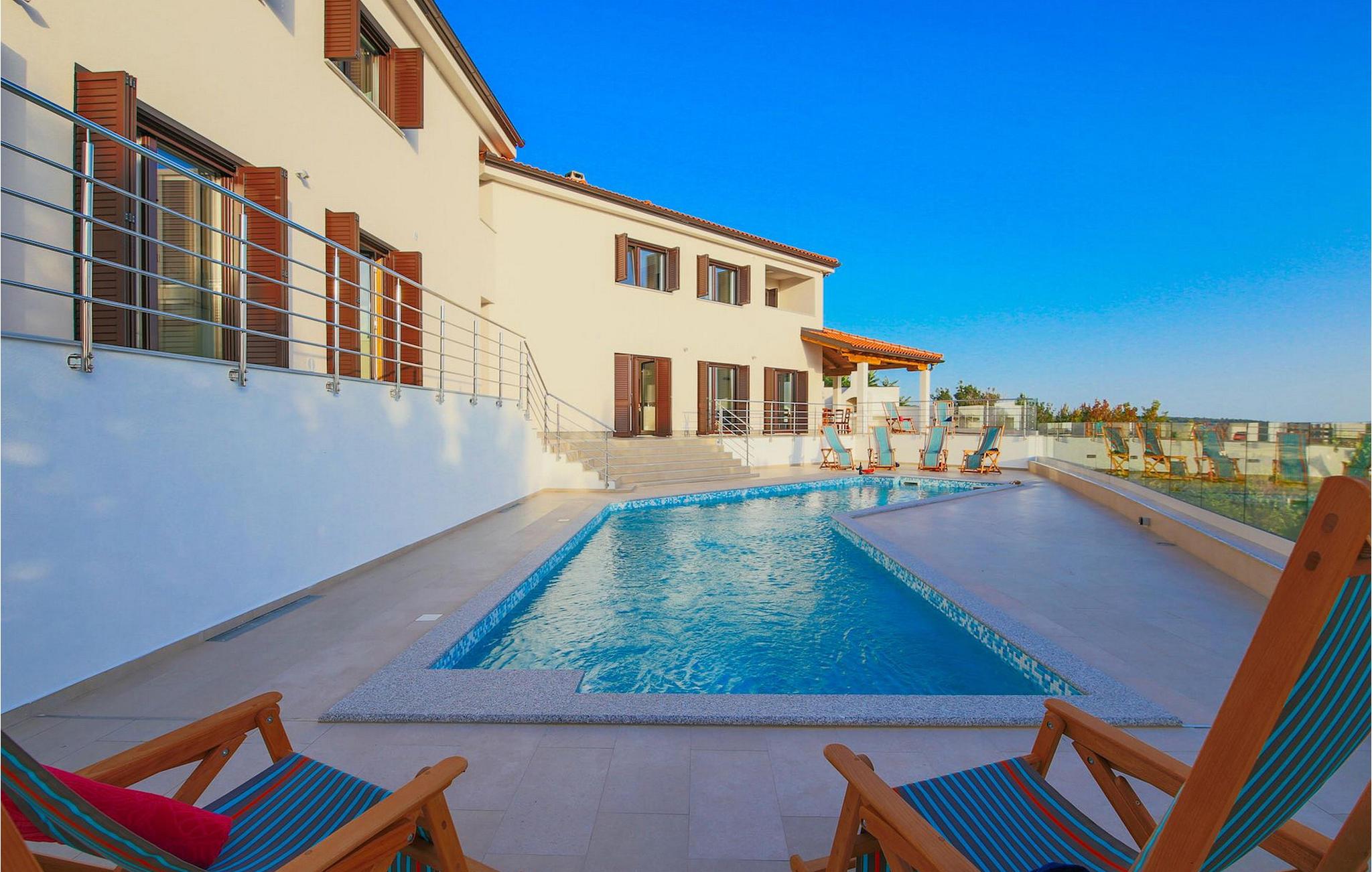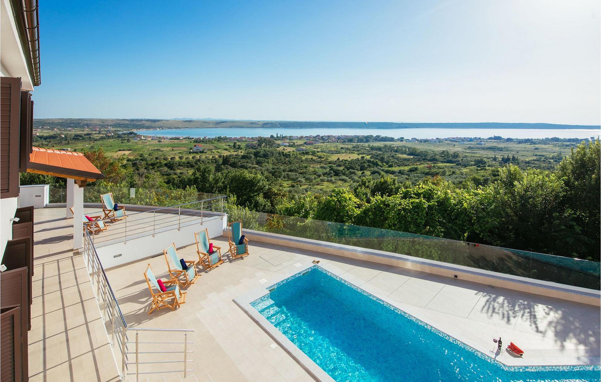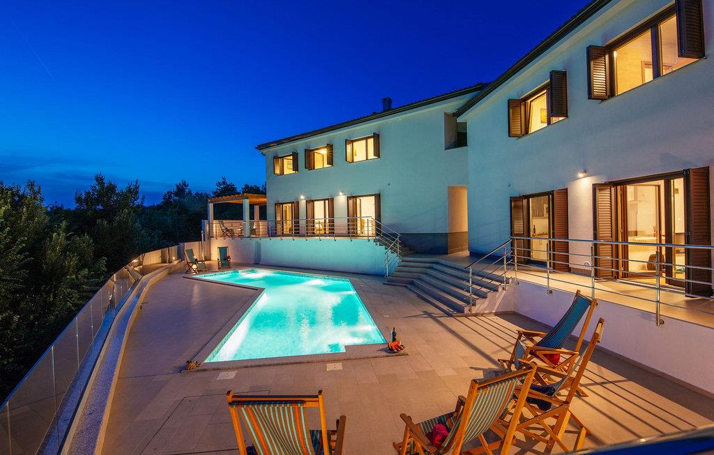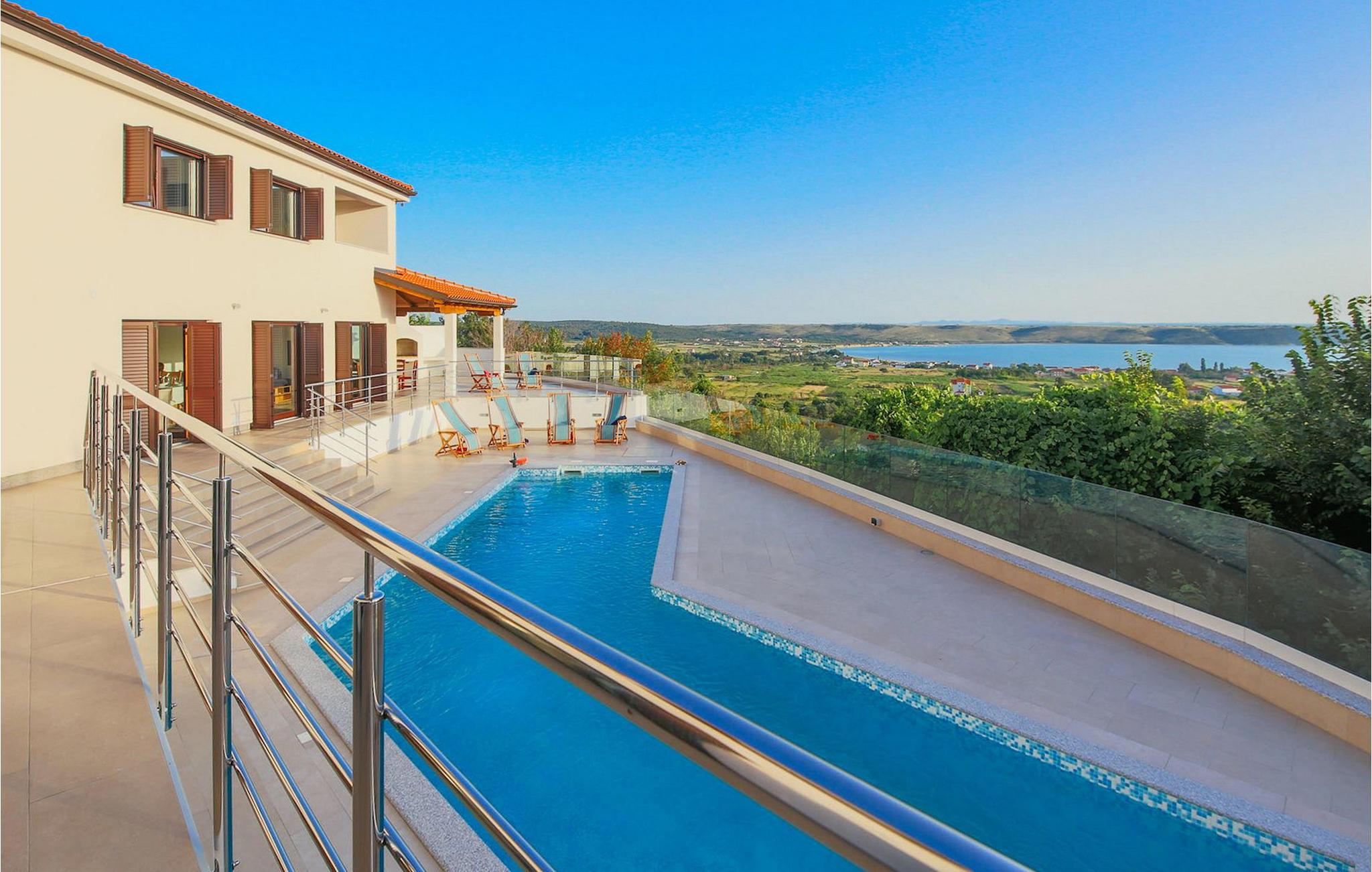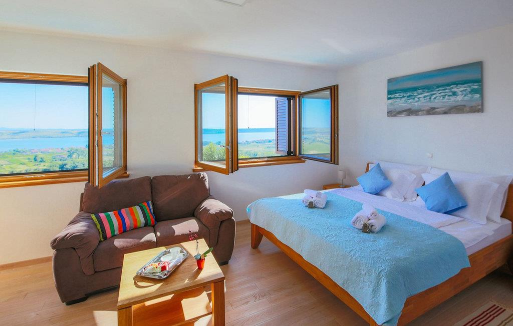 Den betagende udsigt over havet, den byder på, er den første ting, der vil fortrylle dig ved den rummelige smukke Villa Lubey, nær Zadar i Dalmatien, med dens 500m2 plads. Den ligger på en bakketop og giver et dejligt overblik over omgivelserne. Det består af 2 næsten identiske enheder (sammenkoblet på indersiden), en med 4 charmerende ensuite soveværelser og en med 2 charmerende soveværelser, hver med et køkken, spiseplads og stue - fordelt på to niveauer.