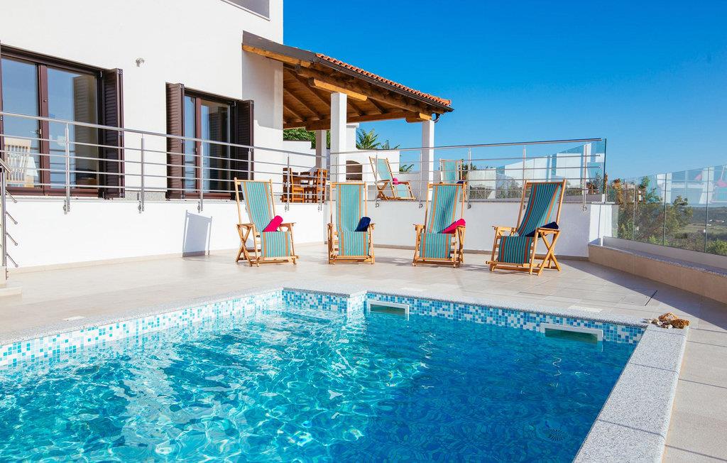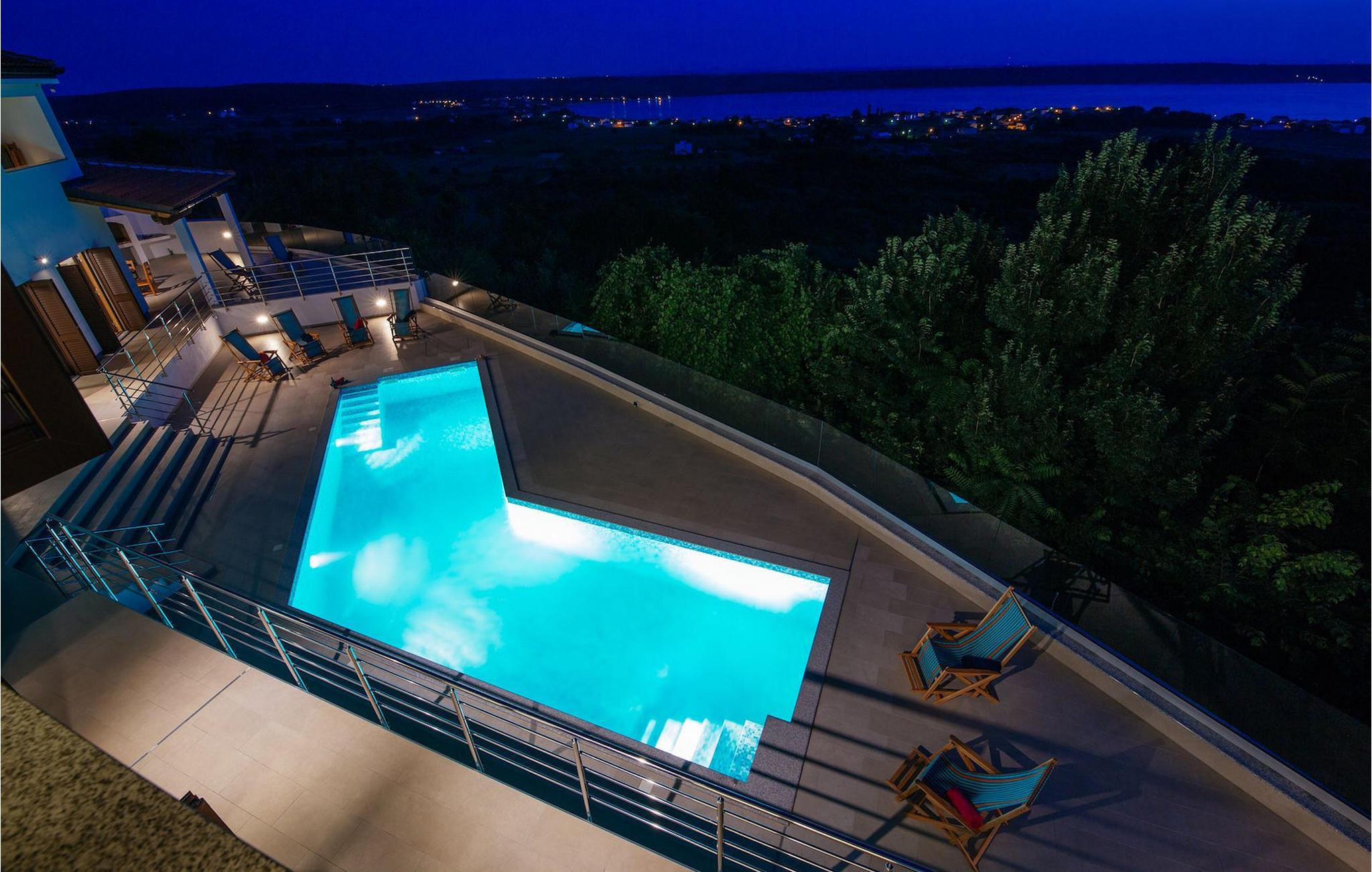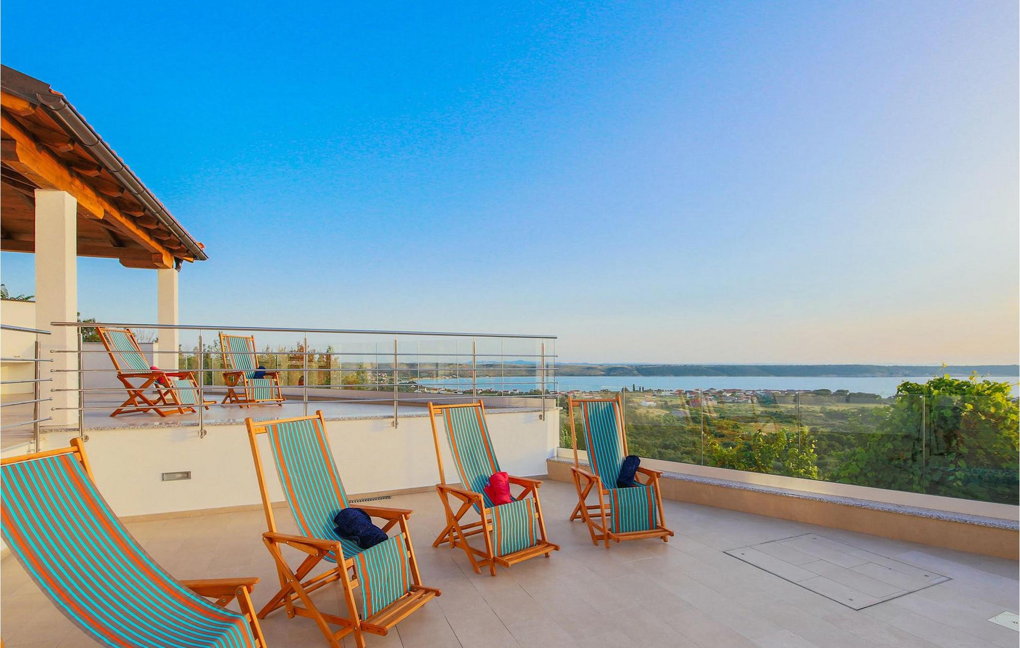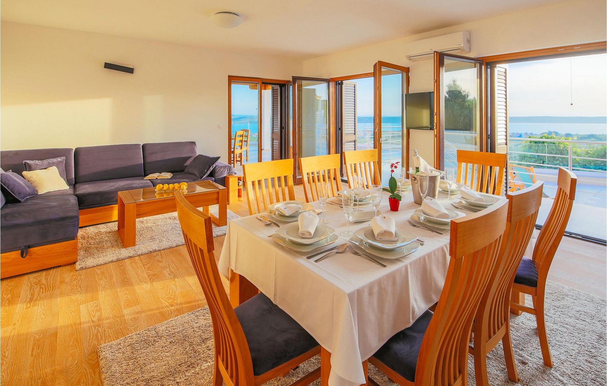Den betagende udsigt over havet, den byder på, er den første ting, der vil fortrylle dig ved den rummelige smukke Villa Lubey, nær Zadar i Dalmatien, med dens 500m2 plads. Den ligger på en bakketop og giver et dejligt overblik over omgivelserne. Det består af 2 næsten identiske enheder (sammenkoblet på indersiden), en med 4 charmerende ensuite soveværelser og en med 2 charmerende soveværelser, hver med et køkken, spiseplads og stue - fordelt på to niveauer.
