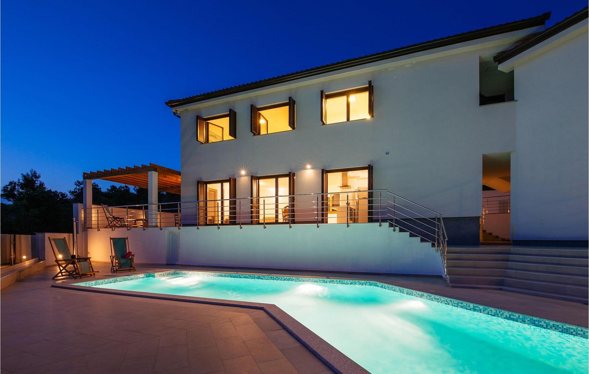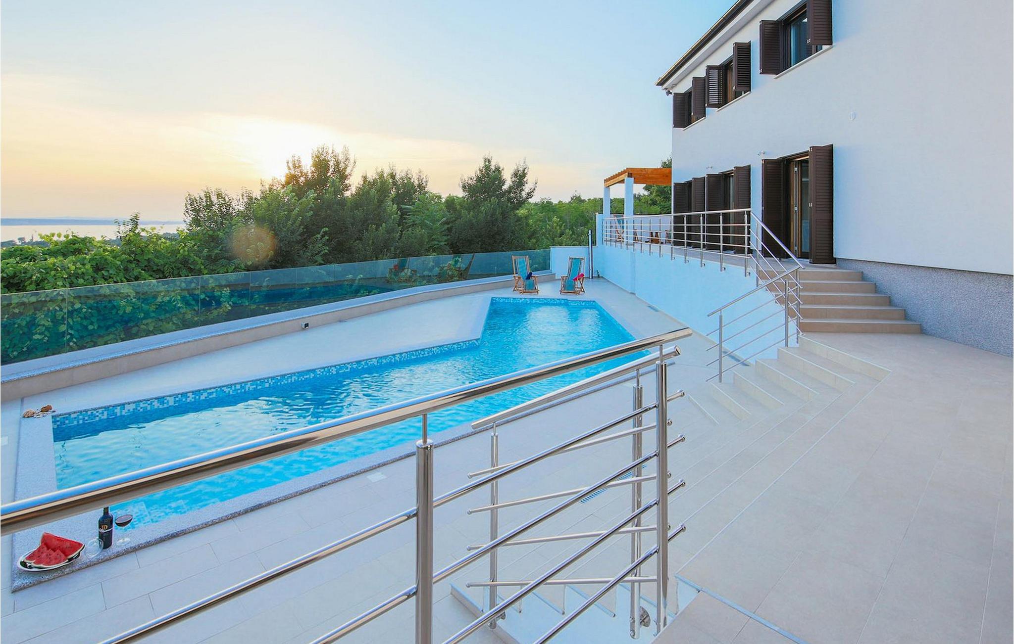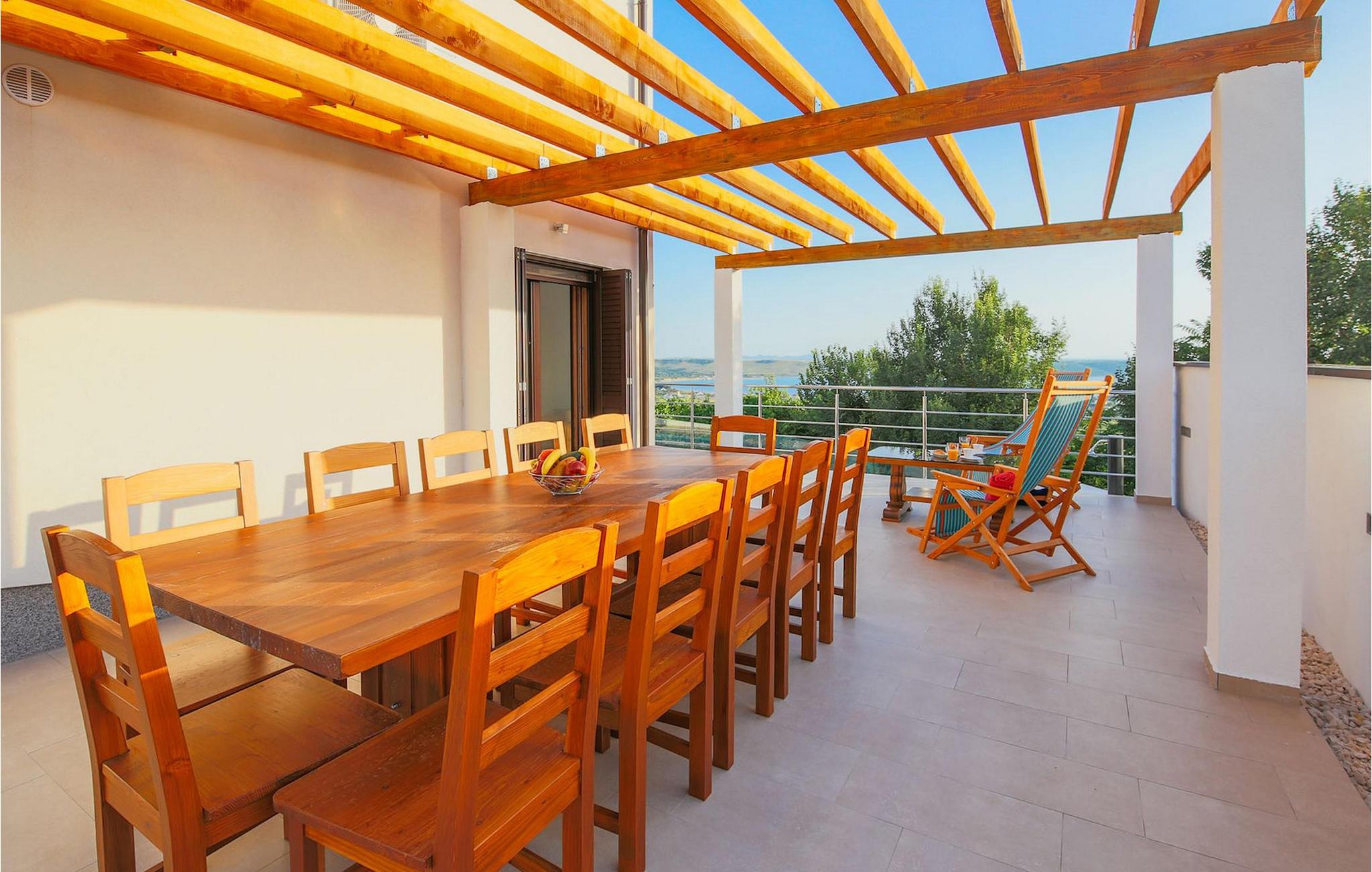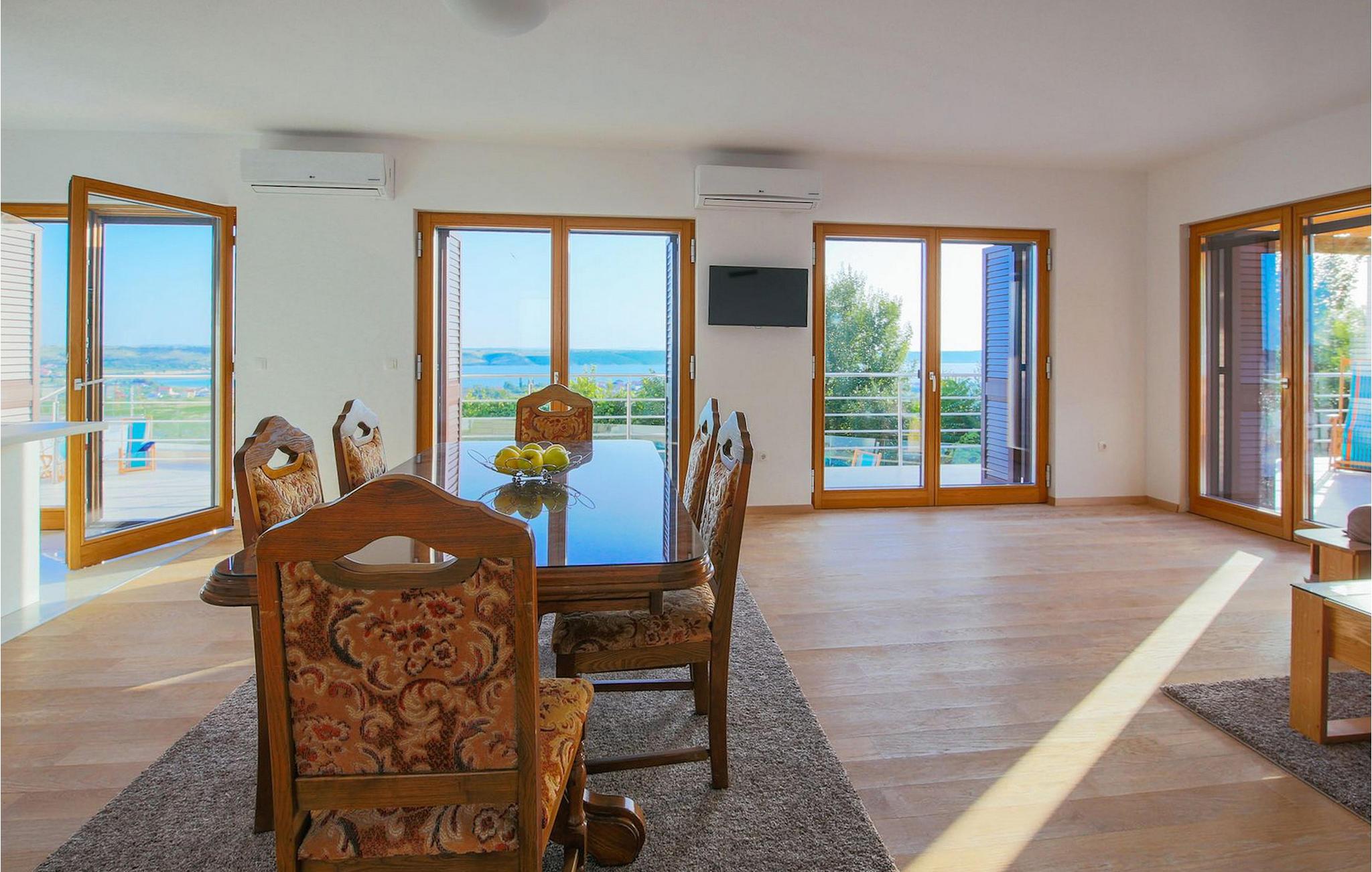 Den betagende udsigt over havet, den byder på, er den første ting, der vil fortrylle dig ved den rummelige smukke Villa Lubey, nær Zadar i Dalmatien, med dens 500m2 plads. Den ligger på en bakketop og giver et dejligt overblik over omgivelserne. Det består af 2 næsten identiske enheder (sammenkoblet på indersiden), en med 4 charmerende ensuite soveværelser og en med 2 charmerende soveværelser, hver med et køkken, spiseplads og stue - fordelt på to niveauer.