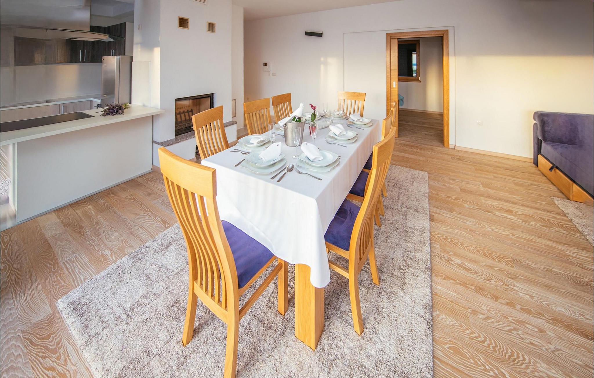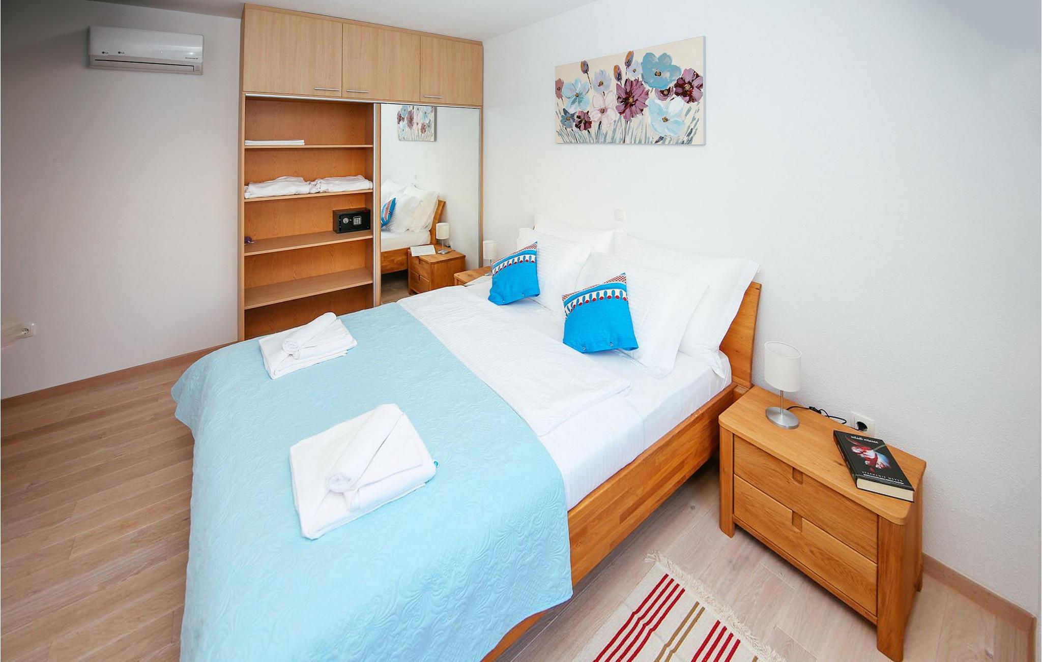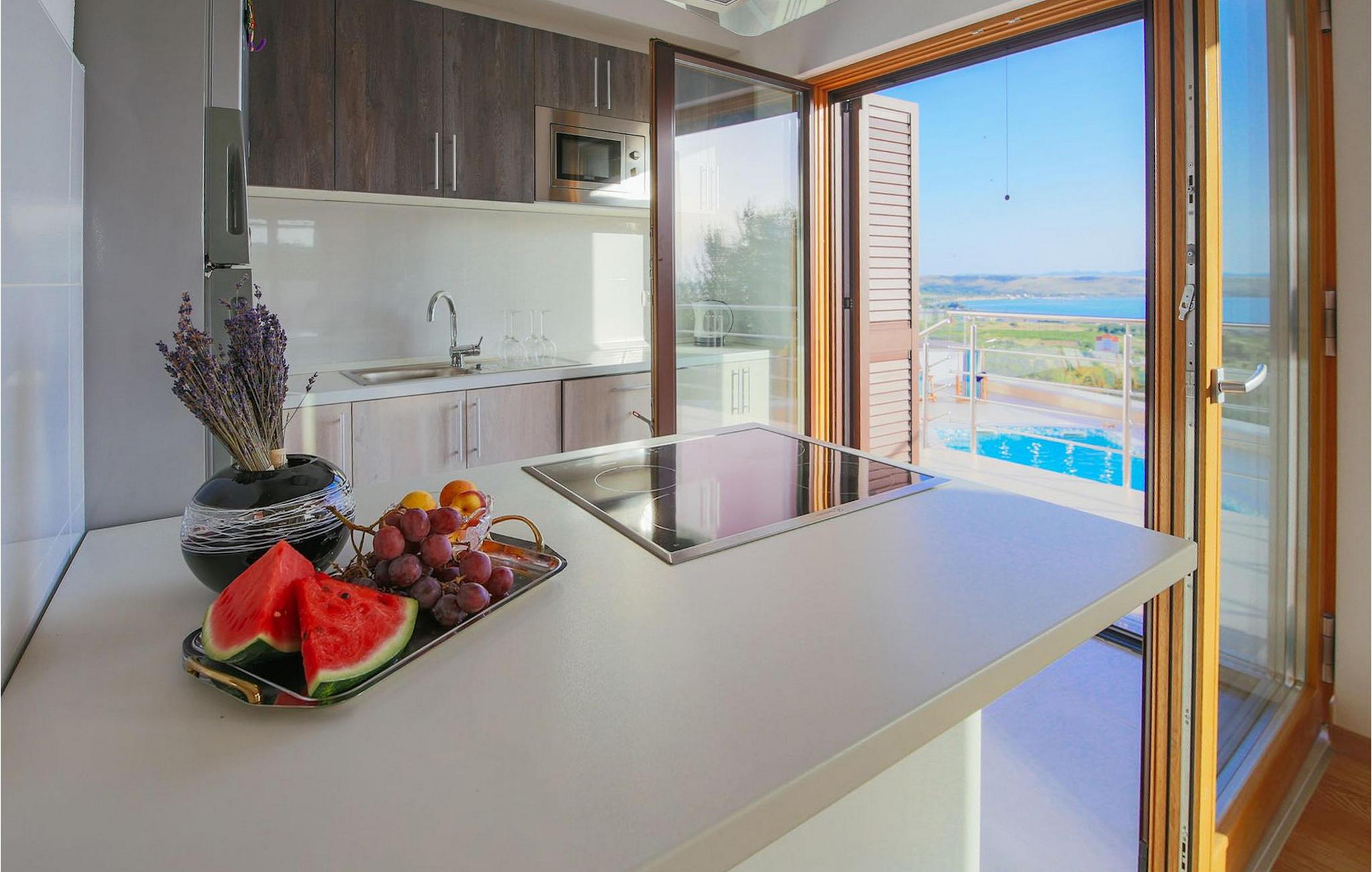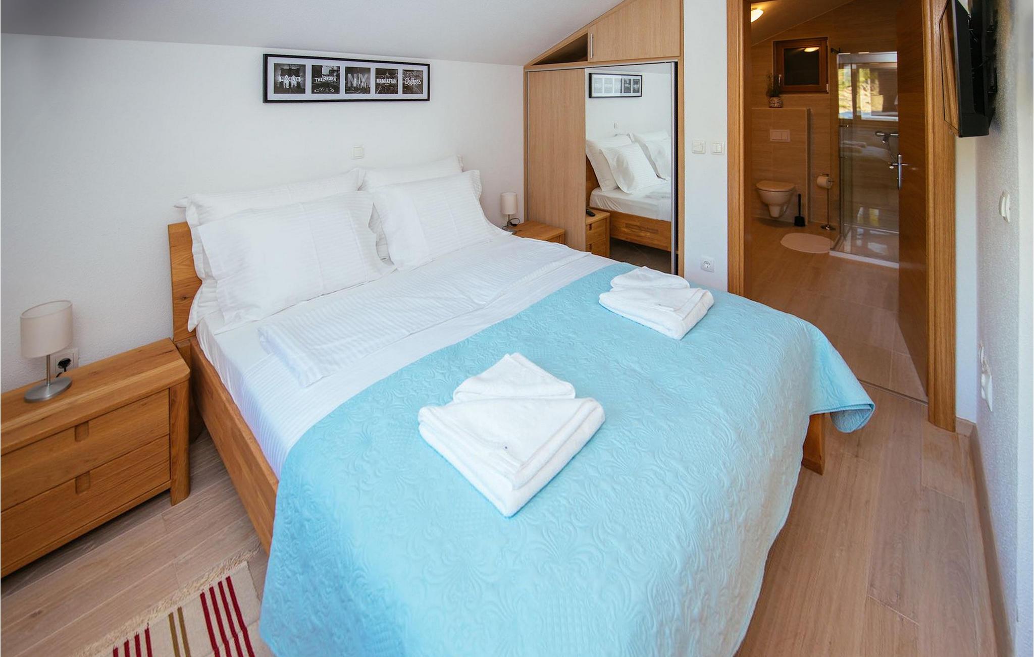 Den betagende udsigt over havet, den byder på, er den første ting, der vil fortrylle dig ved den rummelige smukke Villa Lubey, nær Zadar i Dalmatien, med dens 500m2 plads. Den ligger på en bakketop og giver et dejligt overblik over omgivelserne. Det består af 2 næsten identiske enheder (sammenkoblet på indersiden), en med 4 charmerende ensuite soveværelser og en med 2 charmerende soveværelser, hver med et køkken, spiseplads og stue - fordelt på to niveauer.