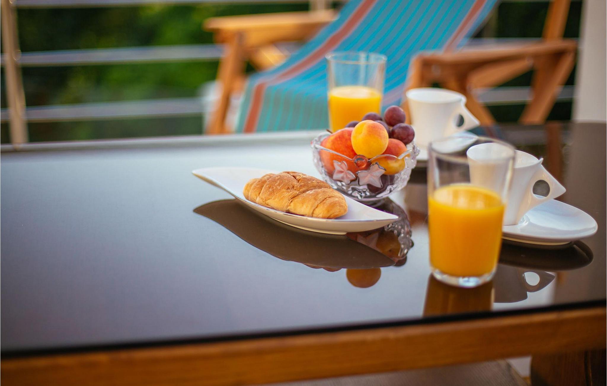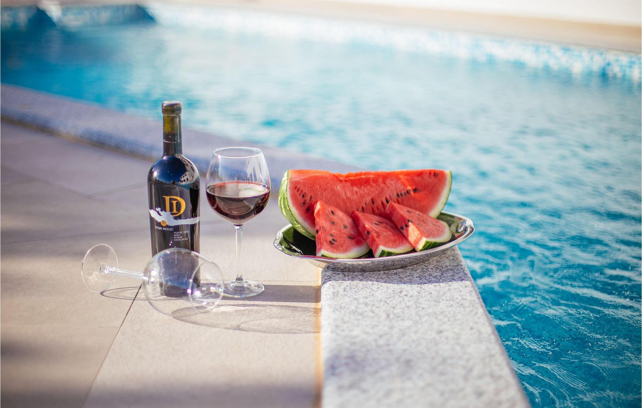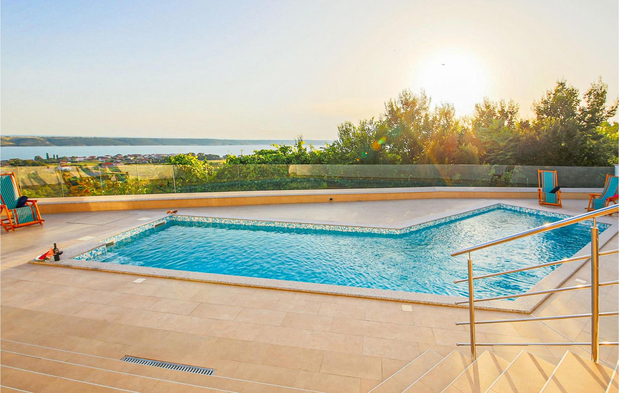 Mens du bruger din tid ved siden af poolen eller svømmer i den, kan du se solnedgangen gå ned på havet.