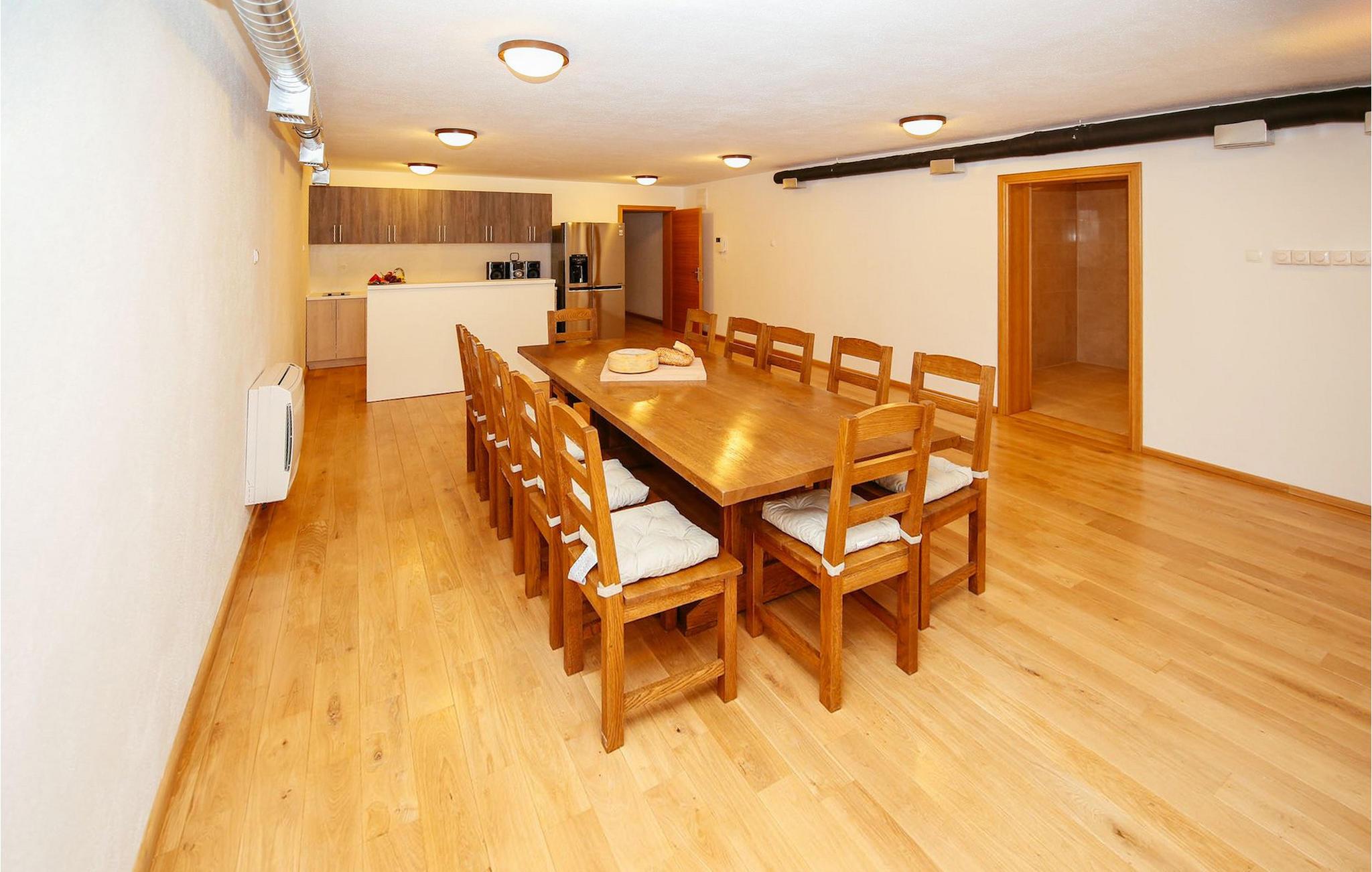 Derudover er der et underjordisk niveau med et tekøkken, stor plads til middage eller festligheder og et ekstra badeværelse.