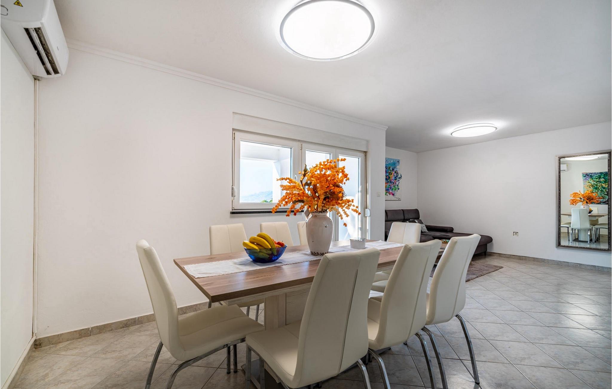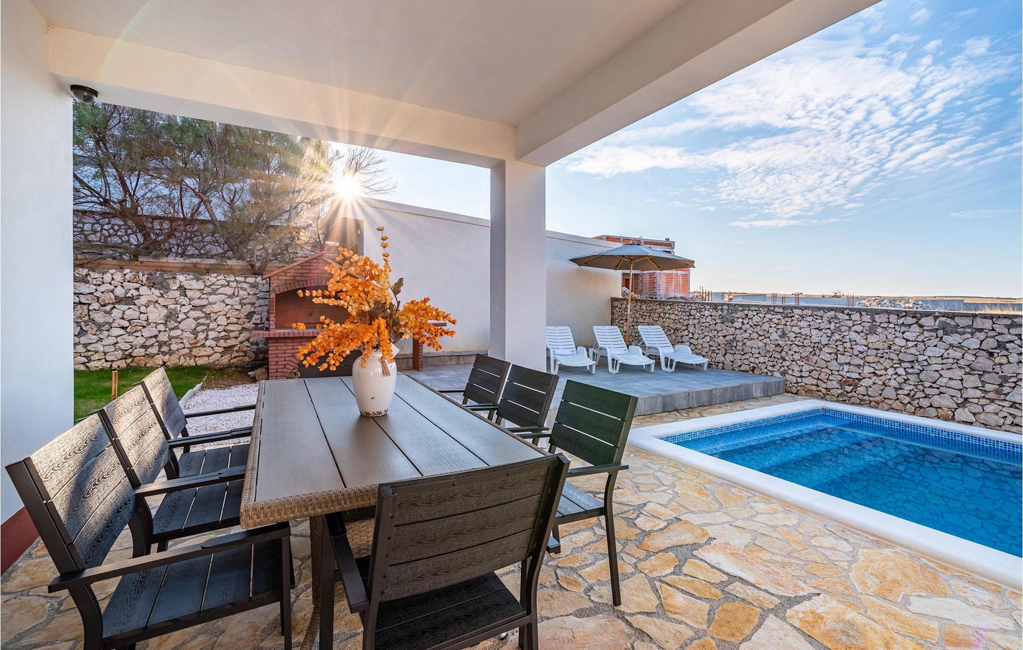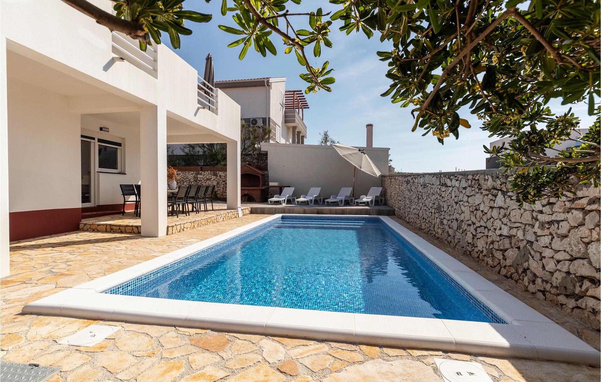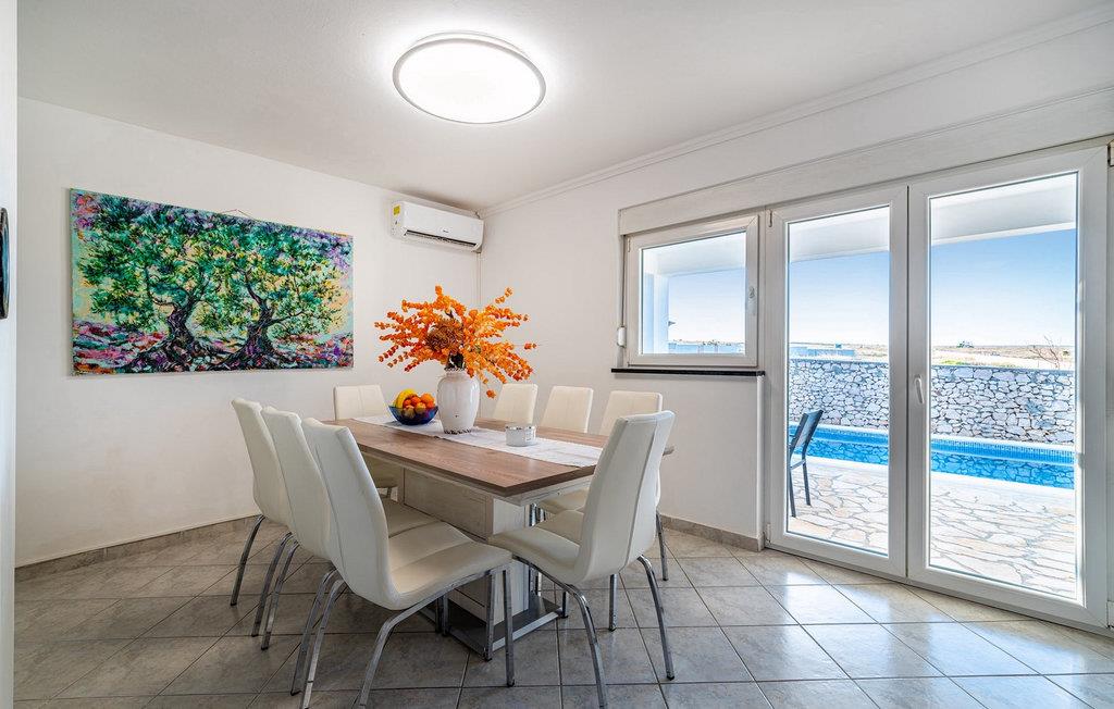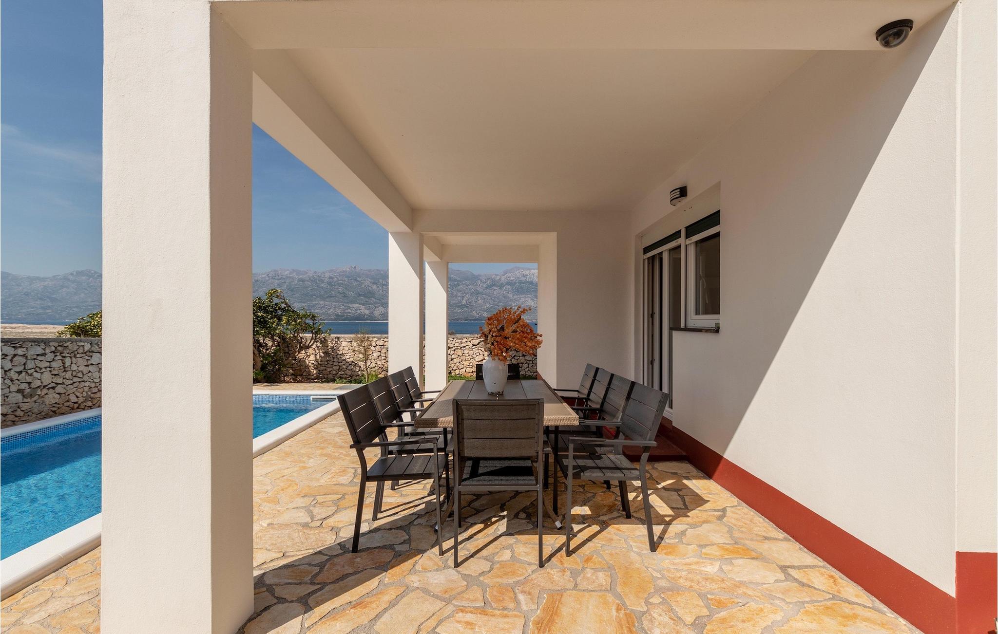 Die Villa Opera ist die ideale Wahl wenn Sie sich nach einem erholsamen Urlaub mit Ihren Liebsten sehnen. Sie befindet sich in hervorragender ruhigen Lage nur 100 m vom Meer im Ort Razanac. Sie kann bis zu 10 Personen beherbergen und eignet sich somit ideal für Familien oder Gruppen von Freunden. Der Außenbereich der Villa bietet einen privaten Poolbereich. Ebenso steht Ihnen ein Grill zur Verfügung um leckere Gerichte vorzubereiten um diese dann anschließend am überdachten Essbereich im Freien zu genießen. Die Kinder können sich auf einen kleinen Kinderspielplatz freuen. Im Erdgeschoss befindet sich ein offener Wohn-, Ess-, und Kochbereich mit Zugang zur Terrasse. Ebenso befindet sich auf dieser Etage ein Schlafzimmer sowie ein Badezimmer. Auf der ersten Etage befinden sich drei weitere Schlafzimmer mit Zugang zu den zwei großen Balkonen. Dies ist der perfekte Ort um den fantastischen Meerblick zu genießen. Buchen Sie die Villa Opera und verbringen Sie einen traumhaften Urlaub in Kroatien!Die Villa Opera befindet sich im kleinen idyllischen Ort Razanac in Dalmatien. Der Ort ist ein beliebtes Reiseziel da er neben schönen Stränden auch eine pittoreske Landschaft des Velebit-Gebirge bietet. Razanac bietet eine Vielzahl an Ausflugsmöglichkeiten. Eine kurze Autofahrt befindet sich die bekannte Stadt Zadar. Die antike Stadt ist reich an historische Kulturerbe und ist eine perfekte Kombination von touristischen Attraktionen und erholsamen Urlaub. Vergessen Sie nicht das Stadtsymbol - die Meeresorgel zu besichtigen und den harmonischen Klängen zuzuhören. In der Nähe befinden sich auch einige der schönsten Nationalparks Kroatiens. Wir empfehlen den besonderen Plitvicer Nationalpark zu besichtigen. Die traumhafte Landschaft aus unzähligen Seen, Wasserfällen und Wälder sind einen Besuch wert.