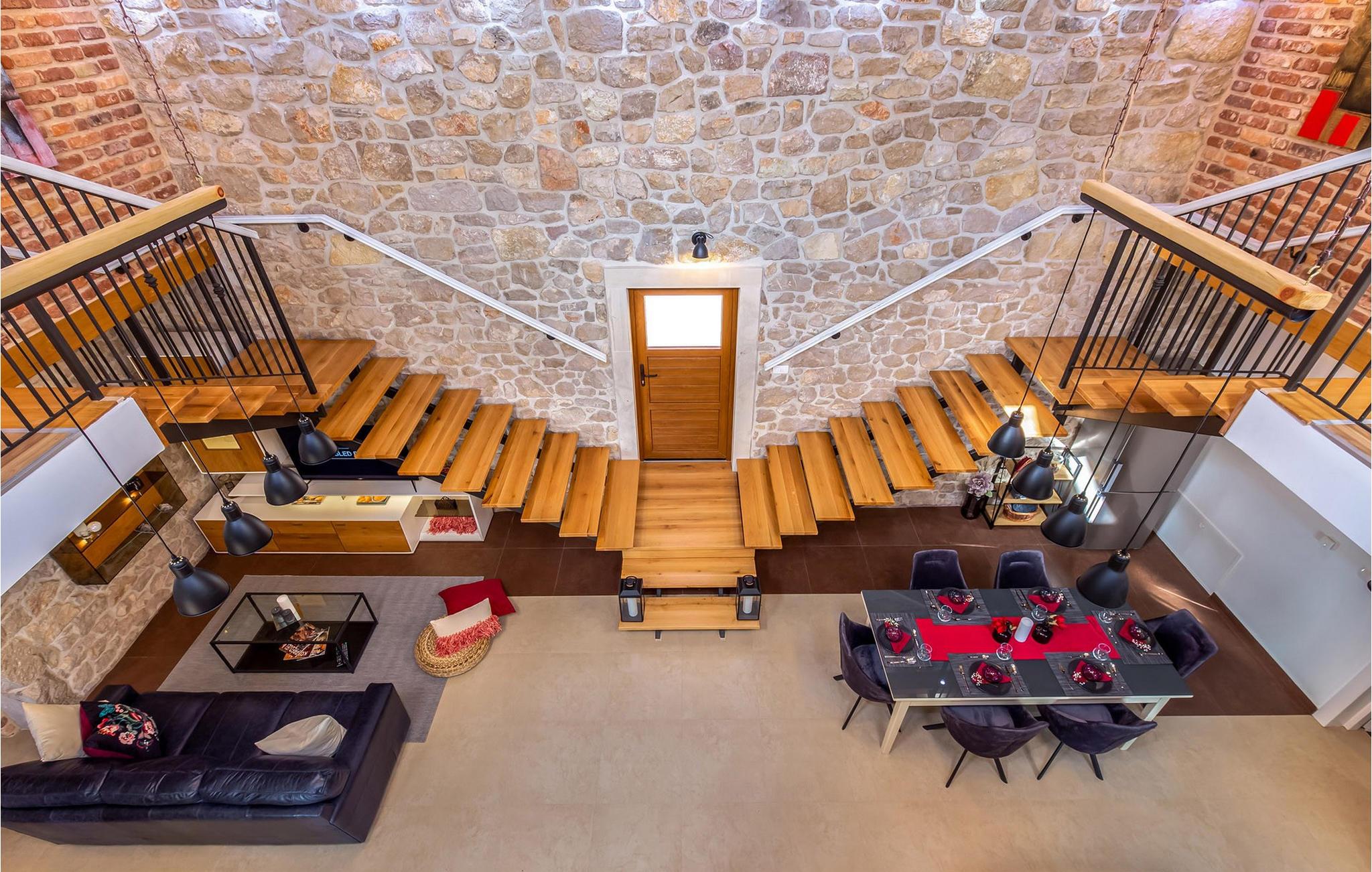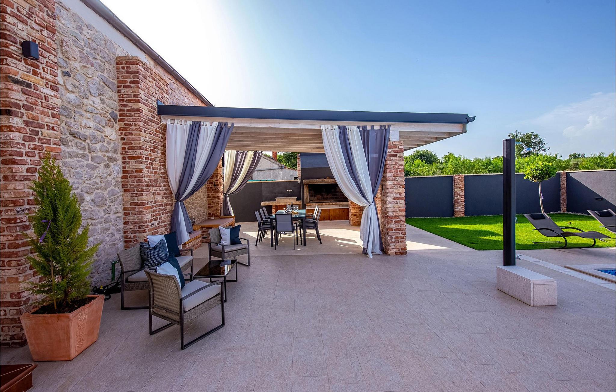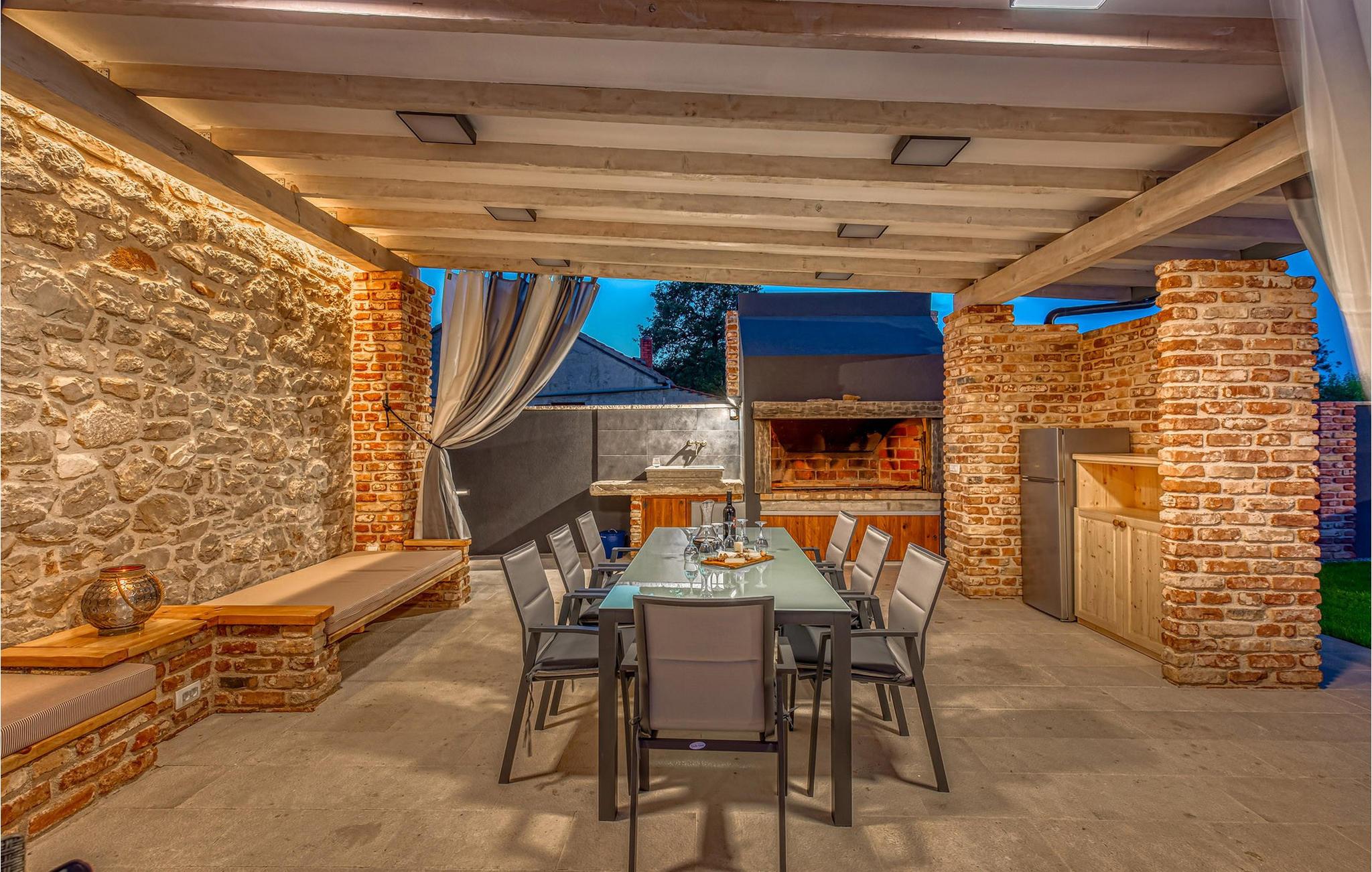 Forkæl jer selv med en pause i dette traditionelle og meget komfortable stenhus med pool og tennisbane. Villa Ambar i Škabrnja er en sand perle for dem, der søger privatliv og en særlig atmosfære. Denne charmerende stenvilla kombinerer rustik stil med moderne elegance. De rummelige, luftige soveværelser og to separate køkkener med spisepladser giver plads til fælles måltider eller individuelle retræter. Stuen udstråler hygge, mens interiøret er noget særligt med en harmonisk blanding af træ, sten og stilfulde detaljer. Udenfor venter en opvarmet og afkølet pool med vandfald, omgivet af liggestole, på jer. Dase i solen eller køl jer ned i vandet. Sportsentusiaster kan se frem til bordtennis- eller tenniskampe på den private bane. Den store terrasse med kulgrill og den rummelige have lægger op til at tilbringe afslappende timer udendørs og fordybe jer i det regionale køkken. Škabrnja er et idyllisk sted, der vil overbevise jer med sin rolige beliggenhed og gæstfri atmosfære. Udforsk den omkringliggende natur og landsbyen, før I tager en dagstur til det nærliggende Zadar. Denne historiske by har som noget særligt seværdigheder, smukke strande og et livligt sommerprogram. Uanset om det er koncerter, kulinariske oplevelser eller det berømte Havorgel – hvert øjeblik her er et højdepunkt. Bemærk venligst: Ejendommen accepterer ikke ungdomsgrupper under 30 år eller polterabender. Bookinger fra sådanne grupper vil blive afvist, selv ved ankomst eller under opholdet, uden refusion.
