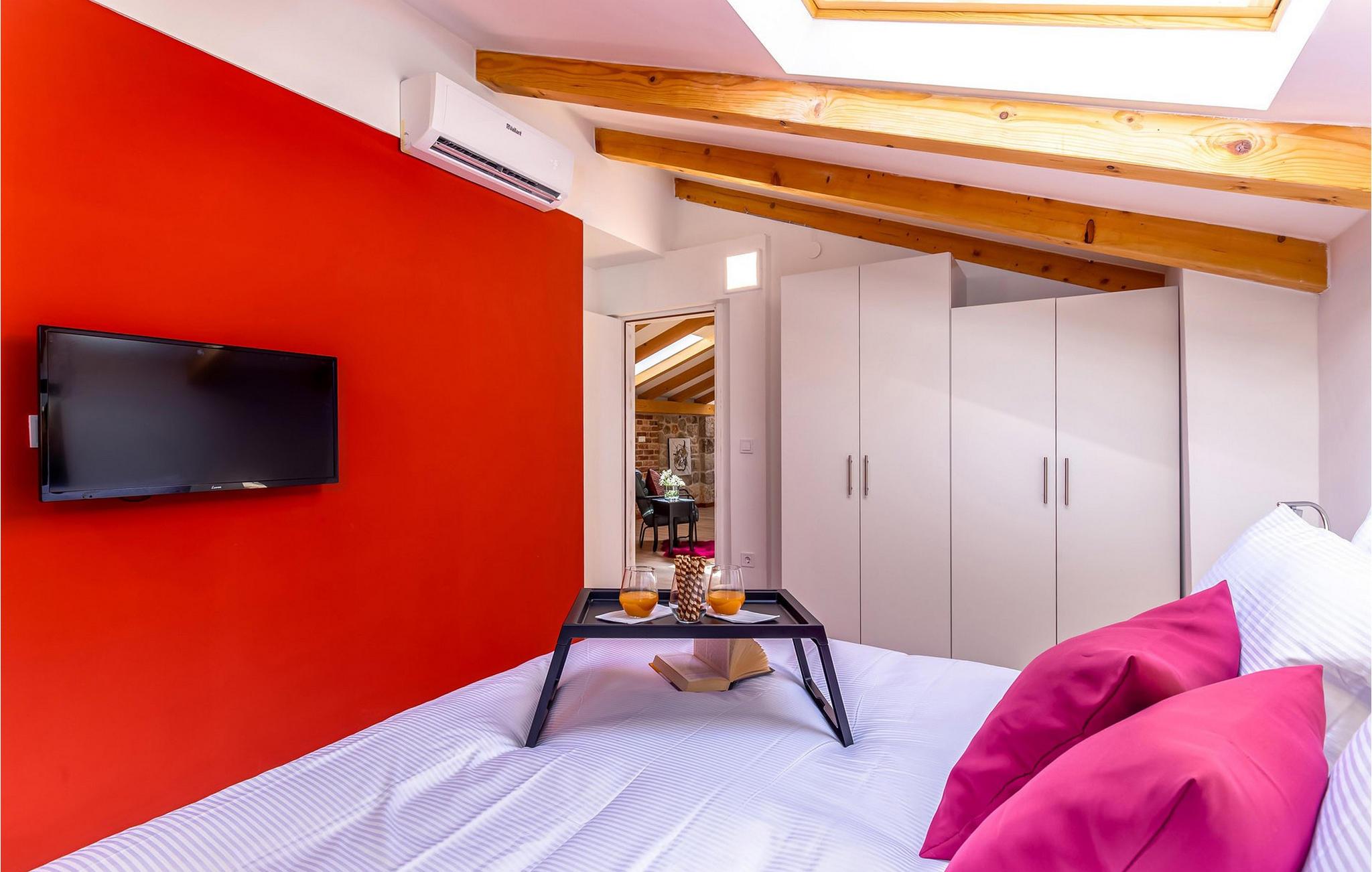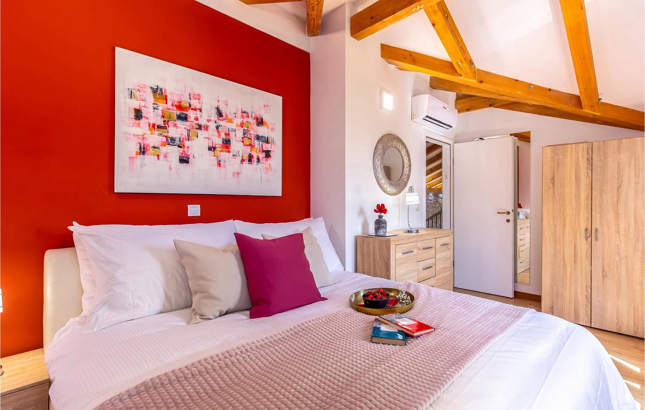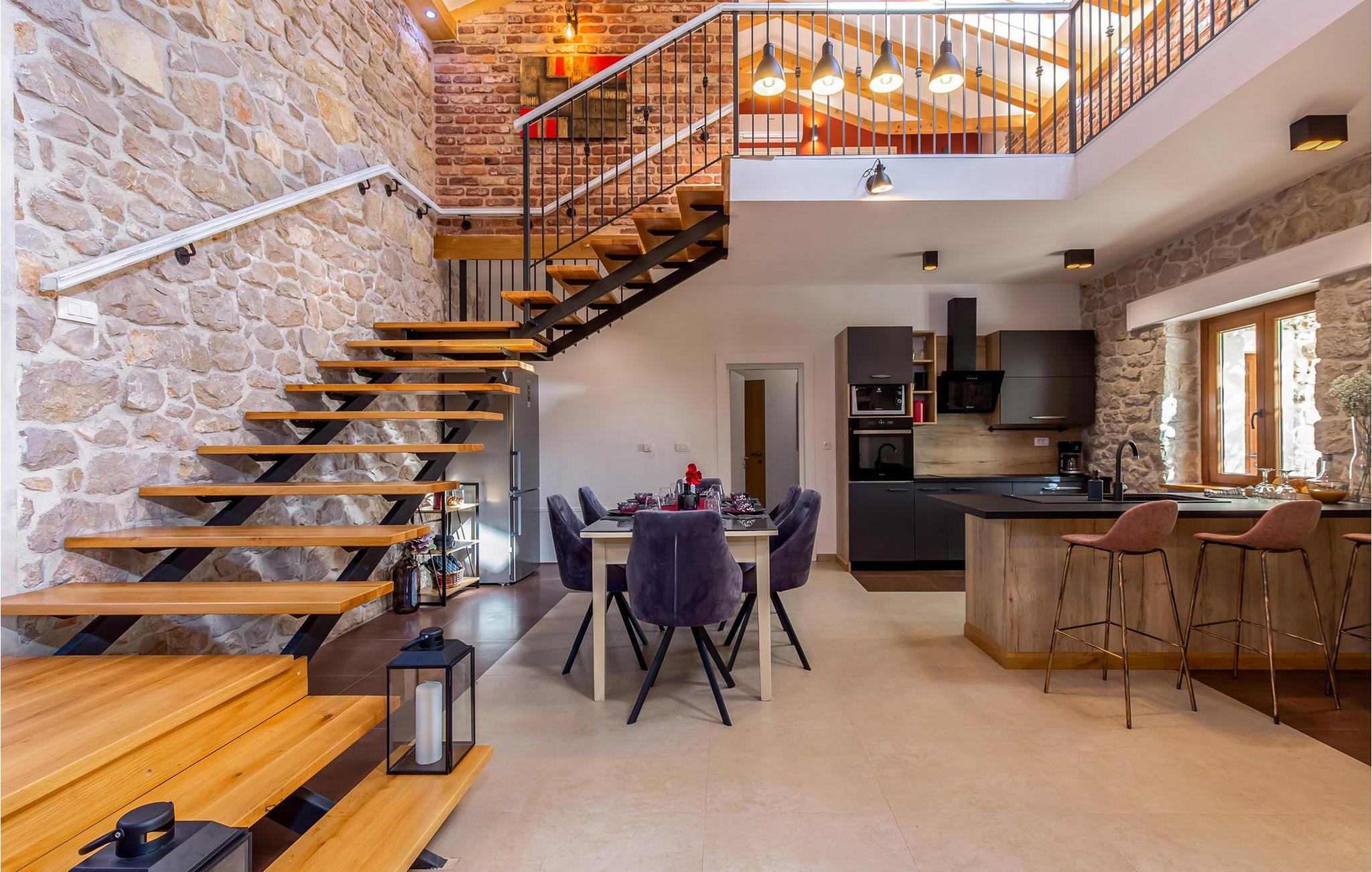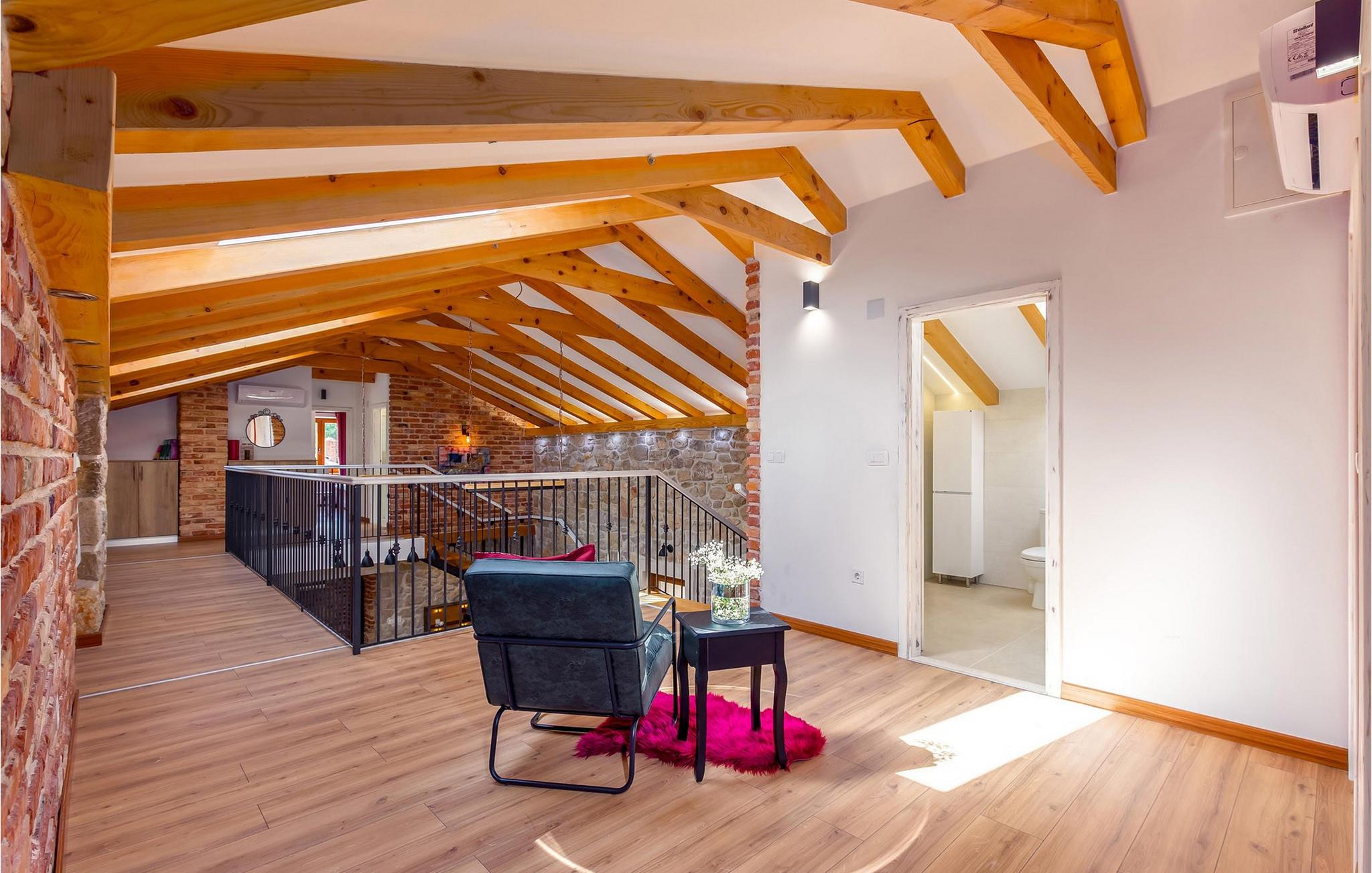 Forkæl jer selv med en pause i dette traditionelle og meget komfortable stenhus med pool og tennisbane. Villa Ambar i Škabrnja er en sand perle for dem, der søger privatliv og en særlig atmosfære. Denne charmerende stenvilla kombinerer rustik stil med moderne elegance. De rummelige, luftige soveværelser og to separate køkkener med spisepladser giver plads til fælles måltider eller individuelle retræter. Stuen udstråler hygge, mens interiøret er noget særligt med en harmonisk blanding af træ, sten og stilfulde detaljer. Udenfor venter en opvarmet og afkølet pool med vandfald, omgivet af liggestole, på jer. Dase i solen eller køl jer ned i vandet. Sportsentusiaster kan se frem til bordtennis- eller tenniskampe på den private bane. Den store terrasse med kulgrill og den rummelige have lægger op til at tilbringe afslappende timer udendørs og fordybe jer i det regionale køkken. Škabrnja er et idyllisk sted, der vil overbevise jer med sin rolige beliggenhed og gæstfri atmosfære. Udforsk den omkringliggende natur og landsbyen, før I tager en dagstur til det nærliggende Zadar. Denne historiske by har som noget særligt seværdigheder, smukke strande og et livligt sommerprogram. Uanset om det er koncerter, kulinariske oplevelser eller det berømte Havorgel – hvert øjeblik her er et højdepunkt. Bemærk venligst: Ejendommen accepterer ikke ungdomsgrupper under 30 år eller polterabender. Bookinger fra sådanne grupper vil blive afvist, selv ved ankomst eller under opholdet, uden refusion.