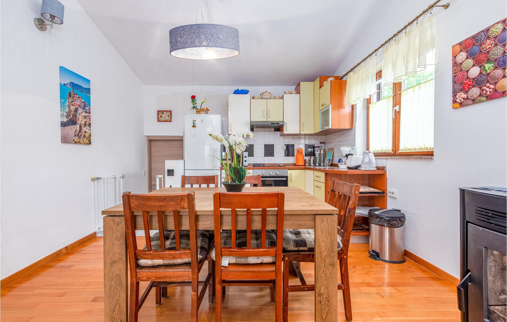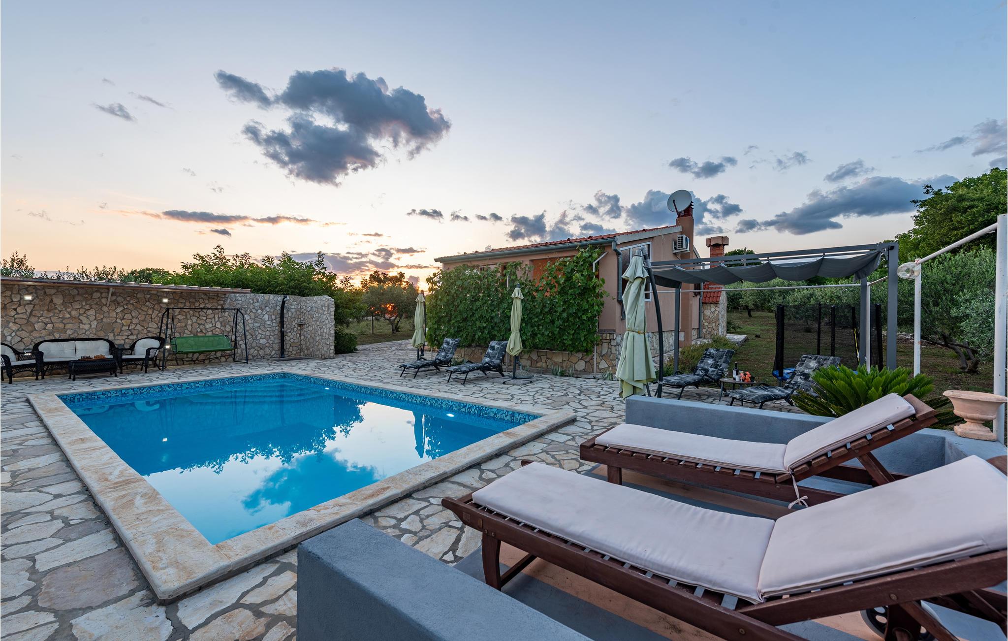 Huset består af to soveværelser, bad og køkken med dagligstue. I køkkenet er der en stor brændefyret ovn, som gør det let at tilberede lækre lokale specialiteter til hele familien. Herfra går et par trapper ned til konobaen, hvor I kan hygge jer mange timer. Den indhegnede grund giver ekstra sikkerhed for mindre børn, og hele familien vil elske at køle ned i poolen på de varmeste dage.