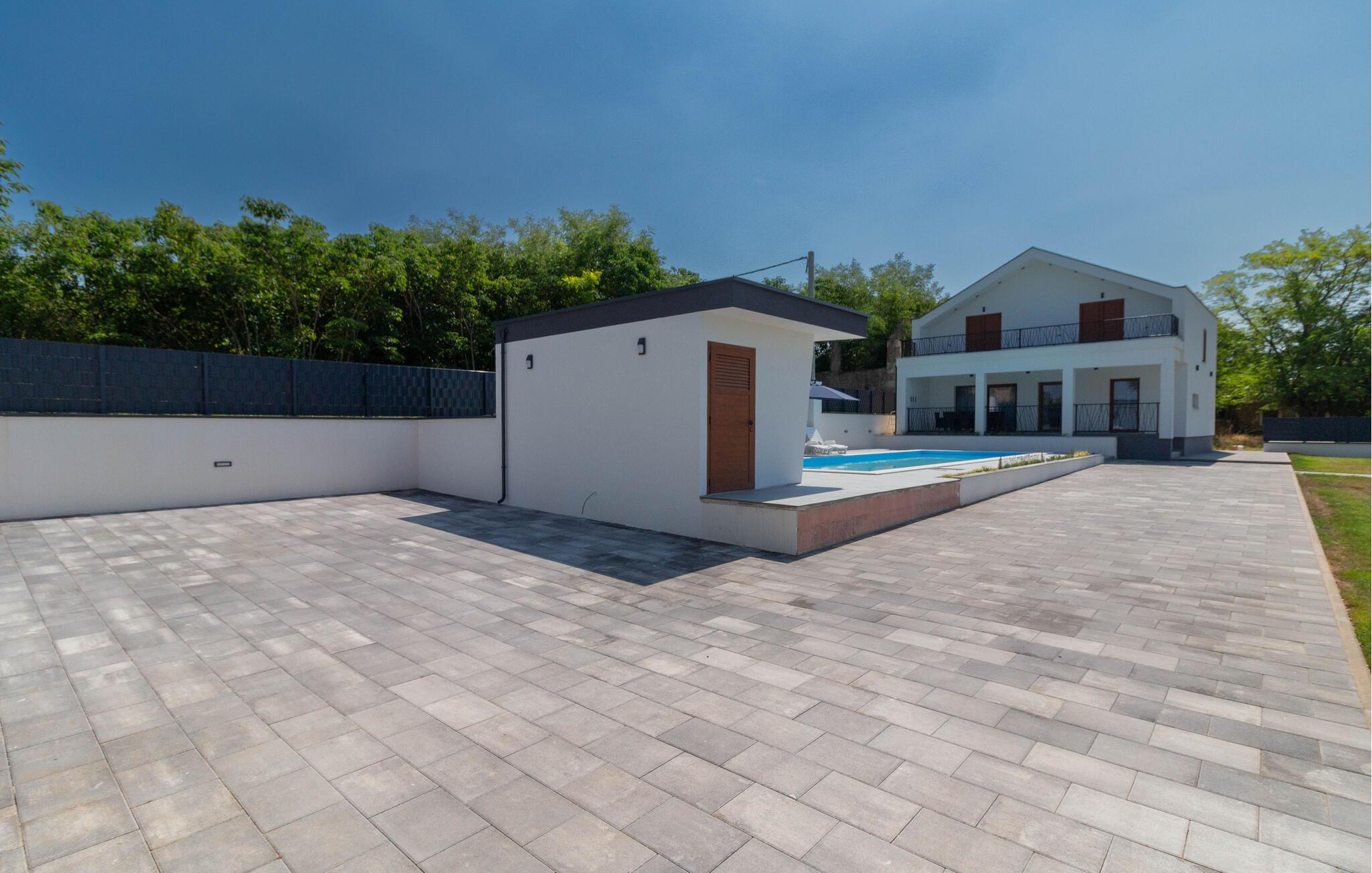 Nyd en solrig ferie i dette moderne feriehus med pool og en stor have.