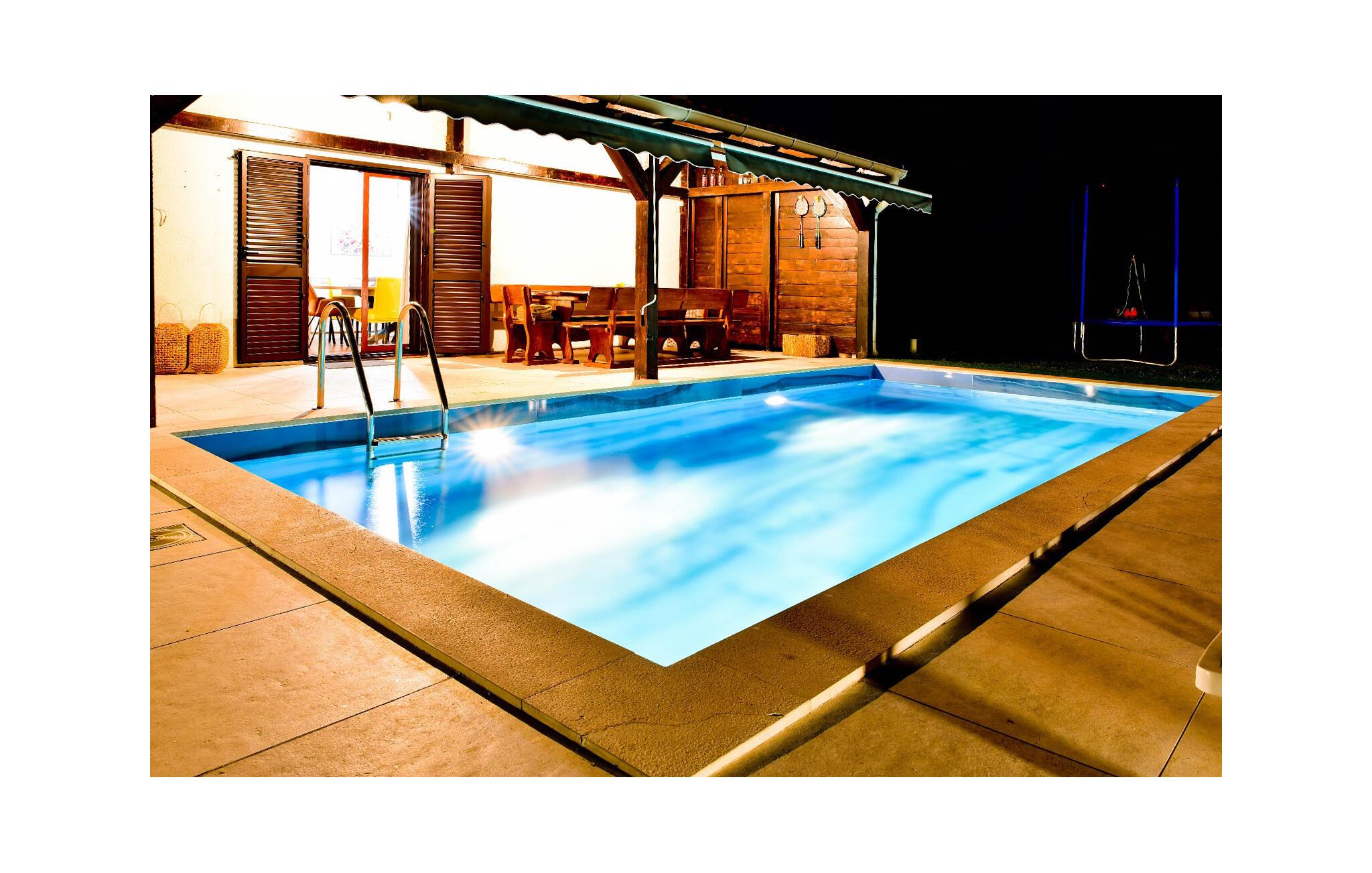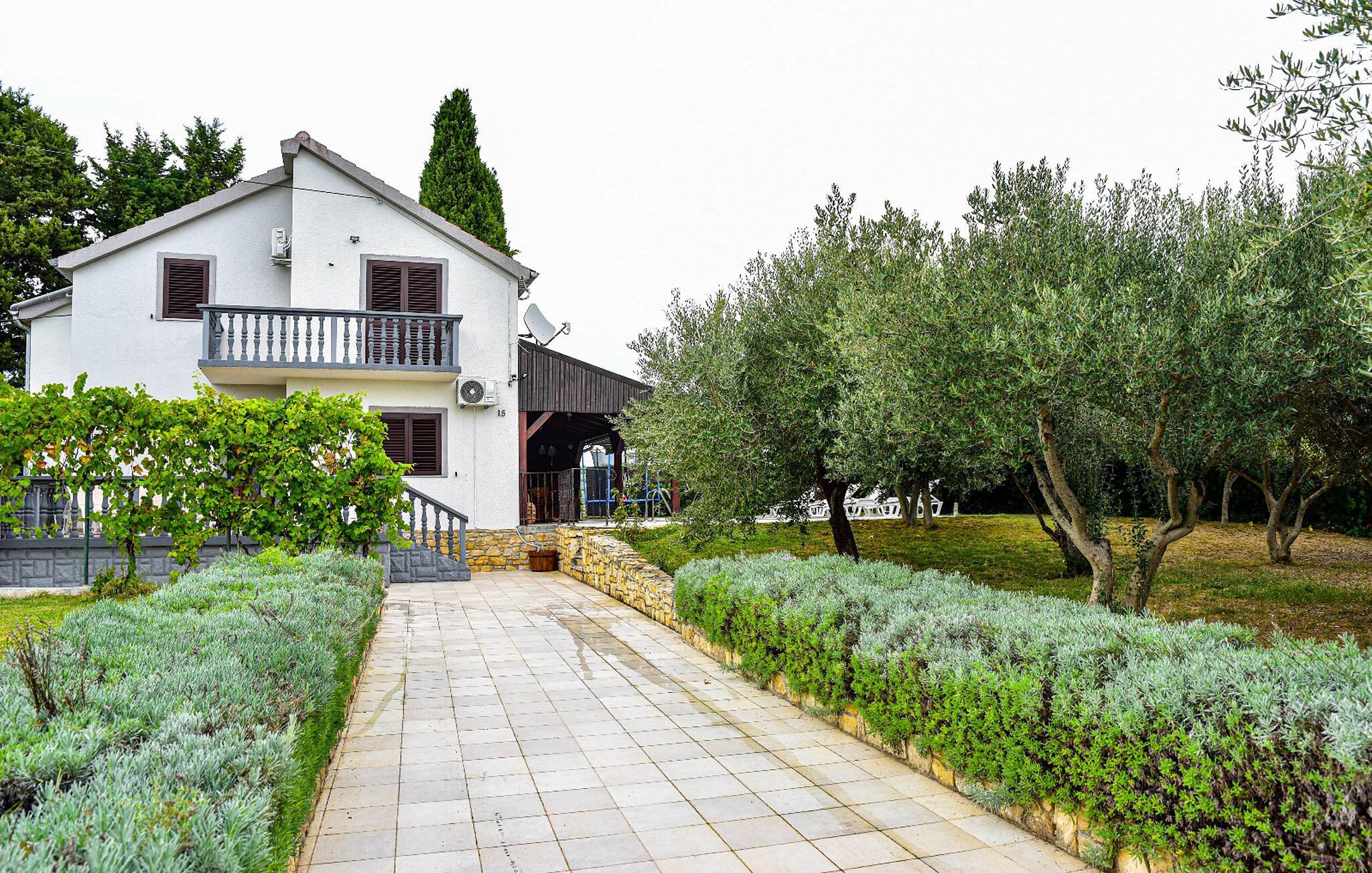 Huset består af en stue med køkken og spiseplads samt fire soveværelser og to badeværelser, der er fordelt over jorden og øverste etage. I haven finder I faciliteter til børn, såsom en gynge, rutsjebane, trampolin, legehus og sandkasse samt badmintonnet og fodboldmål for de ældre børn. Nyd en masse sjov i poolen, eller kør til havet på strandene omkring byen Zadar.
