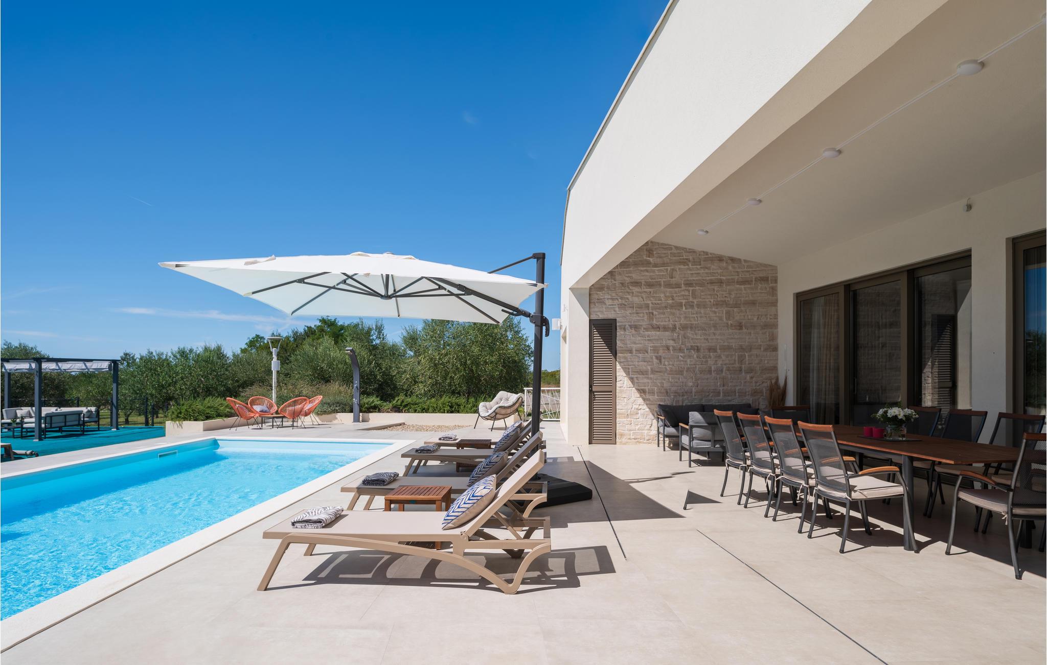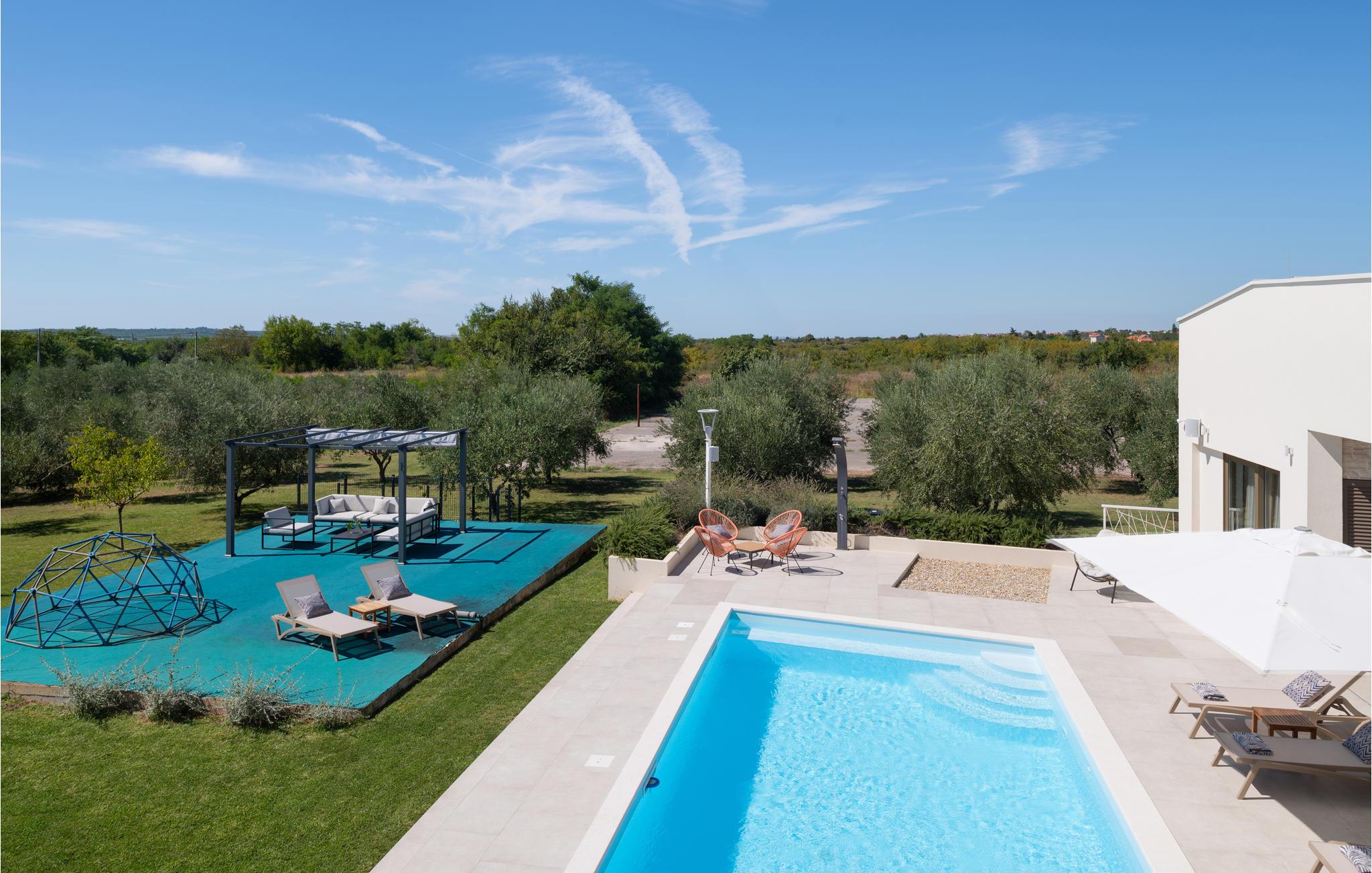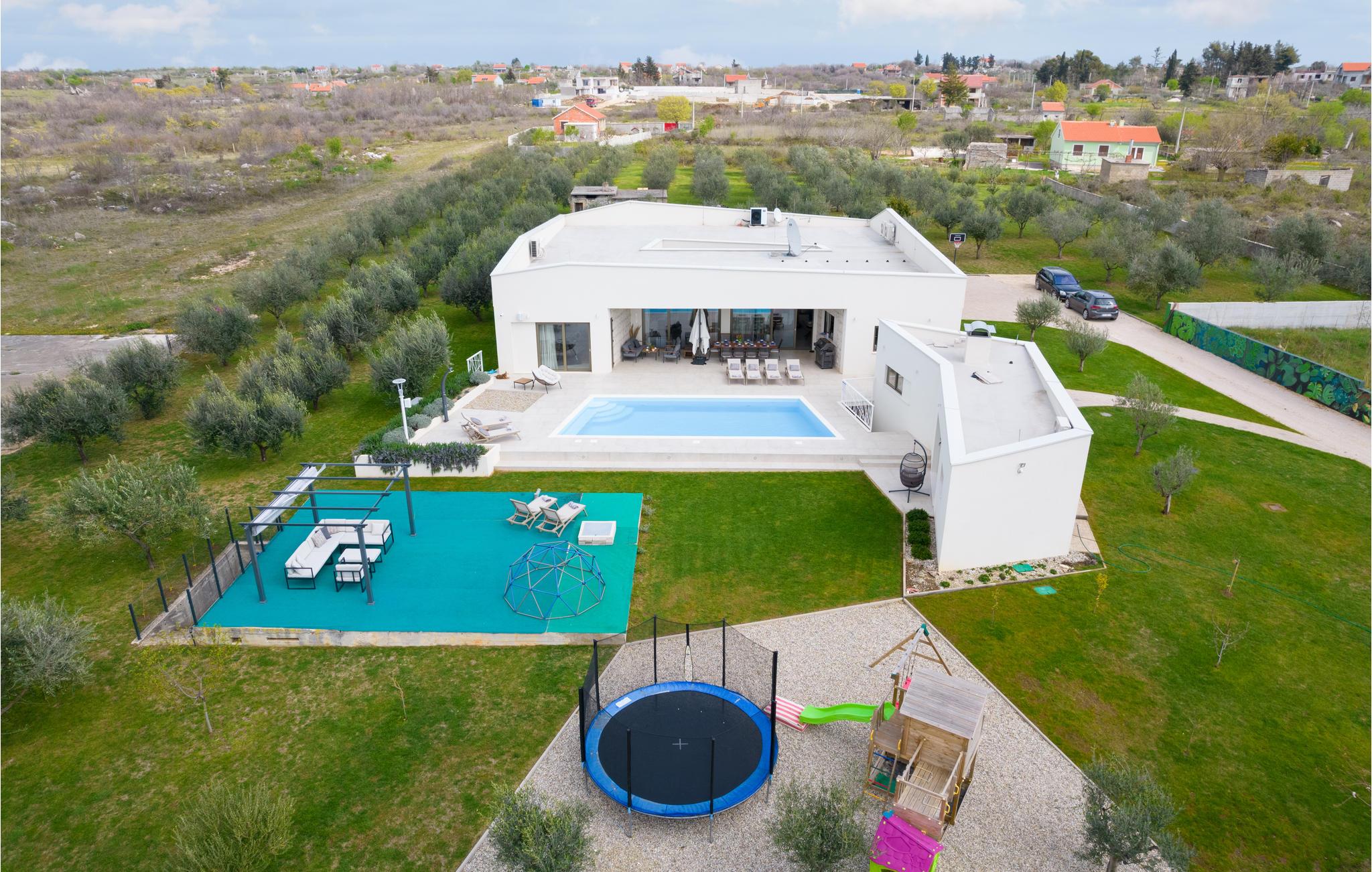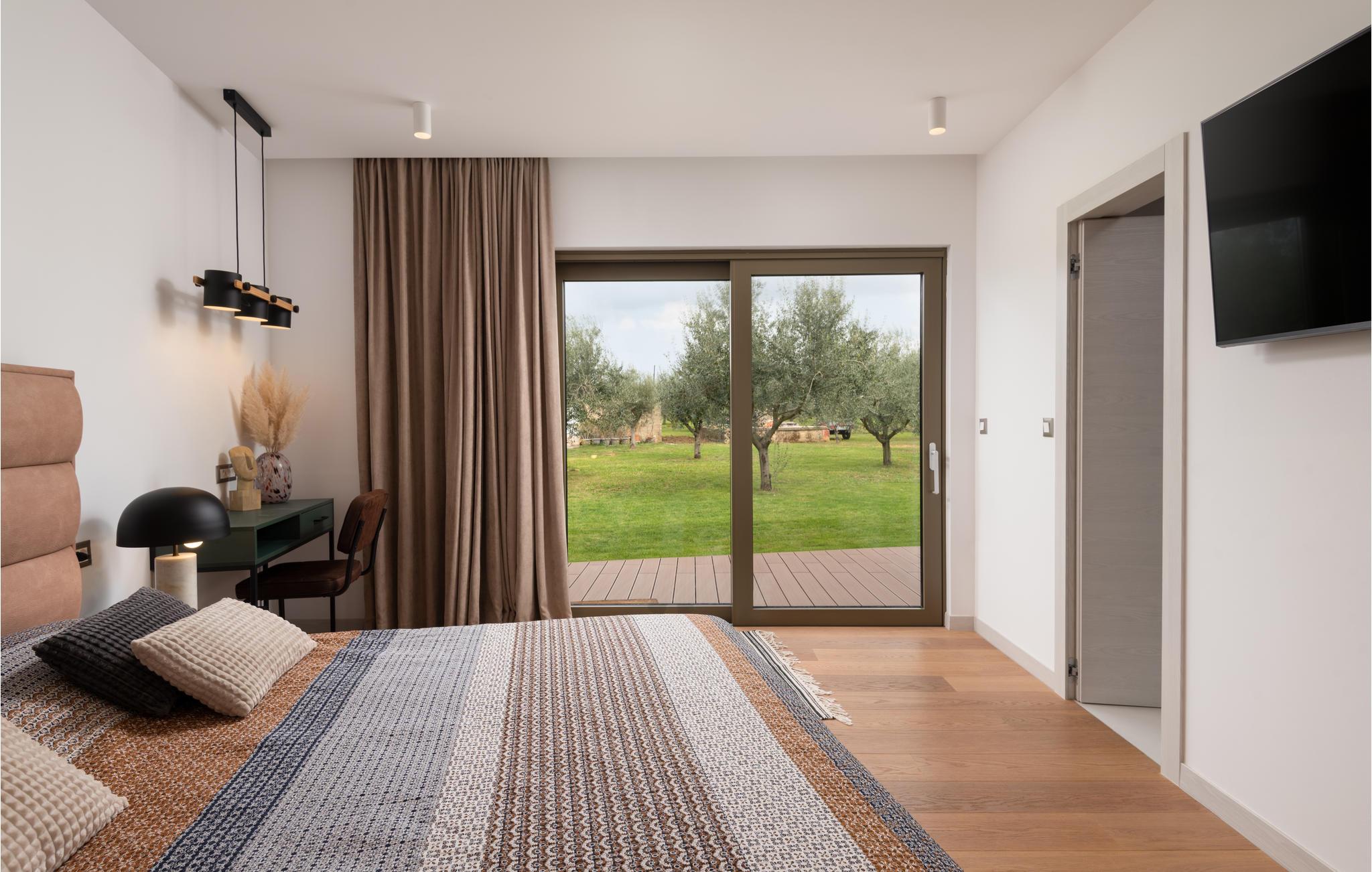 Den moderne Olive Grove Villa lægger op til en behagelig ferie med venner eller familie. Lad jer betage af det smagfuldt og luksuriøst møblerede interiør. Skab kulinariske lækkerier, nyd stilfulde måltider i den elegante opholdsstue, slå jer ned til rette til en filmaften på sofaen eller hav det sjovt med at spille PlayStation.