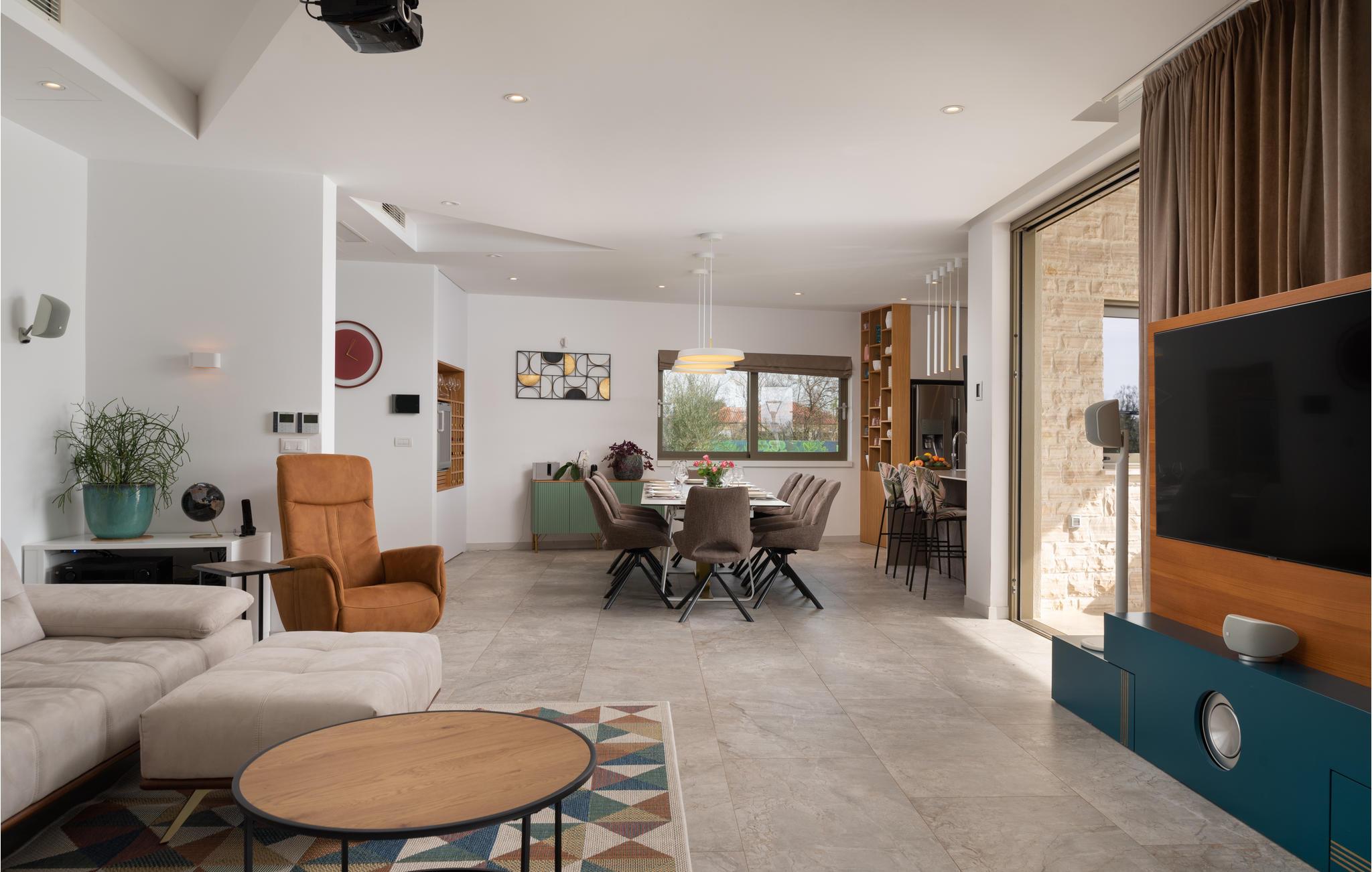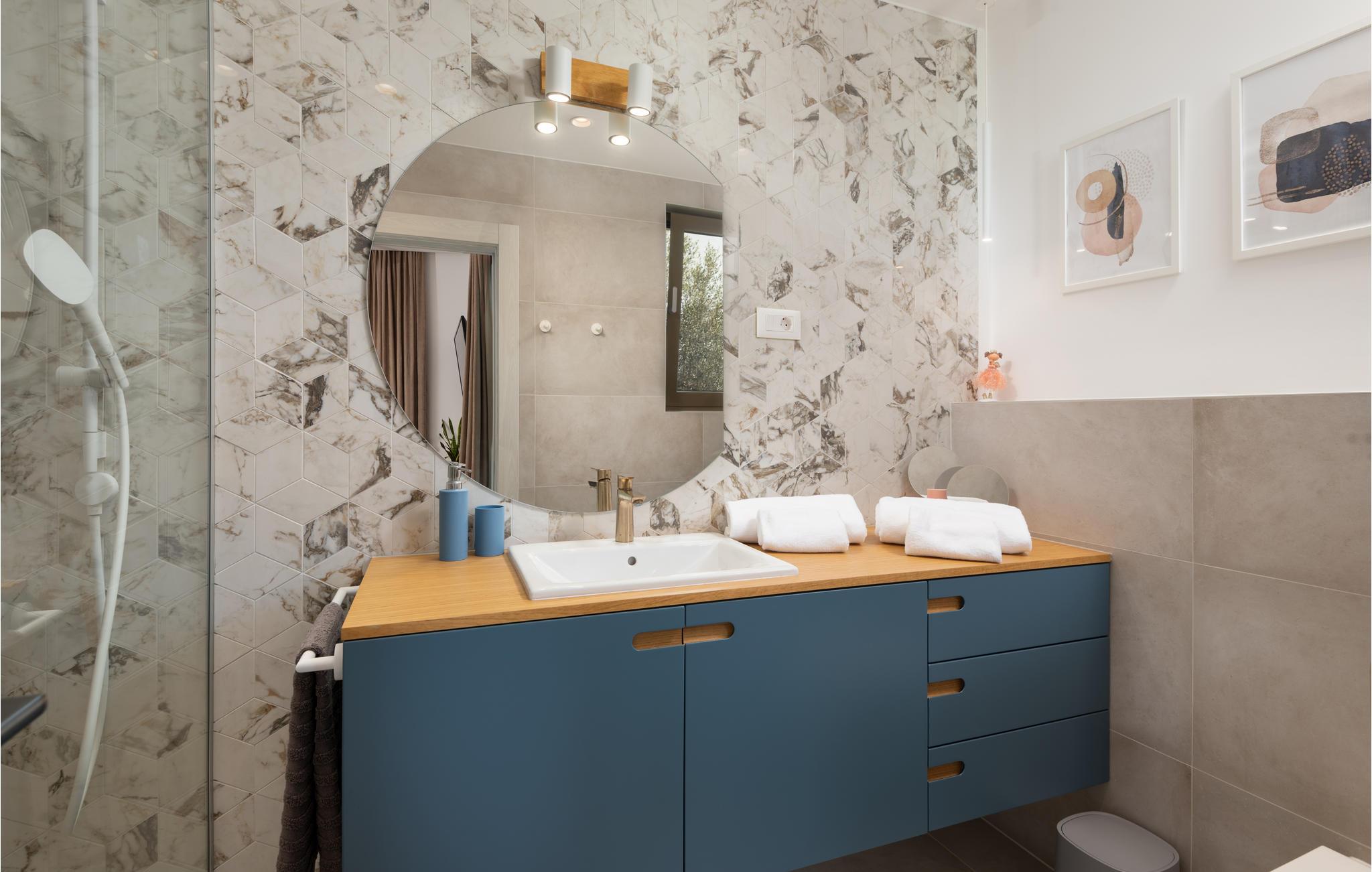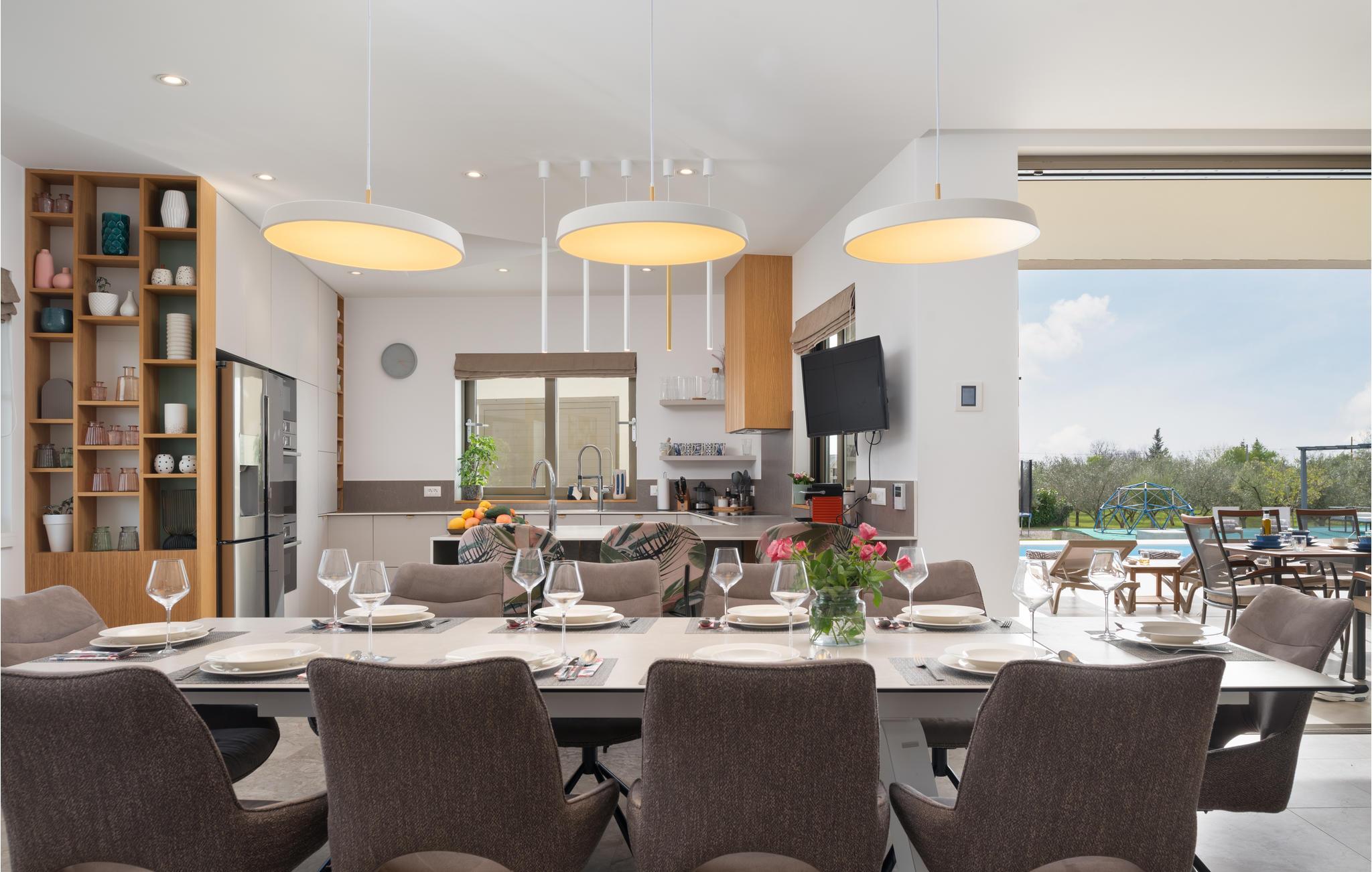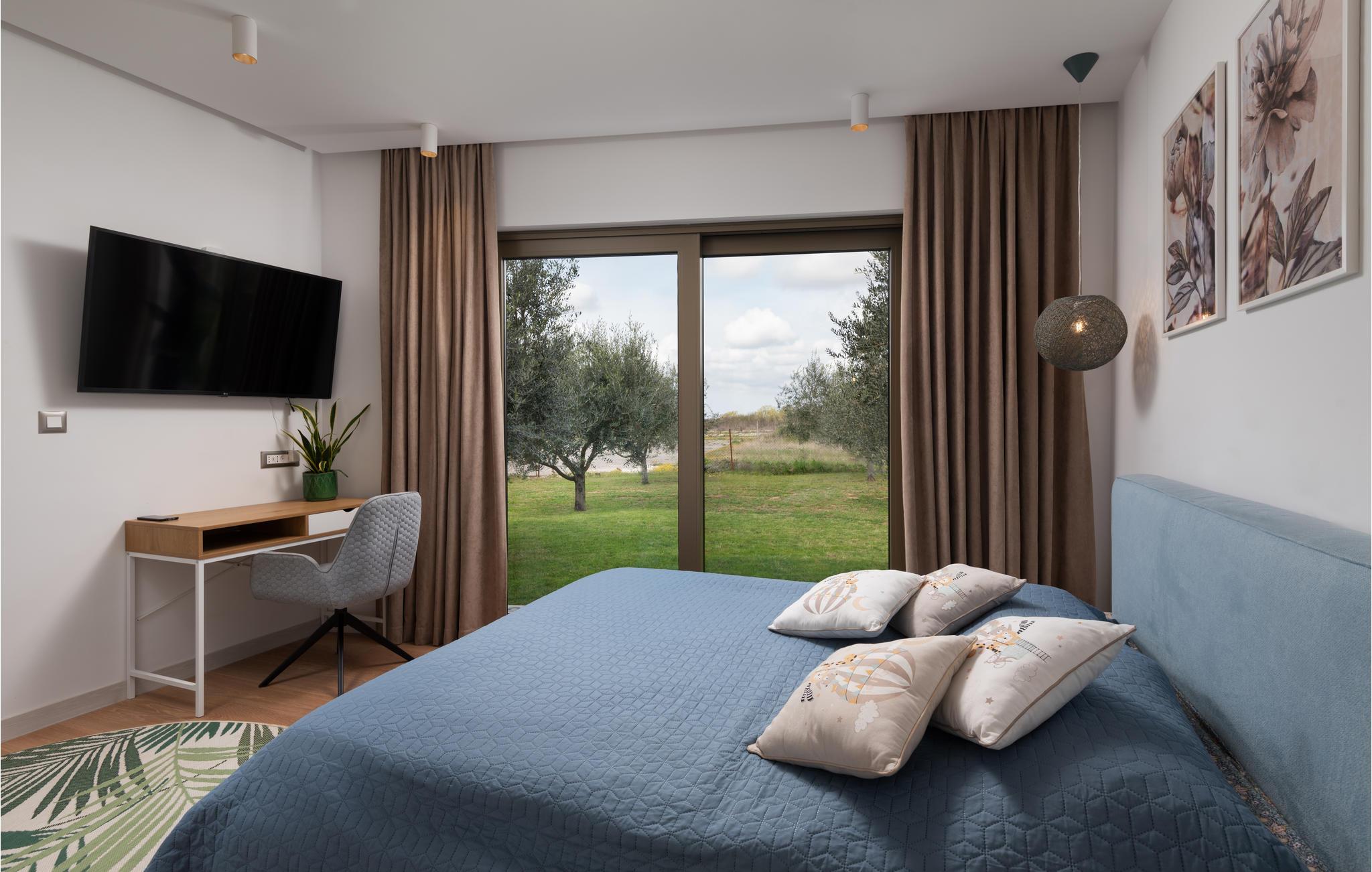 Den moderne Olive Grove Villa lægger op til en behagelig ferie med venner eller familie. Lad jer betage af det smagfuldt og luksuriøst møblerede interiør. Skab kulinariske lækkerier, nyd stilfulde måltider i den elegante opholdsstue, slå jer ned til rette til en filmaften på sofaen eller hav det sjovt med at spille PlayStation.