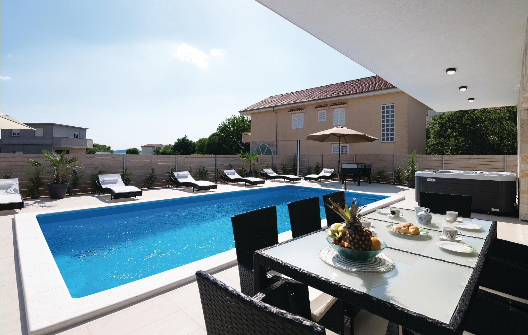 I byen Sukošan, ikke langt fra kiesstranden, ligger dette vidunderlige feriehus. Det rummer fire soveværelser, tre badeværelser, en stue med køkken og en overdækket terrasse, hvor I kan hygge jer sammen med god mad fra grillen. Ved siden af poolen står den udendørs whirlpool til seks personer til ultimativ wellness. I behøver ikke kede jer hvor her er dart, bordfodbold og Playstation 3 til timevis af underholdning. Byen Zadar er rig på kultur og historiske seværdigheder, her er talrige former for sommerunderholdning og restauranter af høj kvalitet, så I kan holde en helt uforglemmelig dejlig ferie.