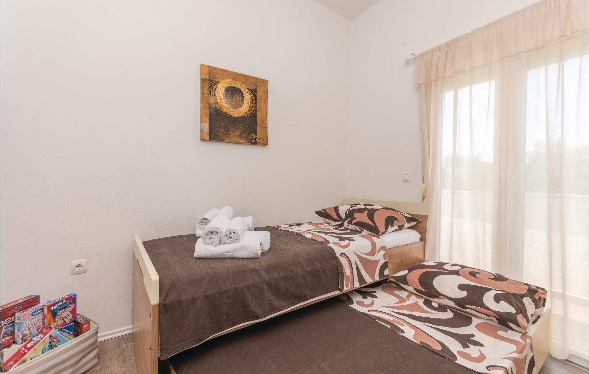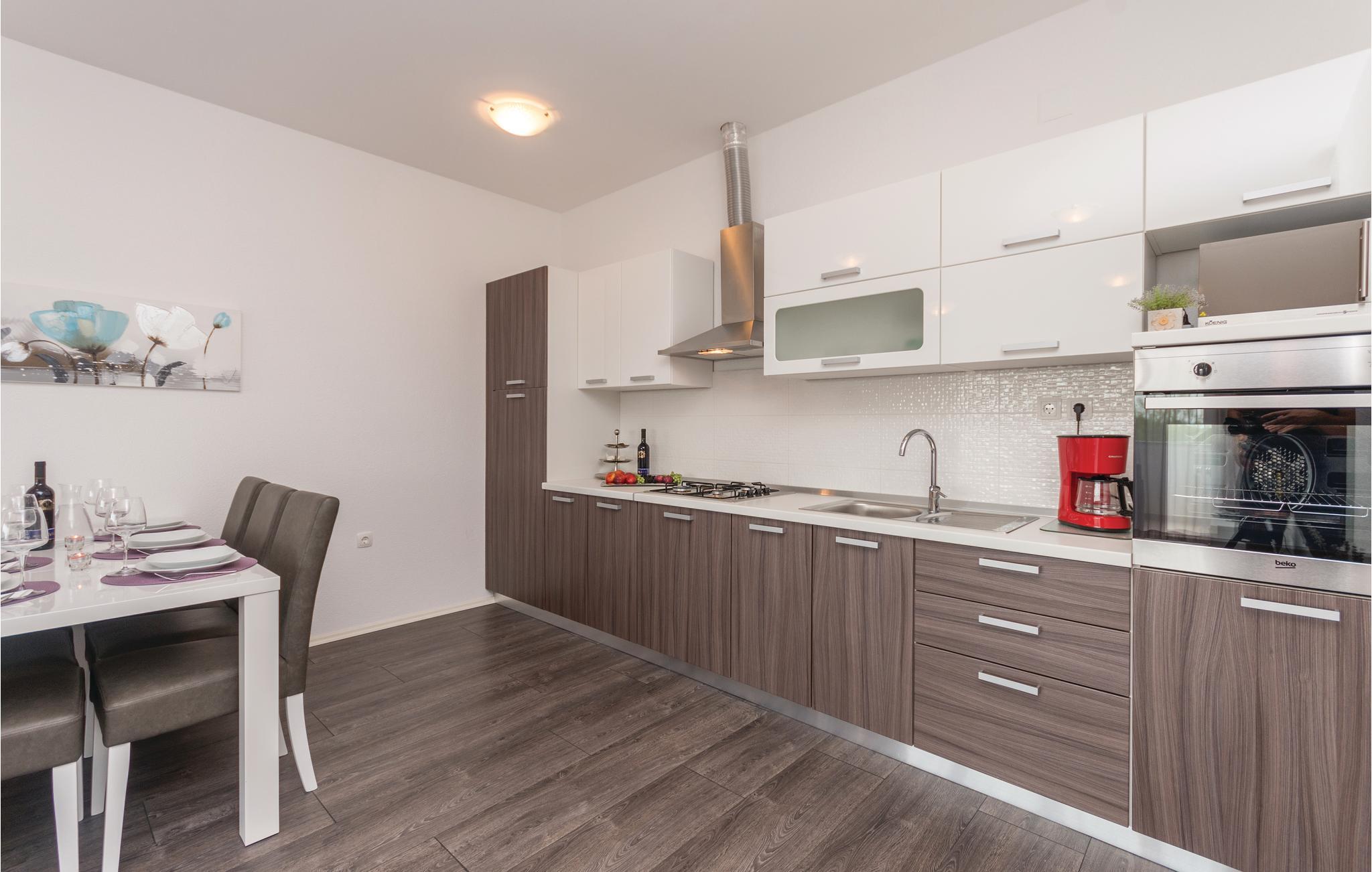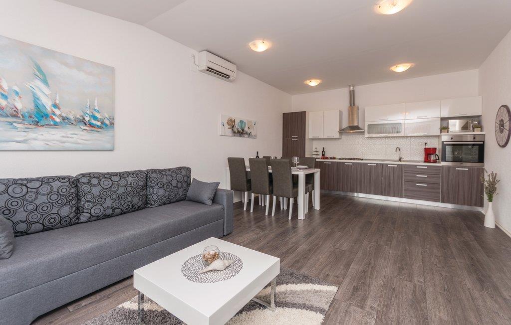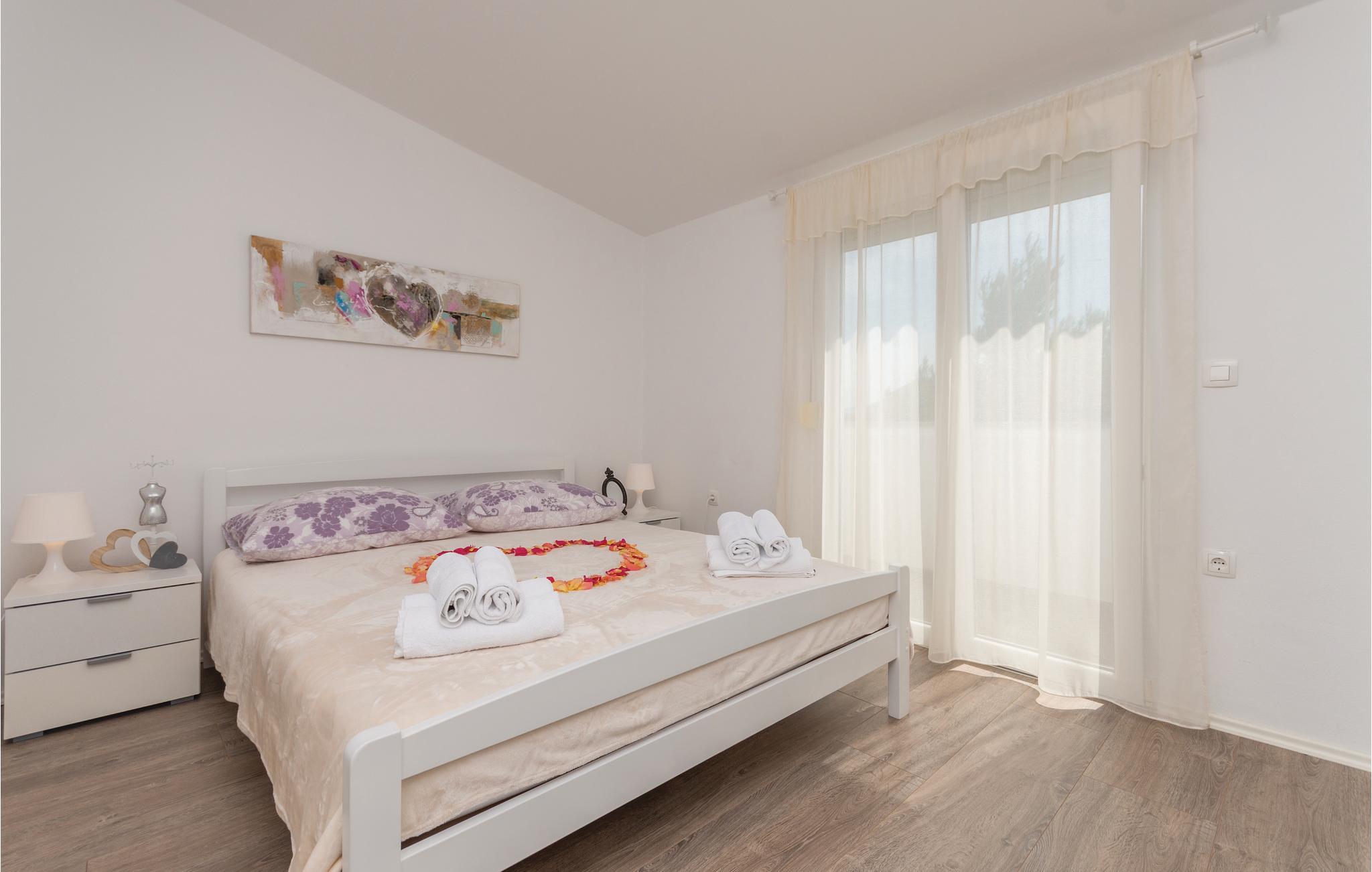 Denne elegante og moderne indrettede ferielejlighed ligger på øverste etage i en ejendom og har både terrasse og balkon. På terrassen står der både havemøbler og en grill. På grunden er der en parkeringsplads reserveret til jer. De nærmeste strande er med kies og den populære bystrand er et betonplateau og havbunden under det lave vand, er rent sand. Marinaen og byens centrum, hvor der er masser af liv om sommeren, vil ikke forstyrre feriens fred. Det tager under 15 minutter at køre til den smukke og interessante by Zadar, med international lufthavn.