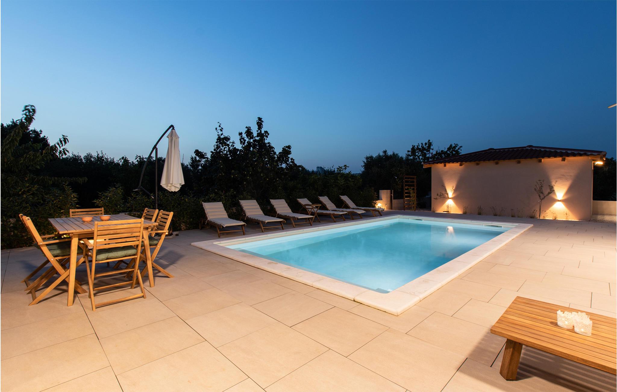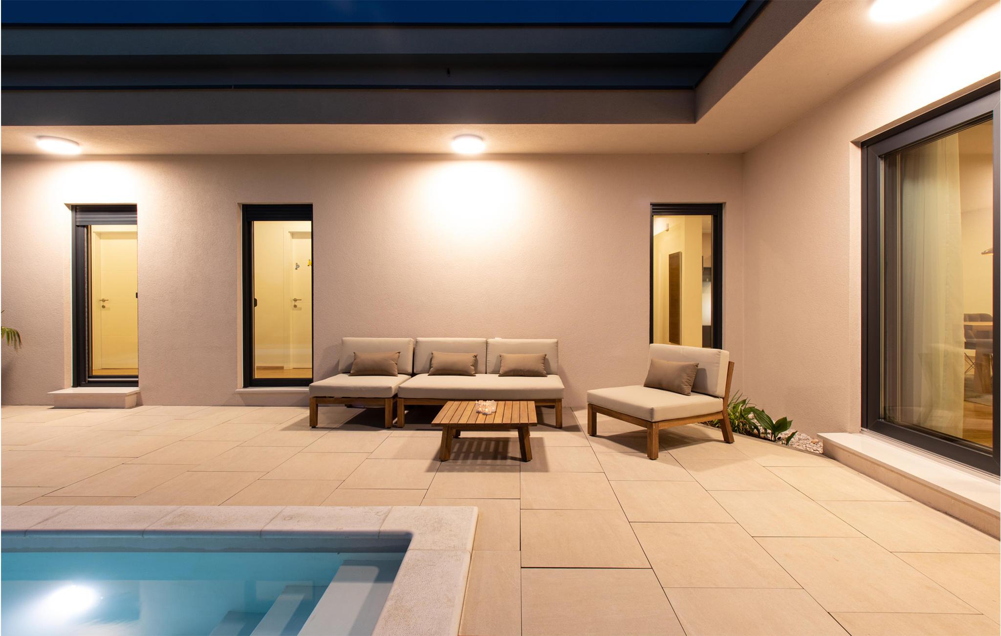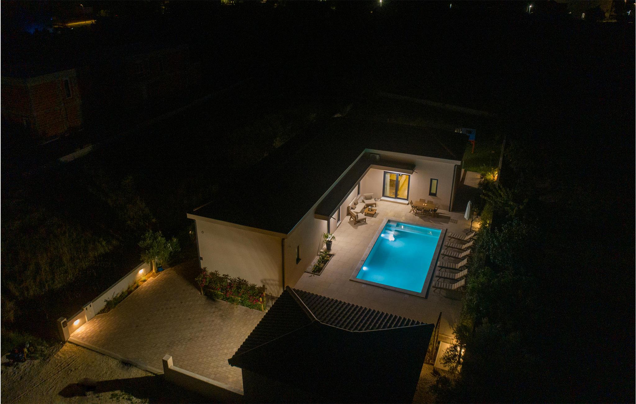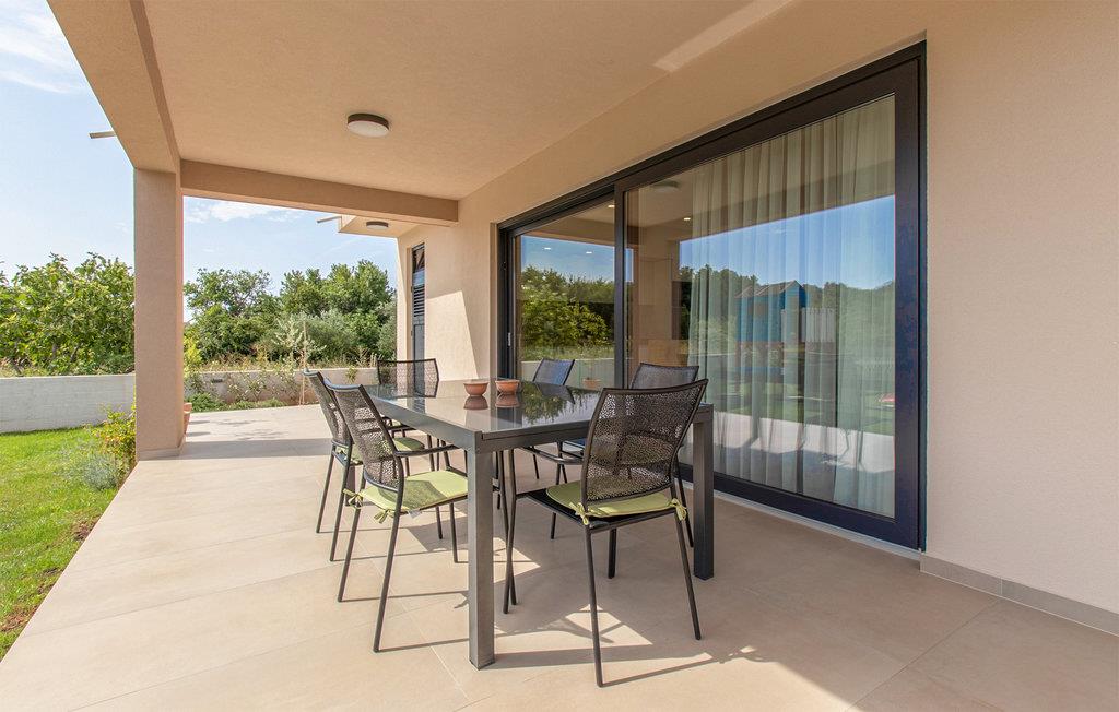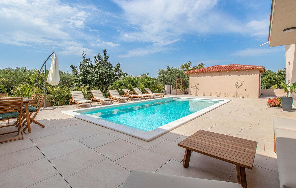 Dette moderne og store feriehus med swimmingpool byder velkommen nær en smuk stenstrand. Dette smukke hus er en sand oase af fred og afslapning. Med et højt niveau af komfort og smagfuld indretning kan du finde dig godt tilpas her og nyde dine feriedage fuldt ud i huset i stueetagen. Hobbykøkkener kan svinge deres kogeskeer i det moderne køkken og se dine børn lege ved spisebordet. I kan også glæde jer til haven med legehus og swimmingpoolen, som indbyder til at bade, plaske rundt og solbade. Nyd et lejrbål om aftenen og kig op på stjernehimlen. Gå til stranden og nyd havet og solen, gåafstand til restauranter og shopping. Besøg den fortryllende by Zadar, hvis historiske gamle bydel udfolder sin særlige charme i aftentimerne, når den smart placerede belysning bader væggene i et blødt lys. Vend hjem udhvilet og med mange gode oplevelser!