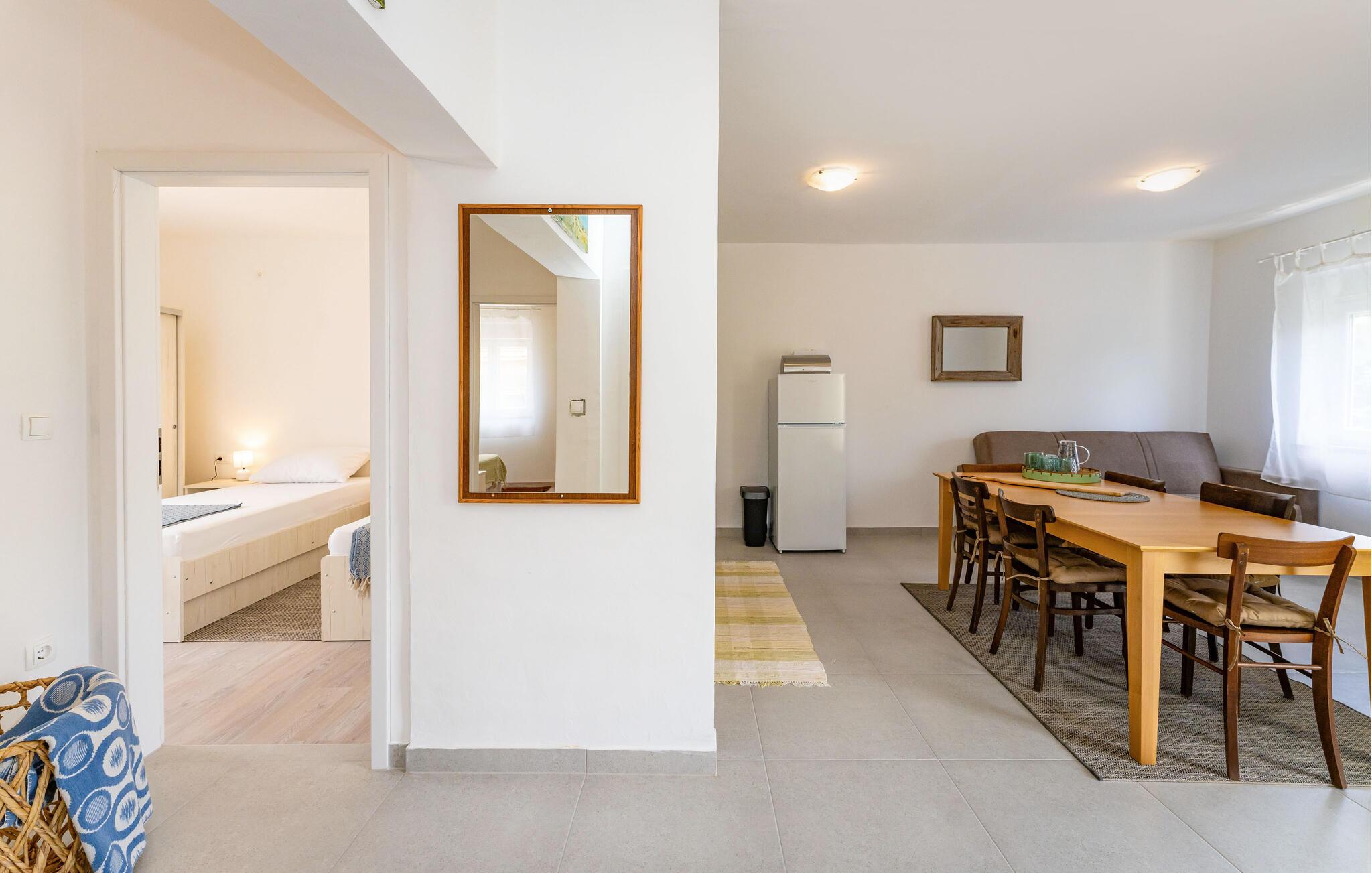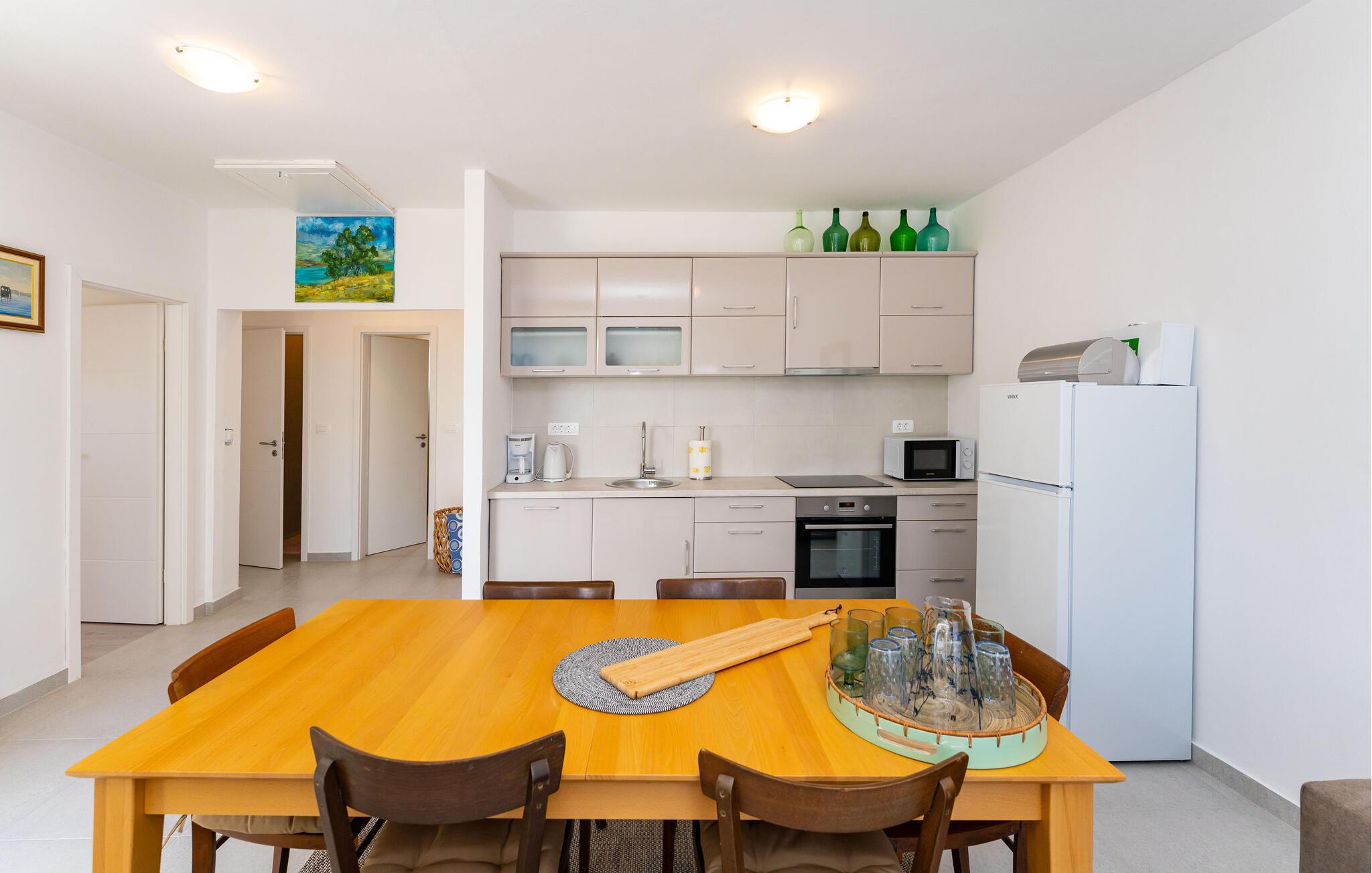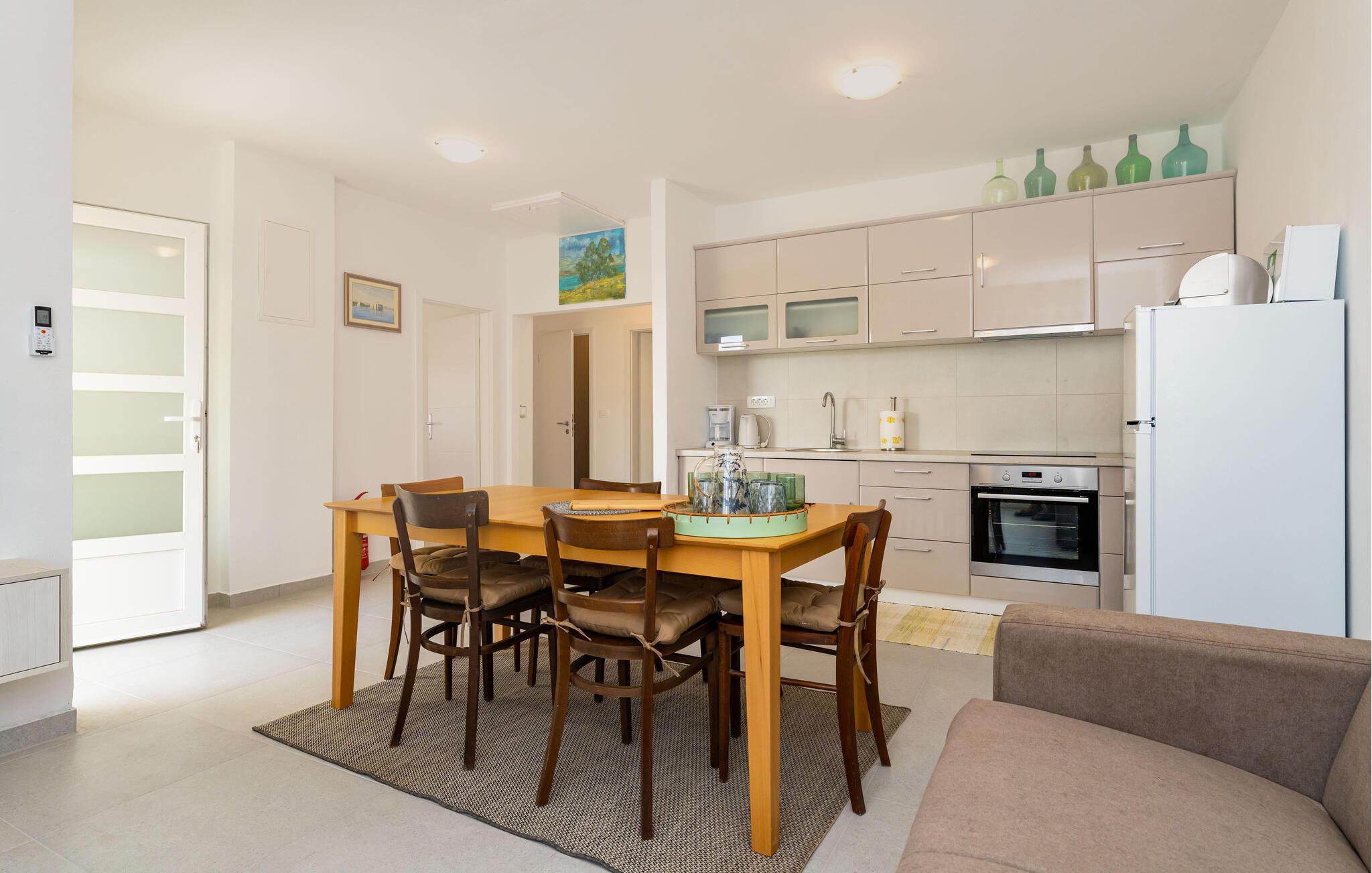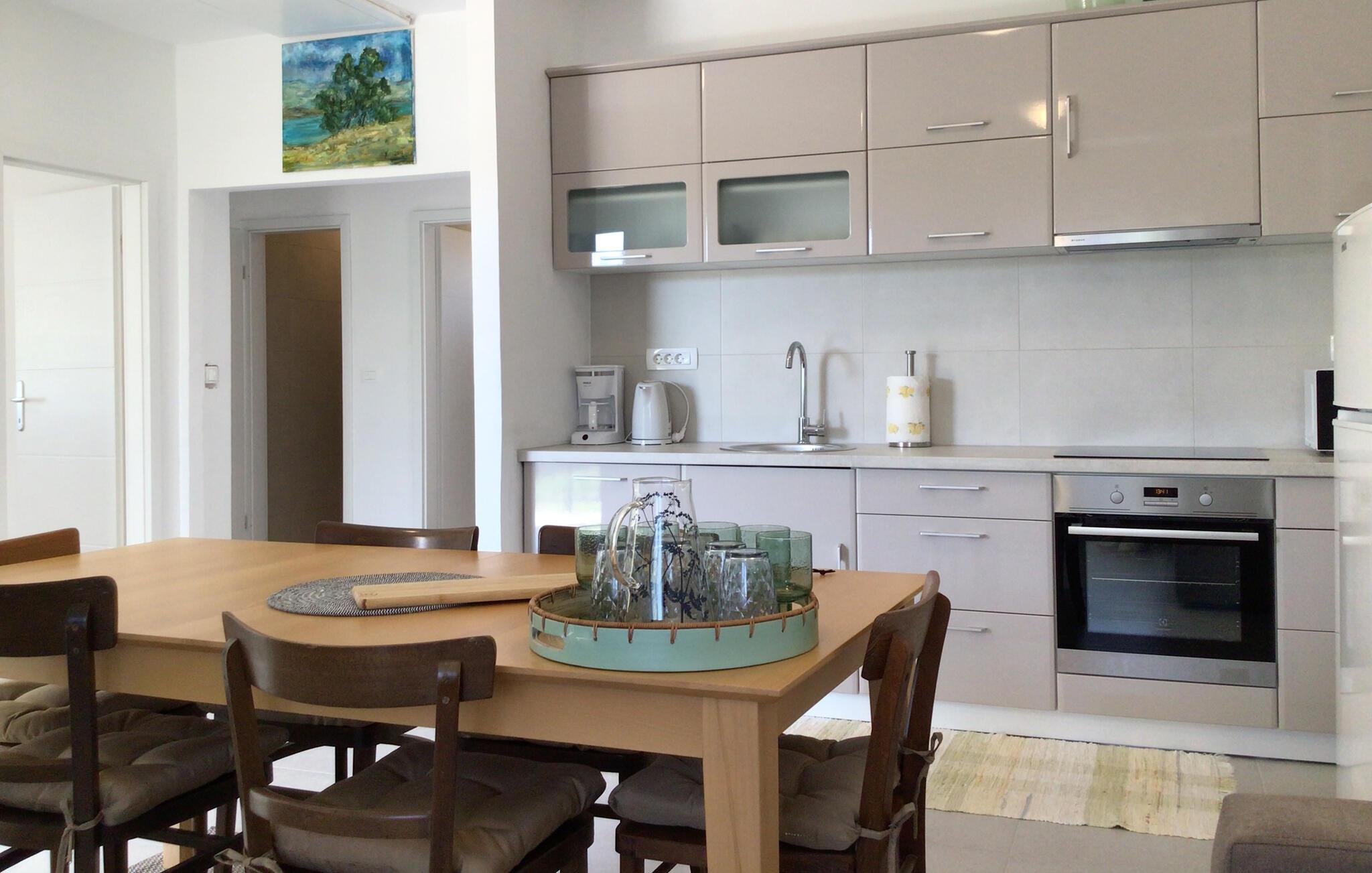 I dette charmerende feriehus i Sukosan kan I holde en uforglemmelig ferie fyldt med komfort og afslapning. Den moderne indretning er præget af attraktive indretningsløsninger og lyse rum, som sikrer jer en behagelig atmosfære. Det skønne køkken-alrum lægger op til hyggelige aftener.