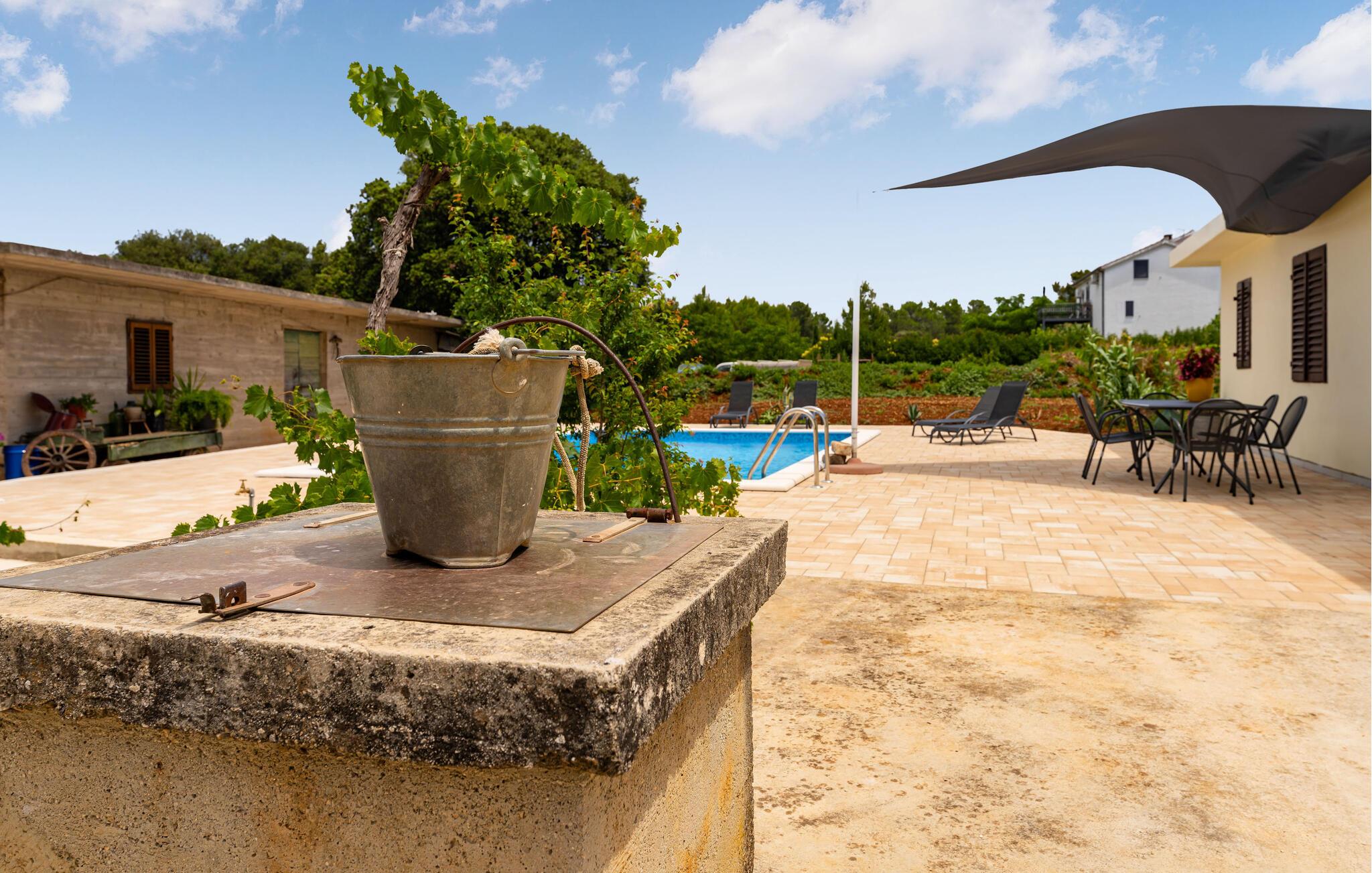 Nyd dejlige timer uden for huset. Solbad på en af terrasserne og svøm så meget, I vil i poolen.