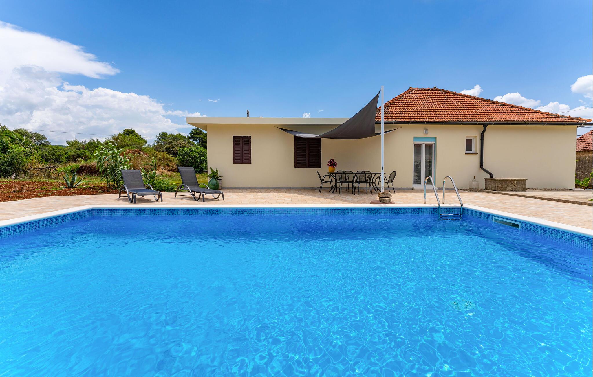 Nyd jeres ferie i dette moderne, lyse hus med pool.