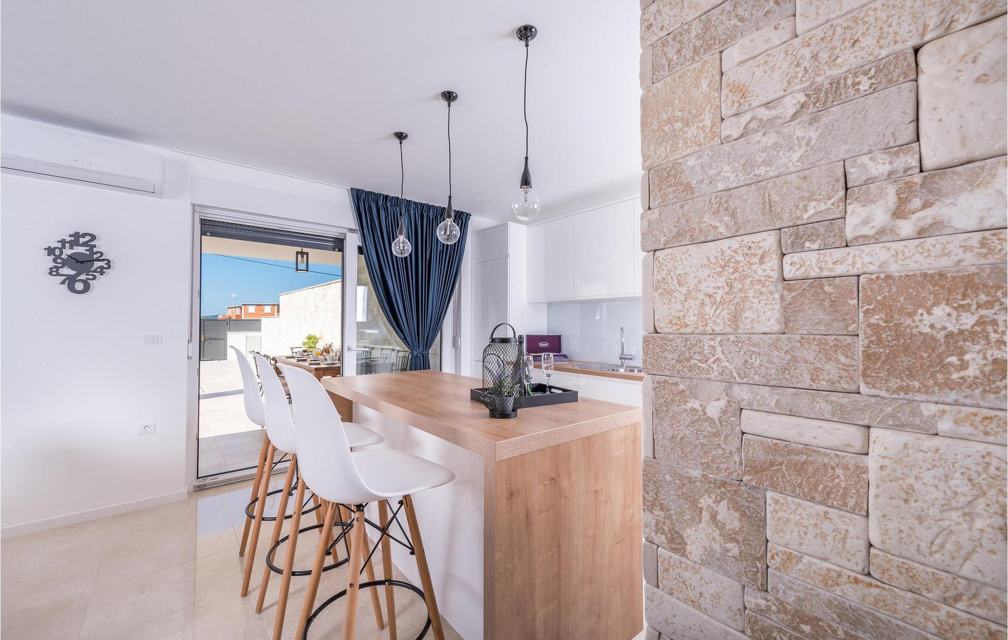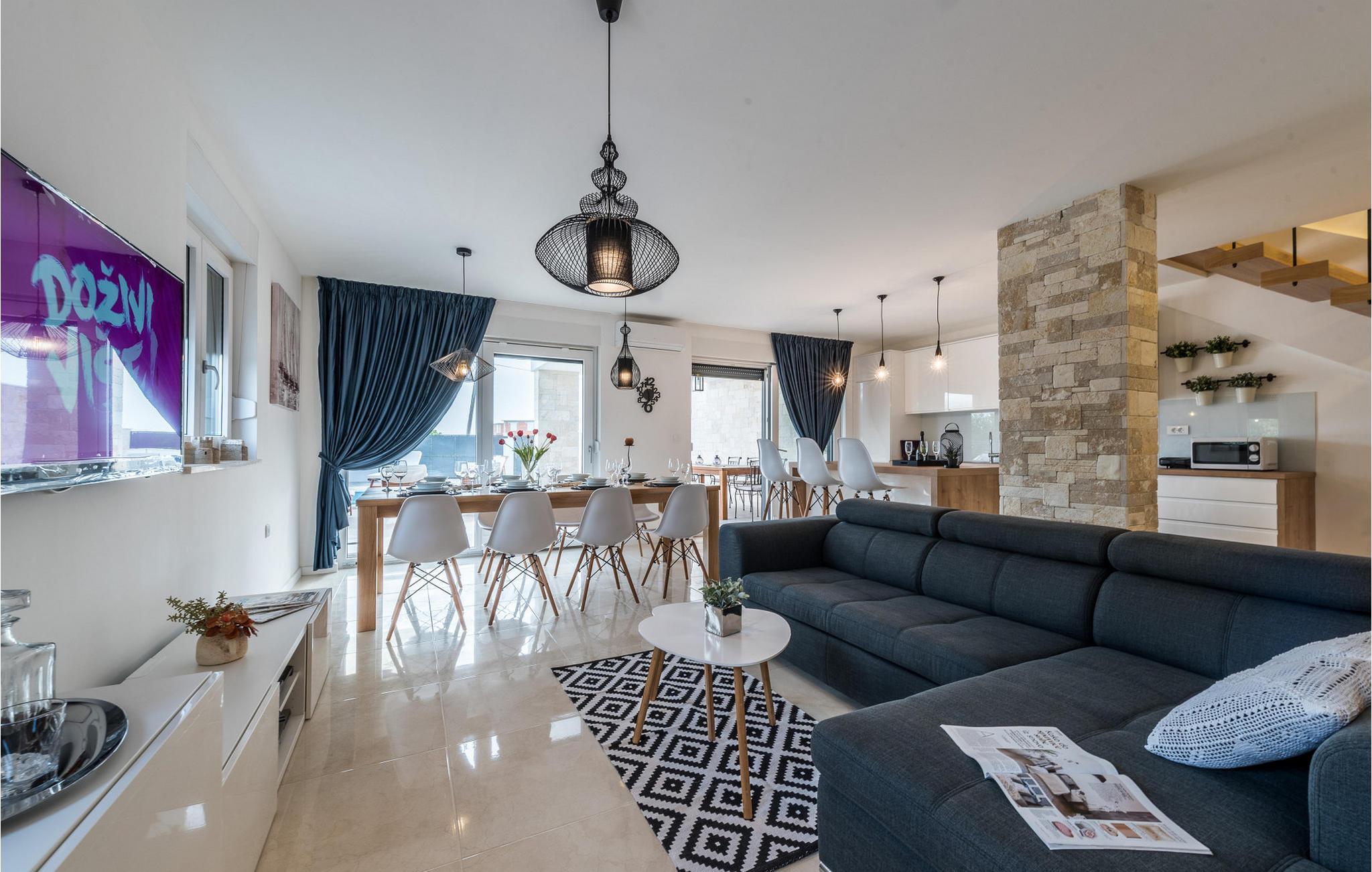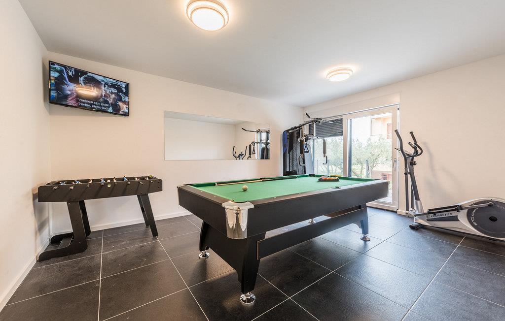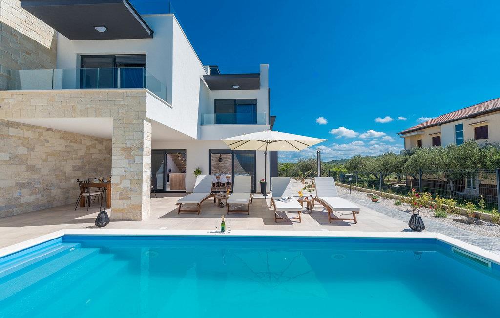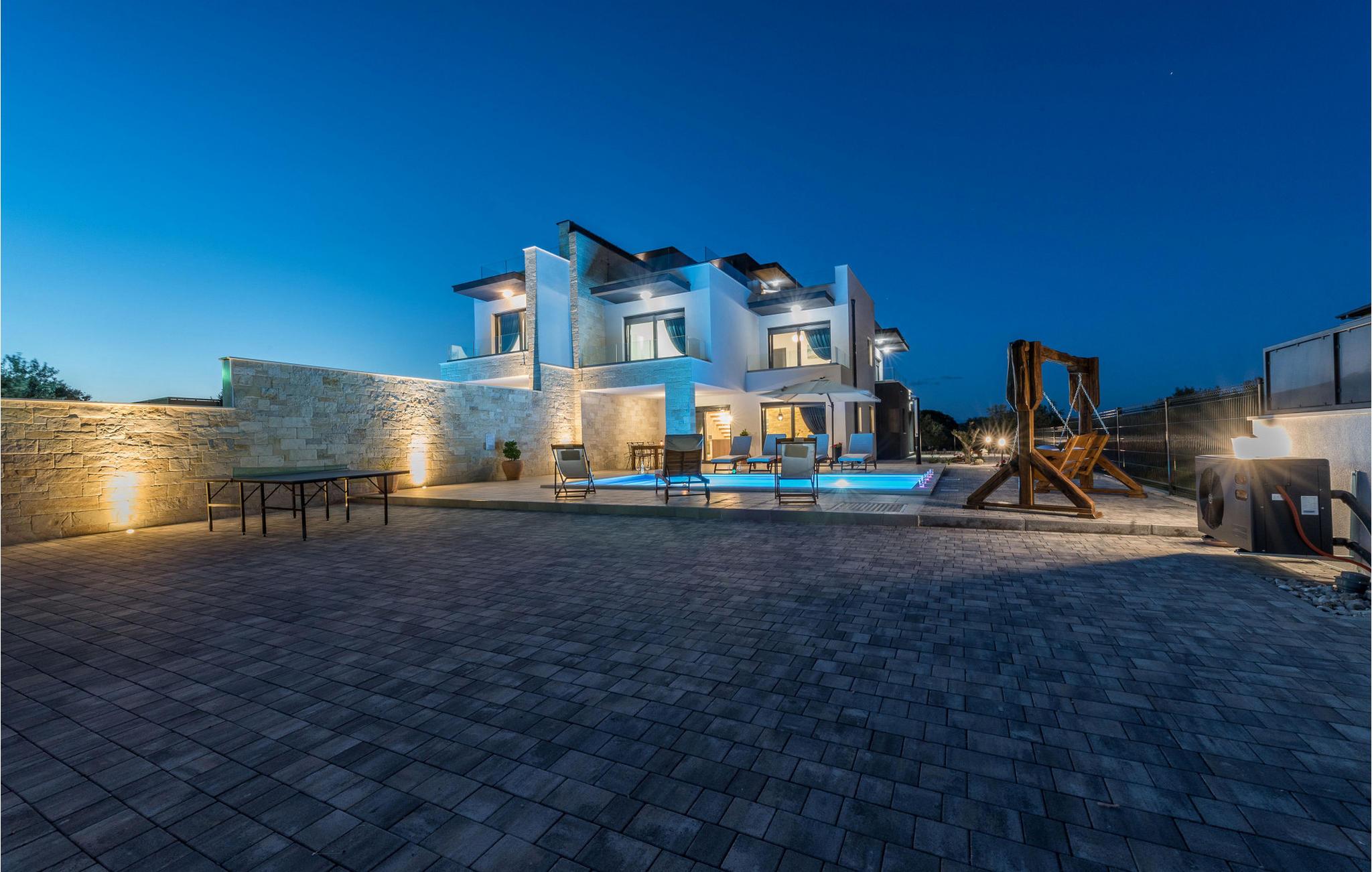 Nyd den uovertrufne havudsigt fra denne luksuriøse villa. Denne eksklusive Villa Oasis, med sin moderne arkitektur og stilfulde indretningsløsninger, tilbyder det perfekte tilflugtssted for en afslappende ferie. De rummelige soveværelser er designet til ultimativ komfort, mens den lyse stue og det fuldt udstyrede køkken med panoramavinduer tilbyder udsigt over Adriaterhavet. Fitnessrummet med billard og bordtennis tilbyder en række aktiviteter, og på tagterrassen kan I nyde solen eller afslutte dagen med et glas vin. Den opvarmede pool og den kærligt anlagte have fuldender den luksuriøse atmosfære. Den nærliggende Villa Anita kan også lejes, afhængigt af tilgængelighed, og tilbyder masser af plads til en fantastisk ferie med jeres udvidede familie eller venner. Villaen ligger kun en kort gåtur fra havet og Soline Strand, ideel til en forfriskende dukkert i Adriaterhavets krystalklare vand. I Sukošan venter fremragende restauranter, charmerende barer og adskillige sportsmuligheder, herunder windsurfing, beachvolleyball og dykning. Den største marina ved Adriaterhavet, Marina Dalmacija, er perfekt til bådture langs kysten. Blot et par kilometer væk lokker Zadar med sin historiske gamle bydel, Havorglet og sine pulserende kulturelle tilbud.