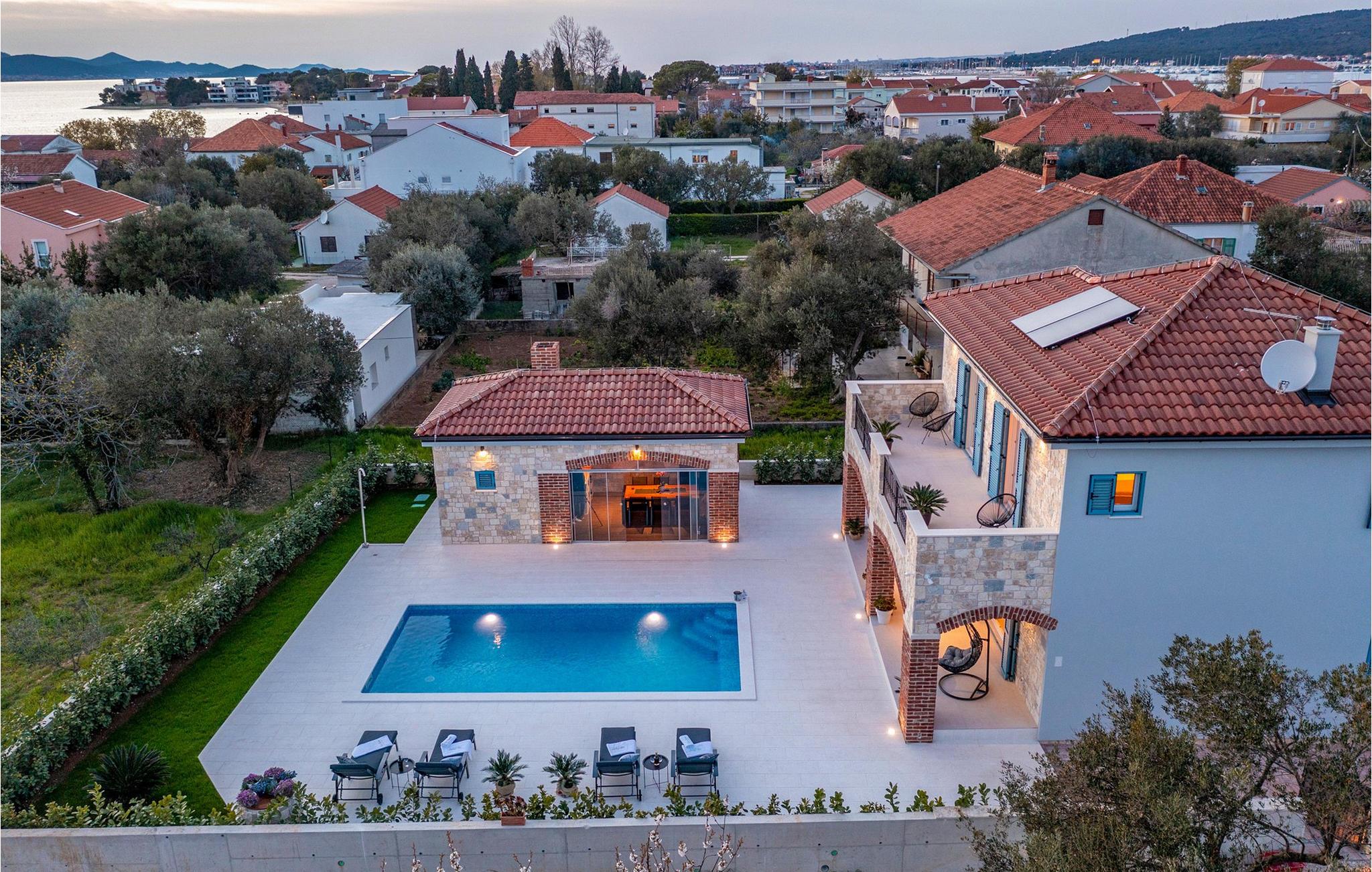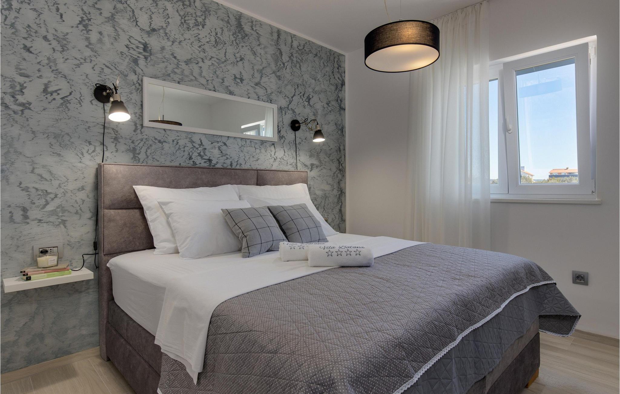 Den rummelige luksusvilla Batana byder jer velkommen til den lille kystby Sukošan og har en rustik middelhavsatmosfære og den ypperste komfort, perfekt til en større familie eller en gruppe venner. Skab kulinariske lækkerier, nyd afslappede måltider med venner og familie, og slap af på den behagelige sofa efter en lang dag. I de køligere måneder bidrager en smuk pejs til den hyggelige atmosfære.