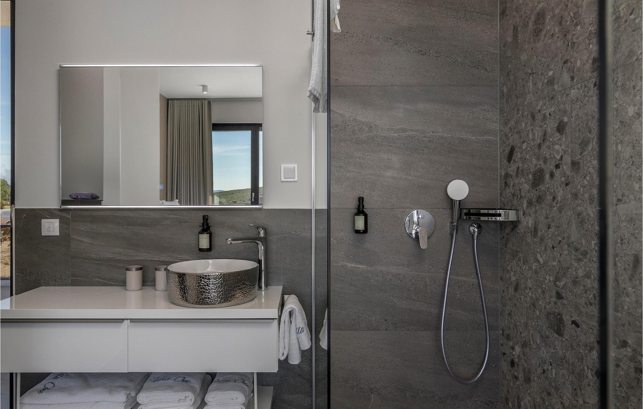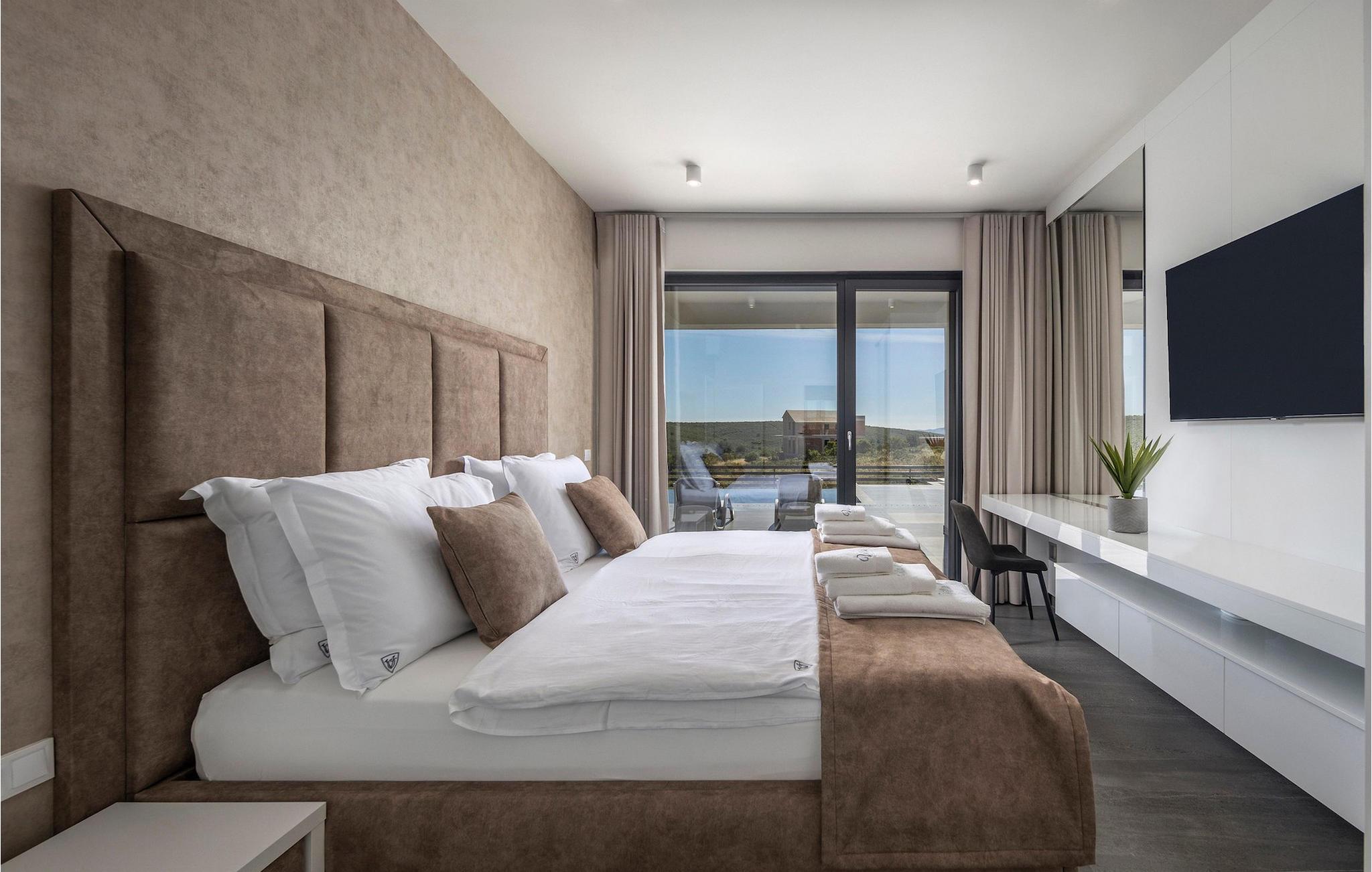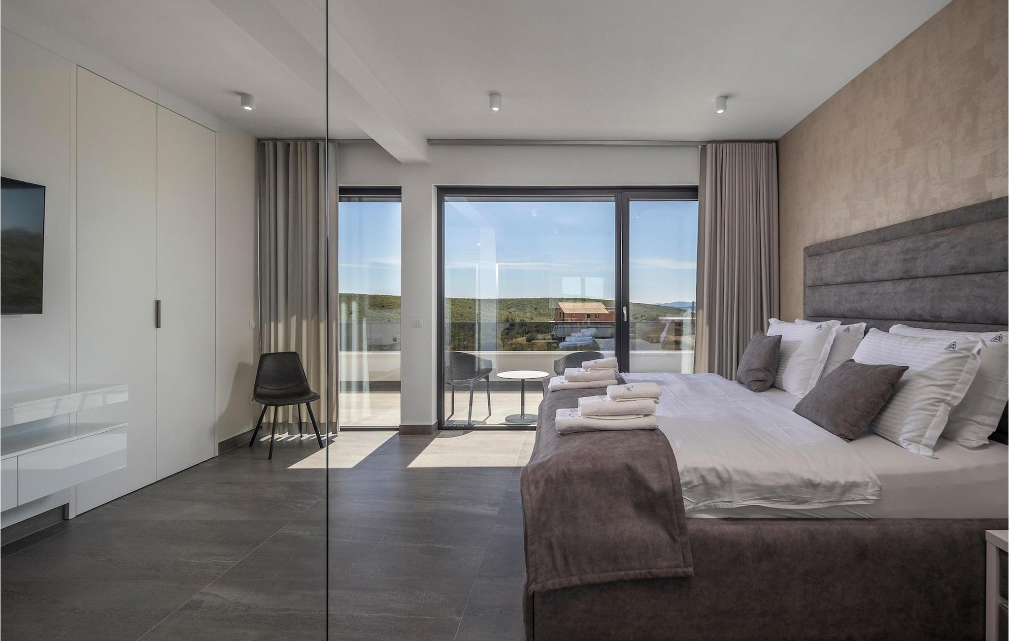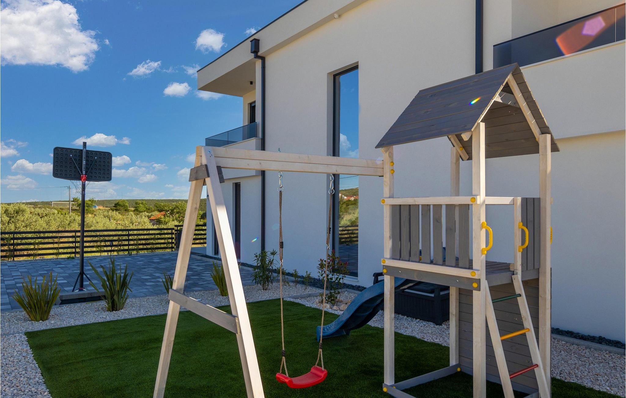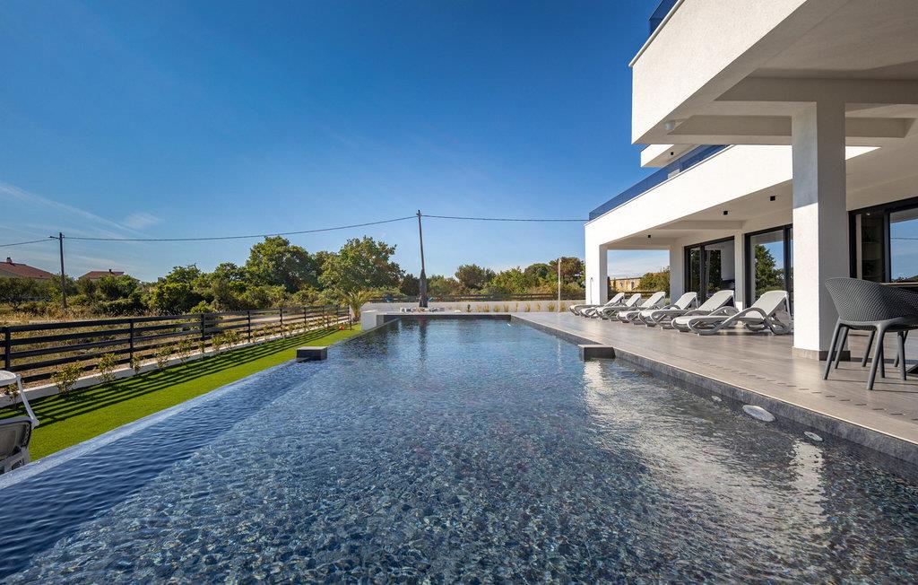 Det elegante udendørsområde er perfekt til at nyde Kroatiens vidunderlige klima på alle tider af dagen. Svøm afslappende baner i den store pool, som er stemningsfuldt oplyst om aftenen og har et integreret lavvandet område. Nyd den fredelige atmosfære med morgenmad på terrassen og slap af på liggestolene, mens de små nyder det engagerende legeområde. Nyd en drink på den rummelige tagterrasse ved solnedgang med panoramaudsigt, der strækker sig helt til havet, og tilbered lækre tilbehør til grillmaden i sommerkøkkenet.