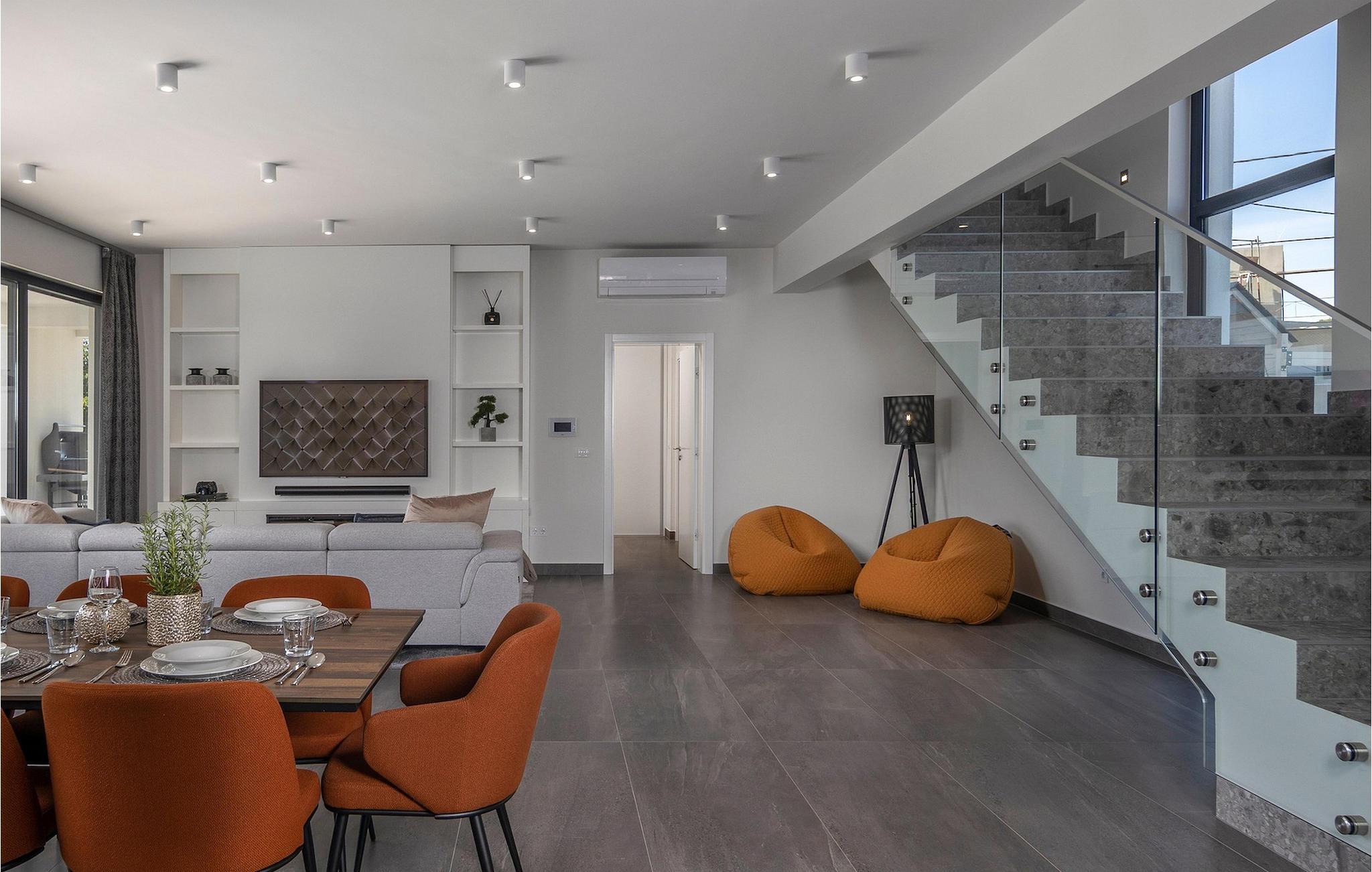 Den rummelige Villa One Zadar forkæler gæster i alle aldre med dejlige ekstrafunktioner og har et lyst og stilfuldt møbleret interiør. Den åbne planløsning gør en ferie med den udvidede familie eller en gruppe venner til en virkelig afslappende oplevelse. Skab kulinariske mesterværker i det fuldt udstyrede køkken, nyd harmoniske måltider ved det indbydende spisebord, og hav det sjovt med at spille PlayStation eller bordfodbold eller lyt til musik, mens I minder om gamle dage på den komfortable sofa.