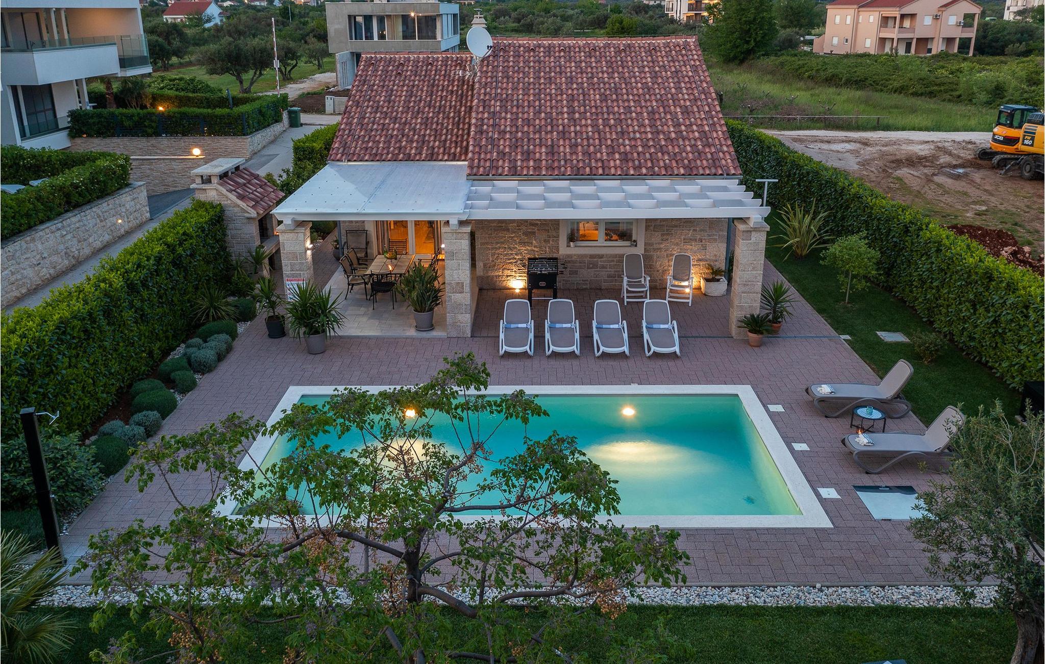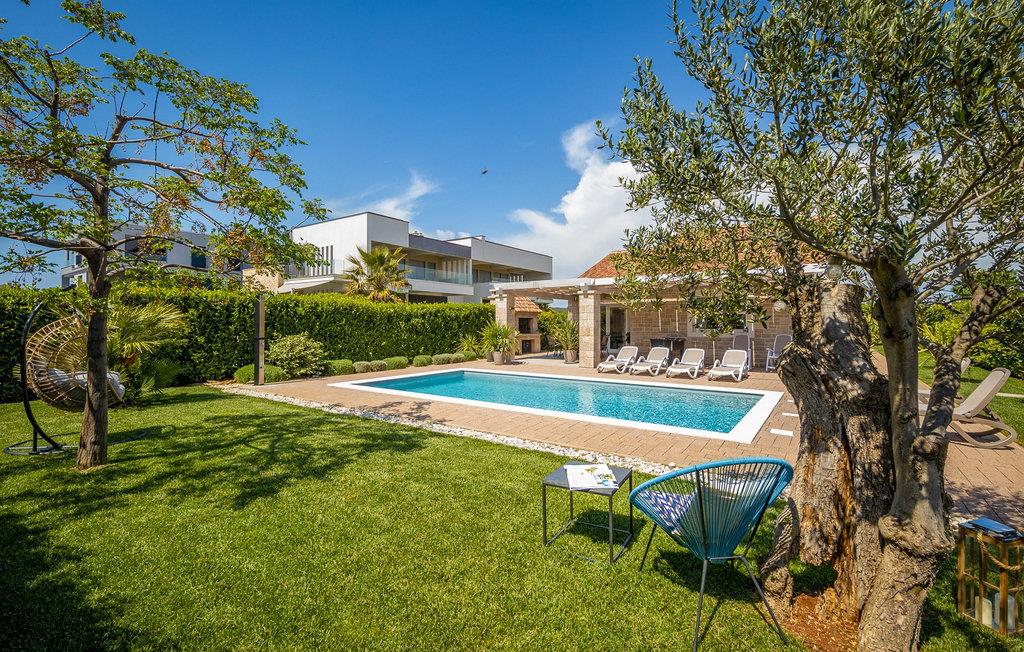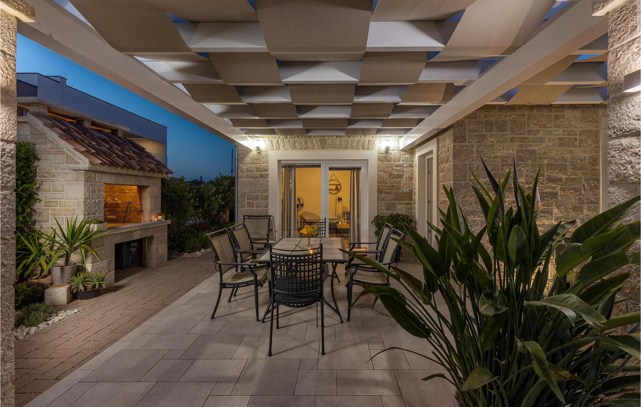 På den rummelige terrasse, omgivet af en frodig græsplæne, finder I en stor, opvarmet pool, hvor I fuldt ud kan nyde Dalmatiens lange solskinstimer. Tænd op i grillen og snak over vin og stearinlys på den indbydende terrasse, mens de lune sommeraftener skrider frem.