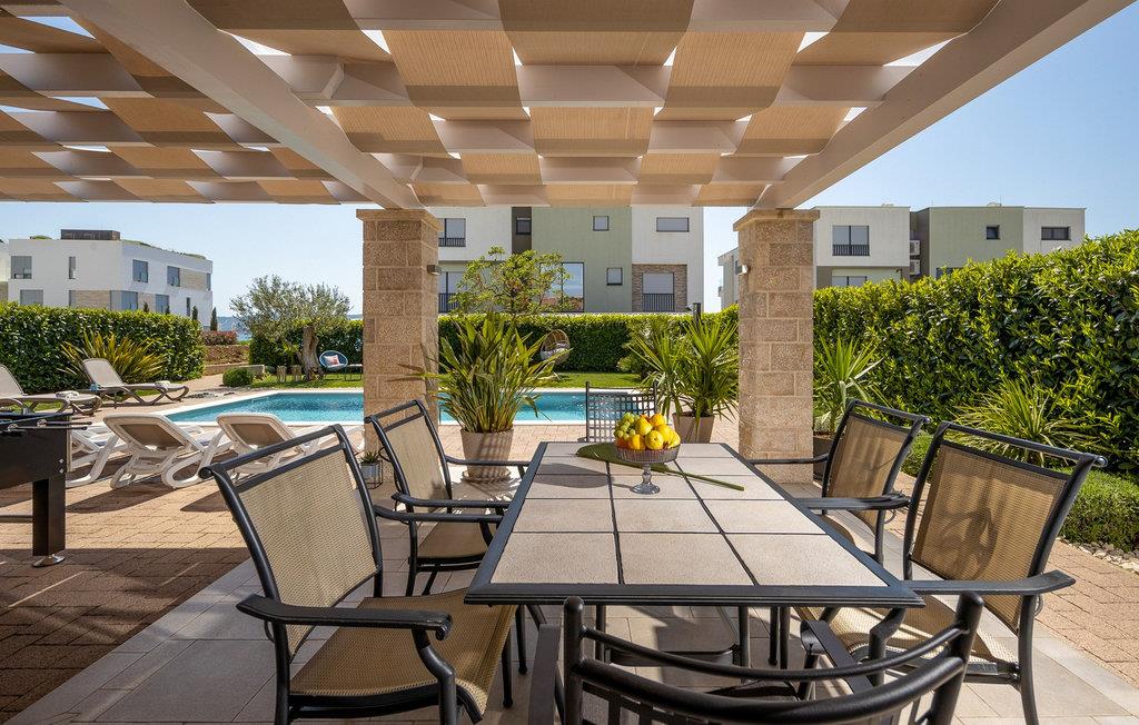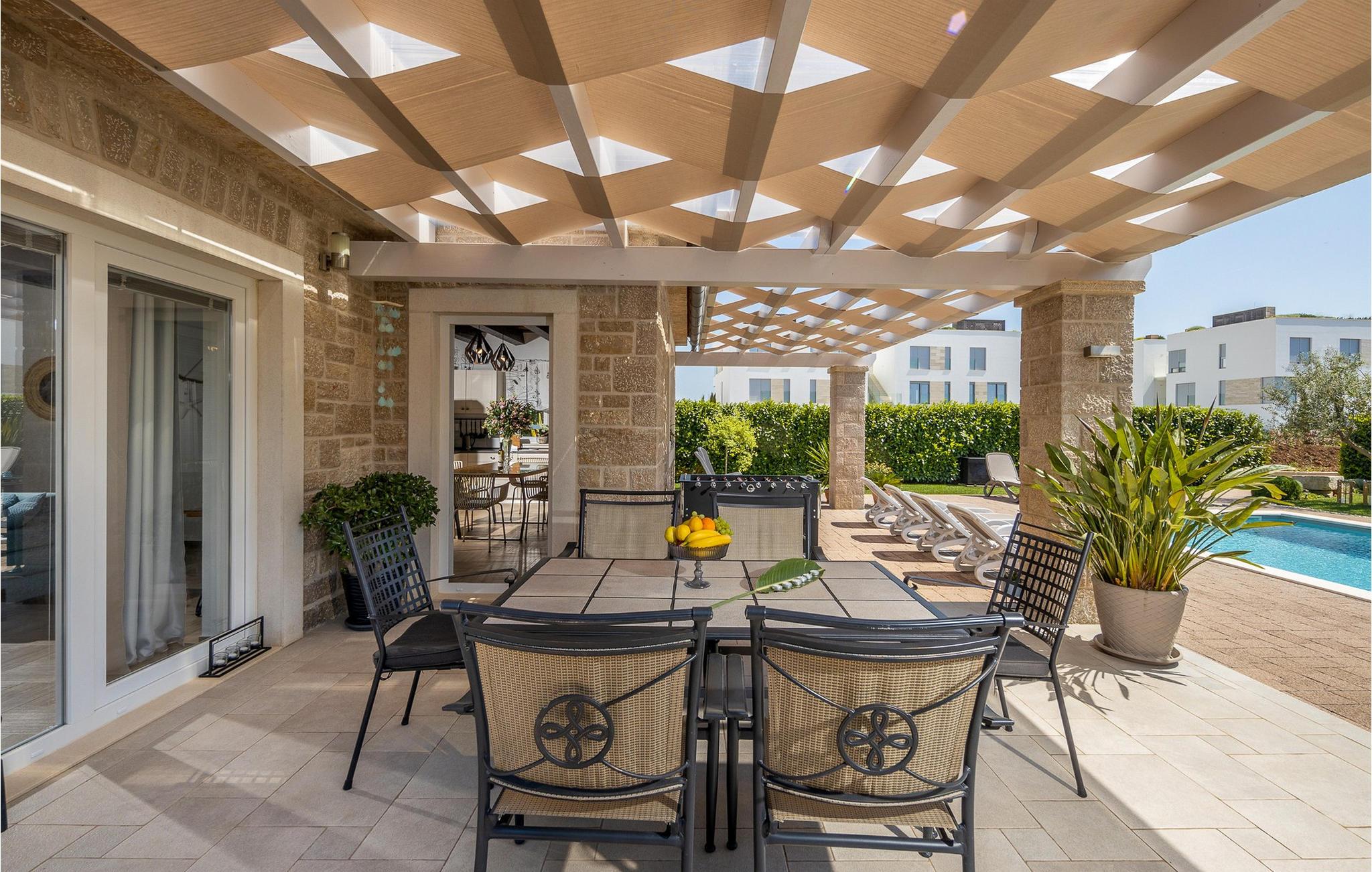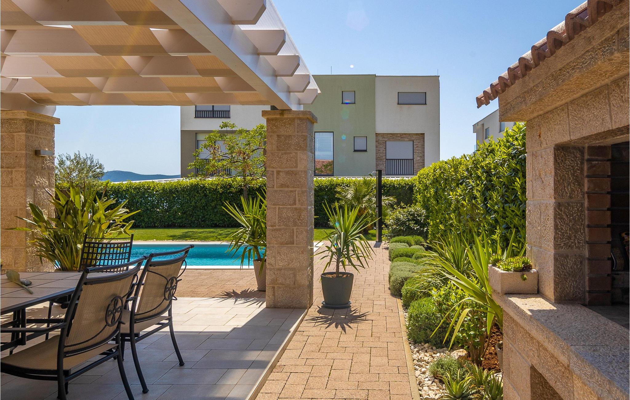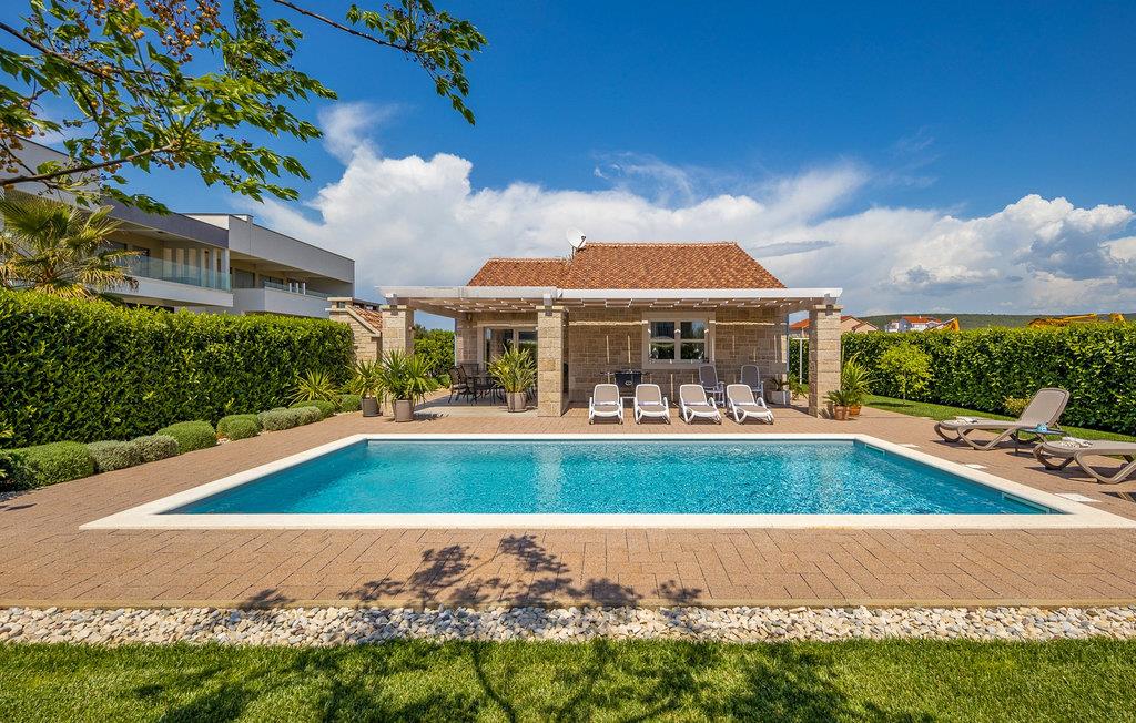 På den rummelige terrasse, omgivet af en frodig græsplæne, finder I en stor, opvarmet pool, hvor I fuldt ud kan nyde Dalmatiens lange solskinstimer. Tænd op i grillen og snak over vin og stearinlys på den indbydende terrasse, mens de lune sommeraftener skrider frem.