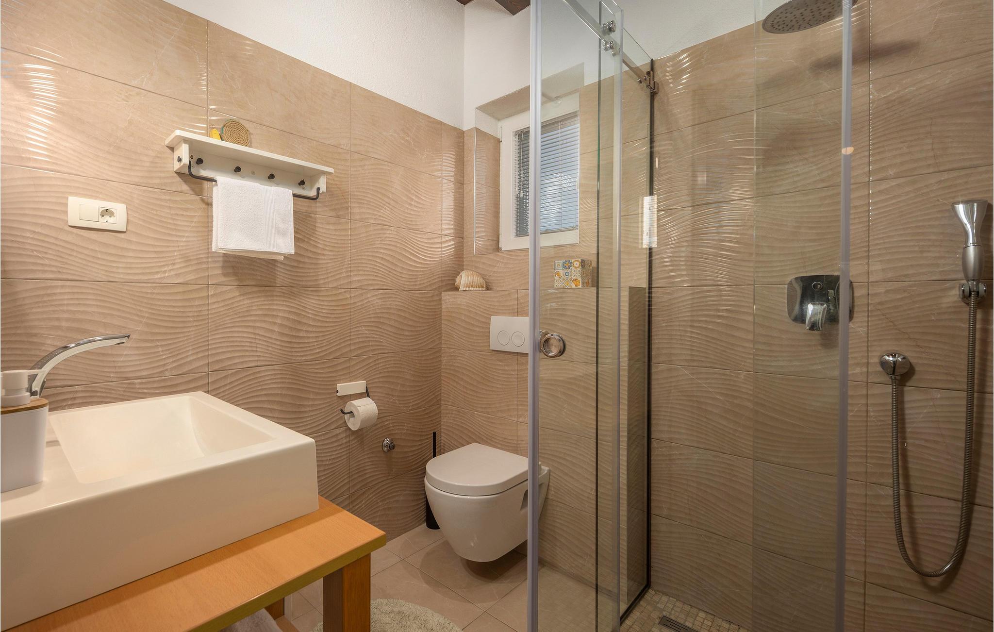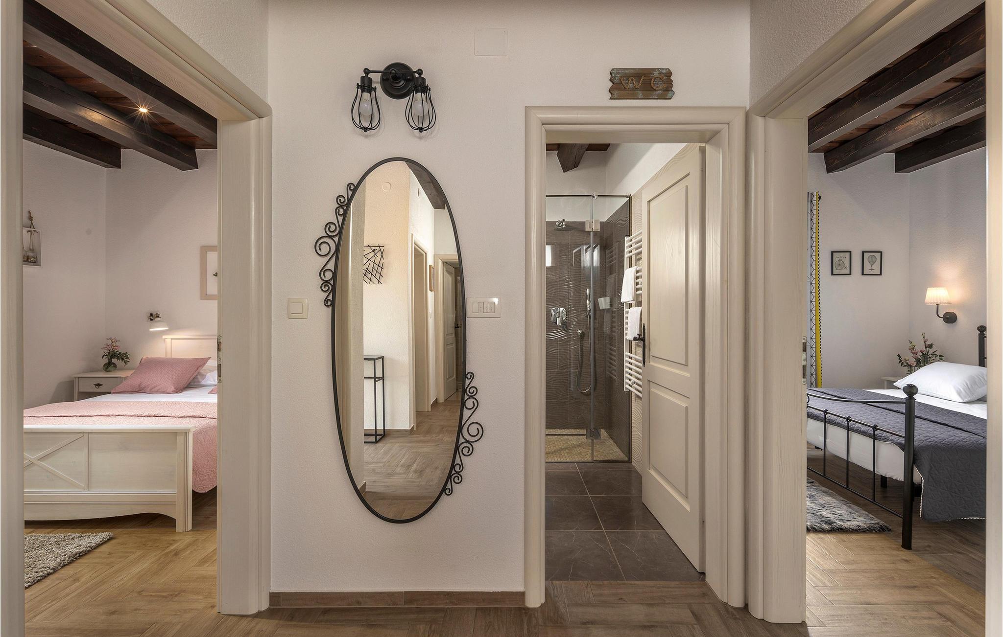 Bare få skridt fra kysten byder den smukke Villa Stina jer velkommen til den lille dalmatiske by Sukošan, der lover uforglemmelige dage med familien. Nyd en dejlig blanding af rustik charme og smagfulde møbler af høj kvalitet. Lad jer fortrylle af havet og de omkringliggende øer, mens I skaber kulinariske lækkerier, planlæg jeres udflugter over harmoniske måltider, og slap af i den hyggelige stue efter en lang dag.